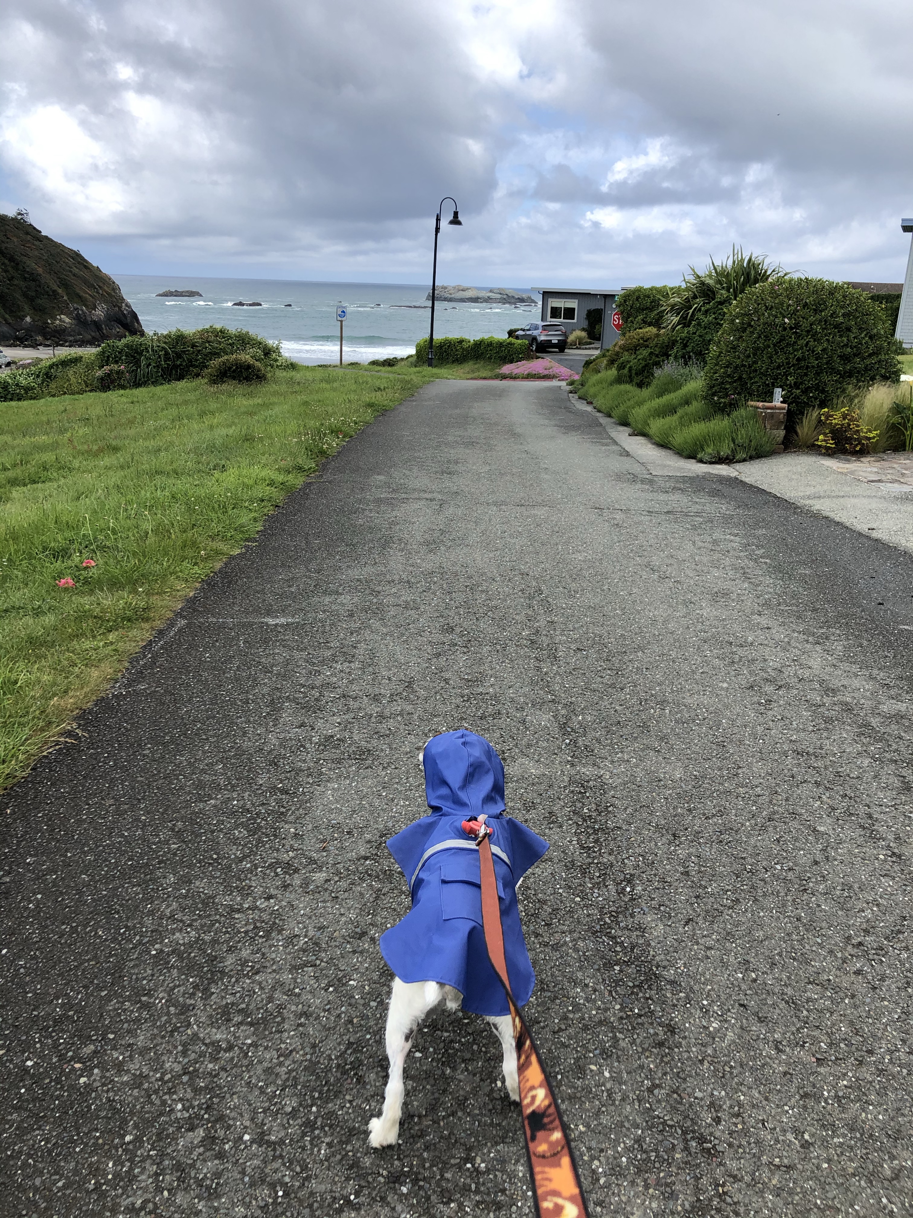 Baxter was game and anxiously watching my every move the last 3.5 days in anticipation that we would take a walk. It’s disheartening to see that tail drop once he realizes we aren’t going. But today we got a break in the rain. We put on our rain gear, just in case, and headed out the door. The lighting today was fantastic! I love days where the clouds and sun compete yielding a greenish color to the ocean. It’s beautiful and makes for great photo ops.