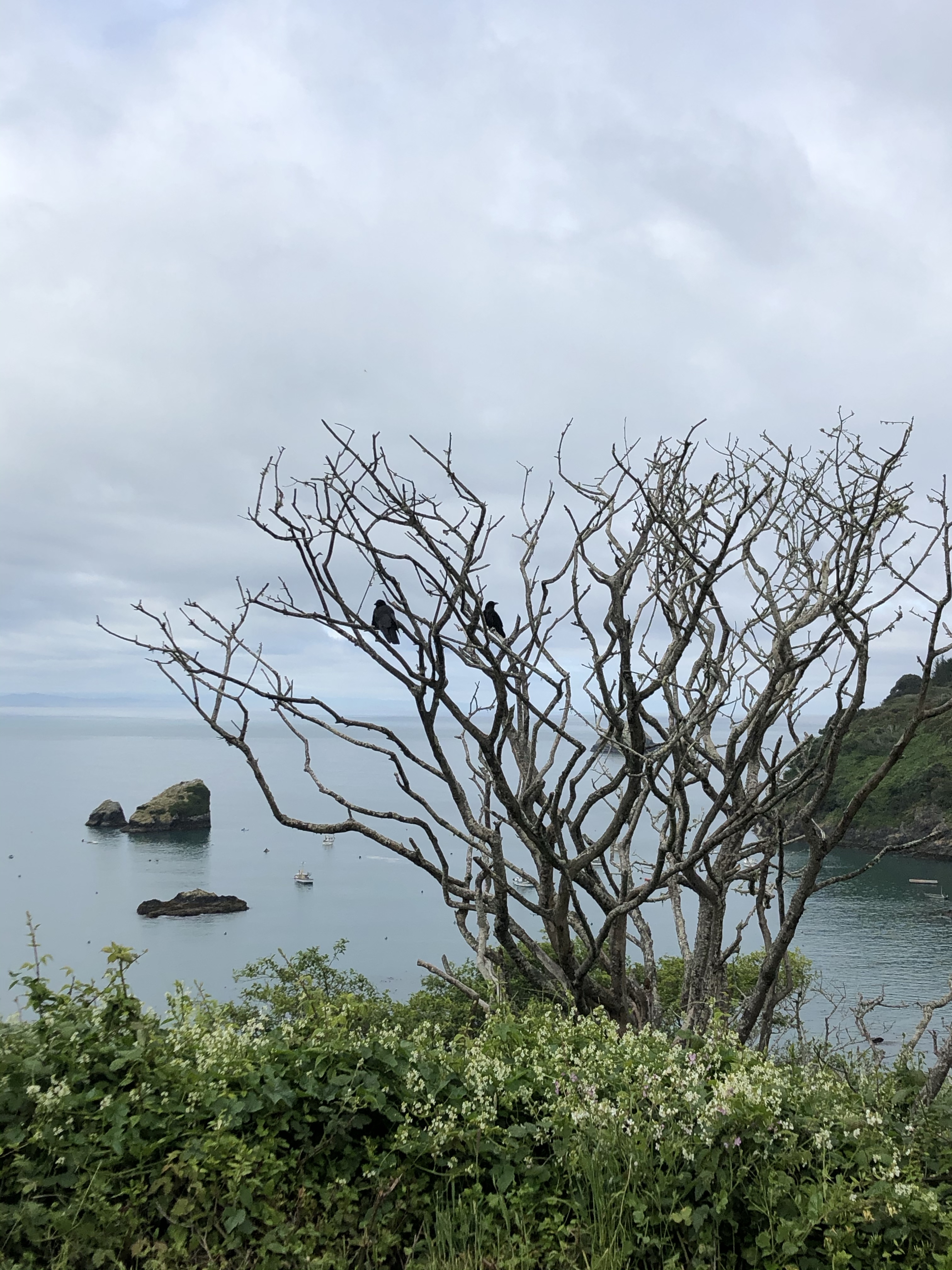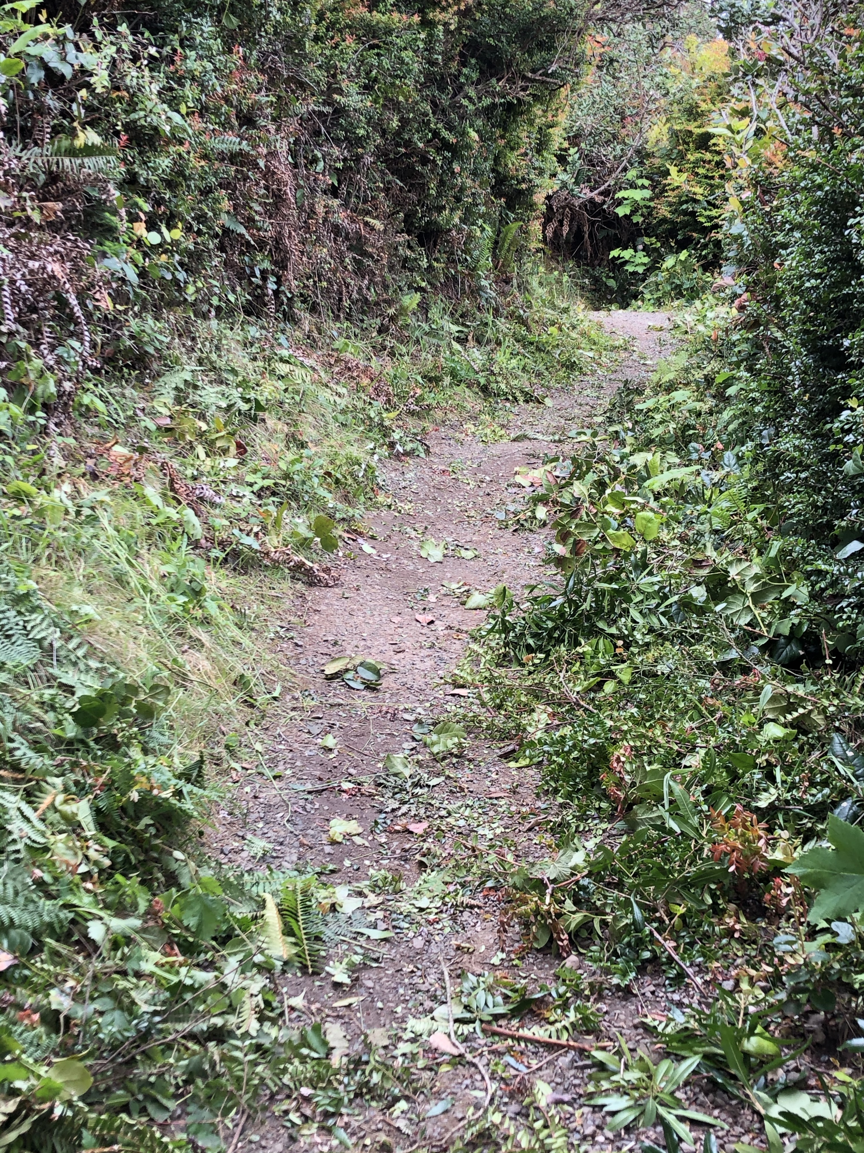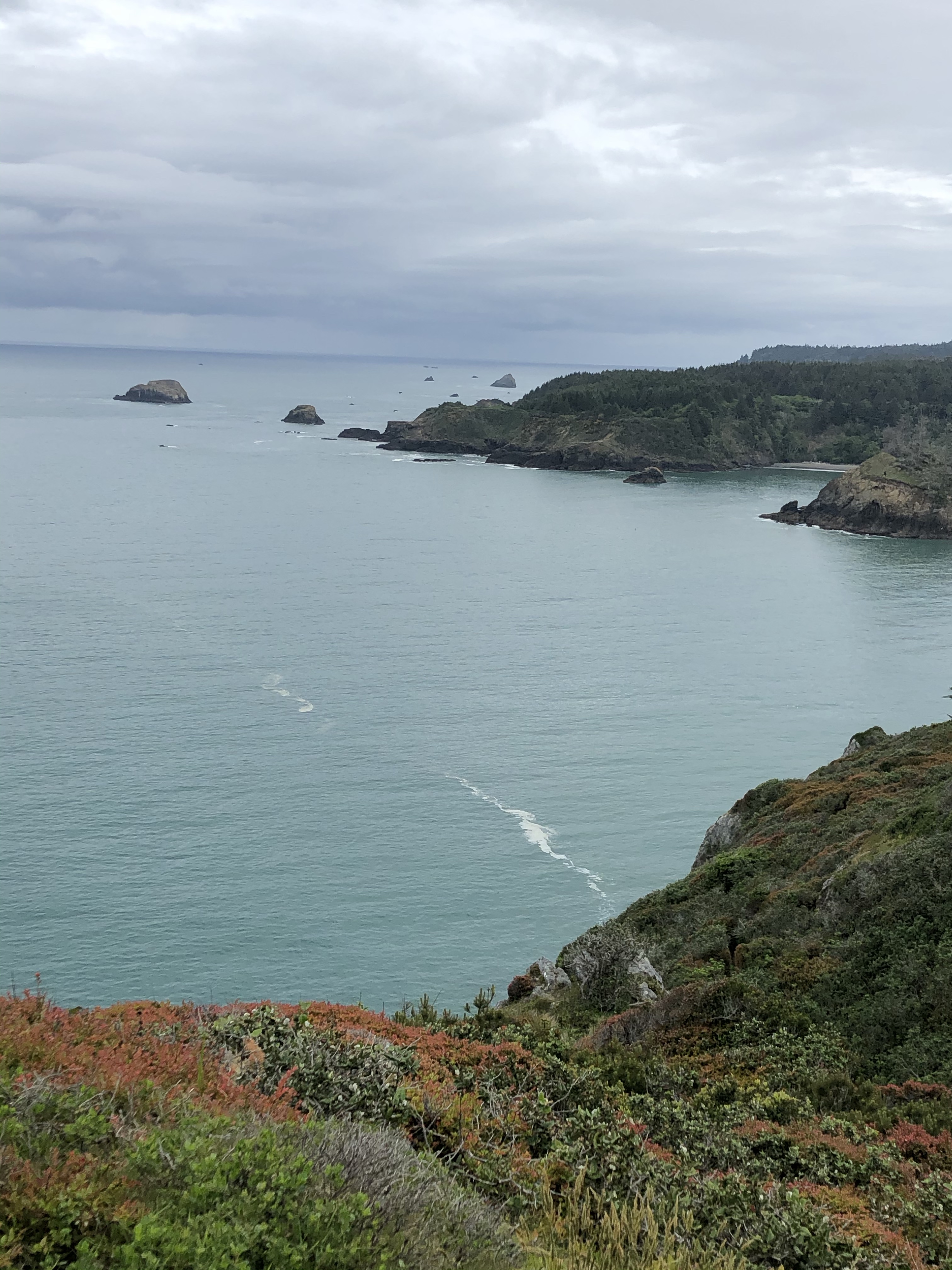 Baxter and I added the spur trail on the headland to our walk today to do something extra and to get a better view. It’s just stunning from that vantage point. This morning’s overcast sky caused the ocean to look my favorite shade of greenish blue.
