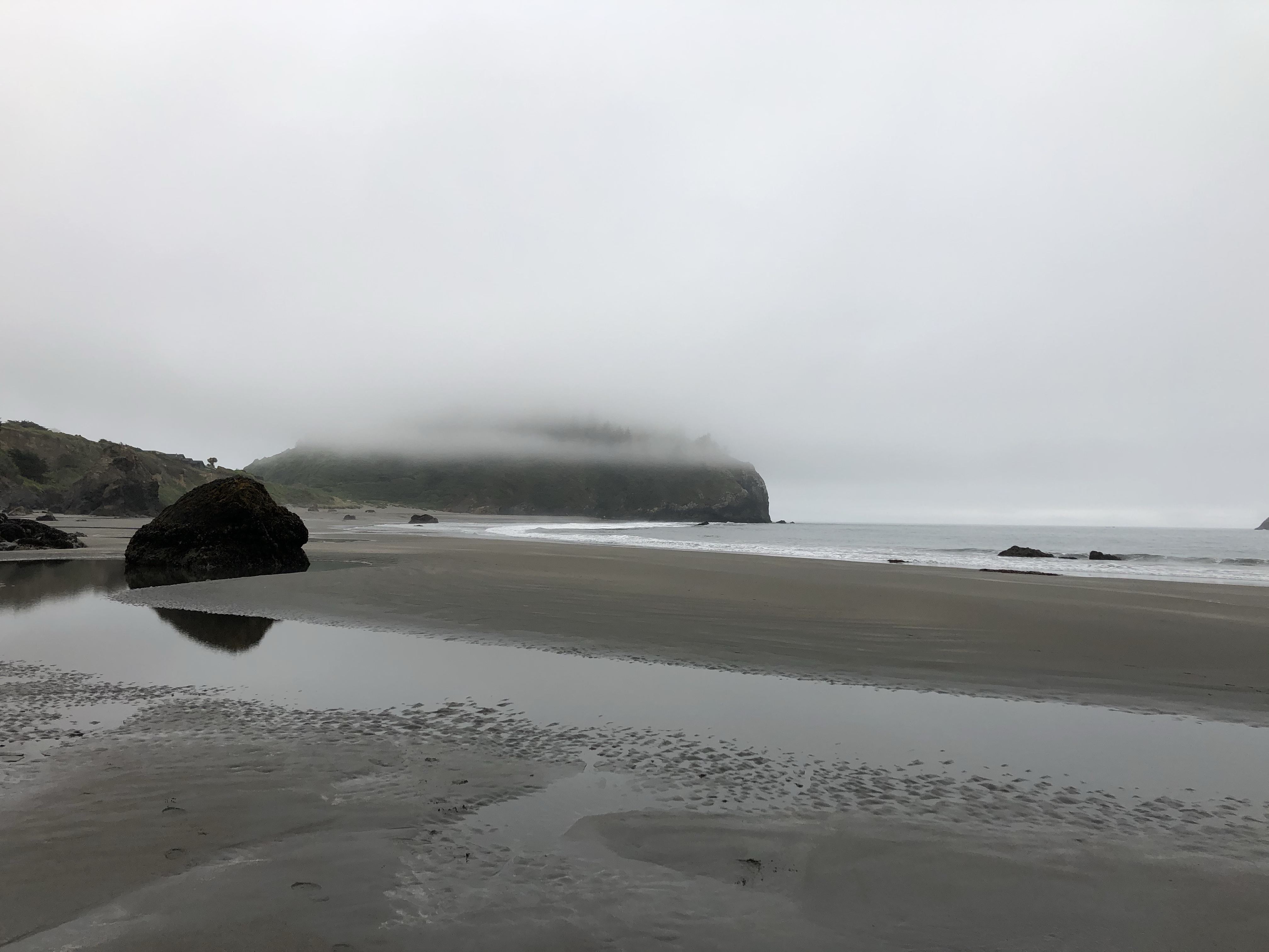 Oh how I love a good tide in the morning. It was a foggy morning and the beach was empty with the exception of one couple with a toddler. The “Dog Park” folk had already come and gone. To Baxter’s dismay I went alone and gave my knees a rest from the usual elevation changes on the headland.