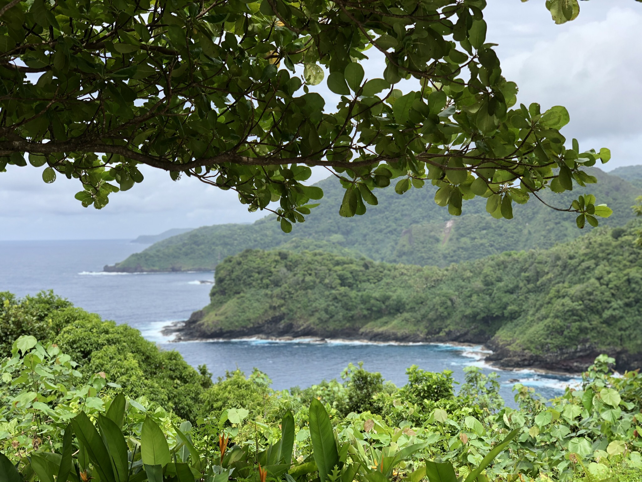 Little did I know that a work trip to American Samoa was in my future. In early February 2020 the National Endowment for the Humanities (NEH) sent me as part of a three person site review team to American Samoa (AS). Every five years a team is sent to review the work of the humanities councils in the 50 states and US Territories. Although we worked long hours in a tightly packed schedule, I throughly enjoyed it. We met with the AS Humanities Council staff, board members, local government, grantees, and other community partners. The people were gracious, generous and welcoming. True to Polynesian hospitality we were treated with great respect and honor and fed extremely well. The landscape is picture postcard beautiful. It was on this trip that the realities of Covid-19 would sink in.