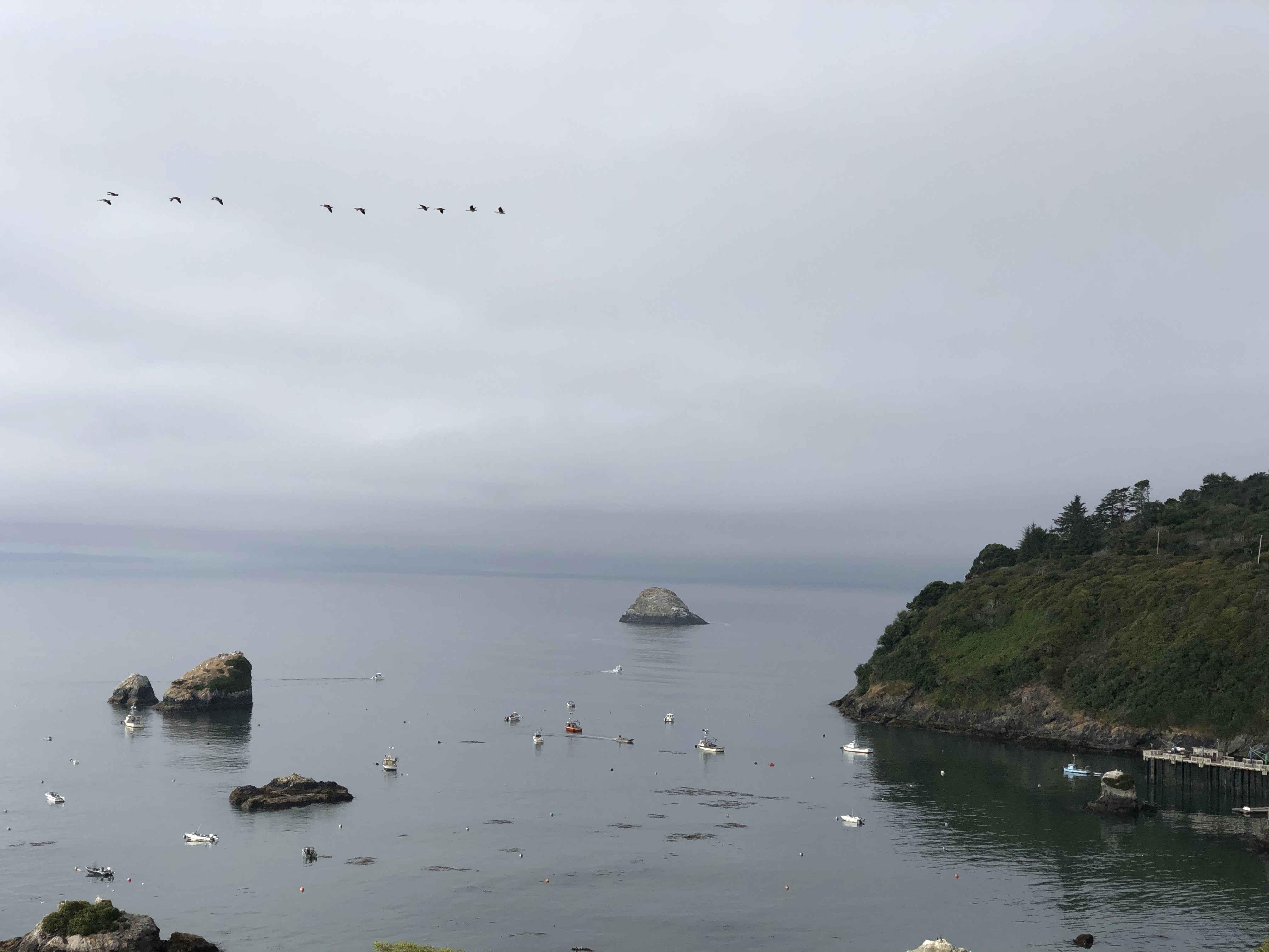 Baxter and I walked the headland this morning but boy was I longing to be on the water. Both Trinidad Bay and the ocean off of Trinidad State Beach were glassy, warm and there was no wind. As they say, smooth as silk.