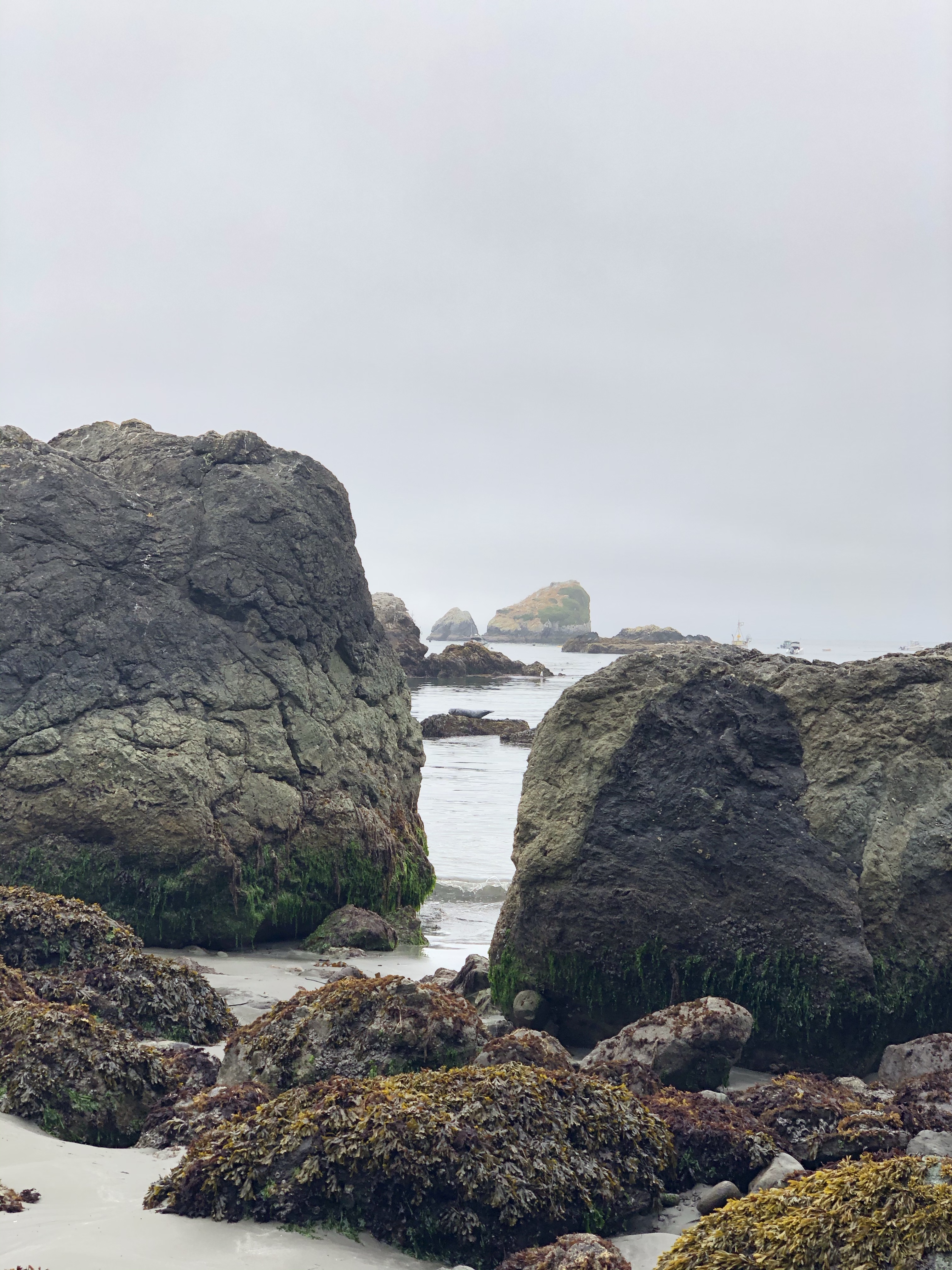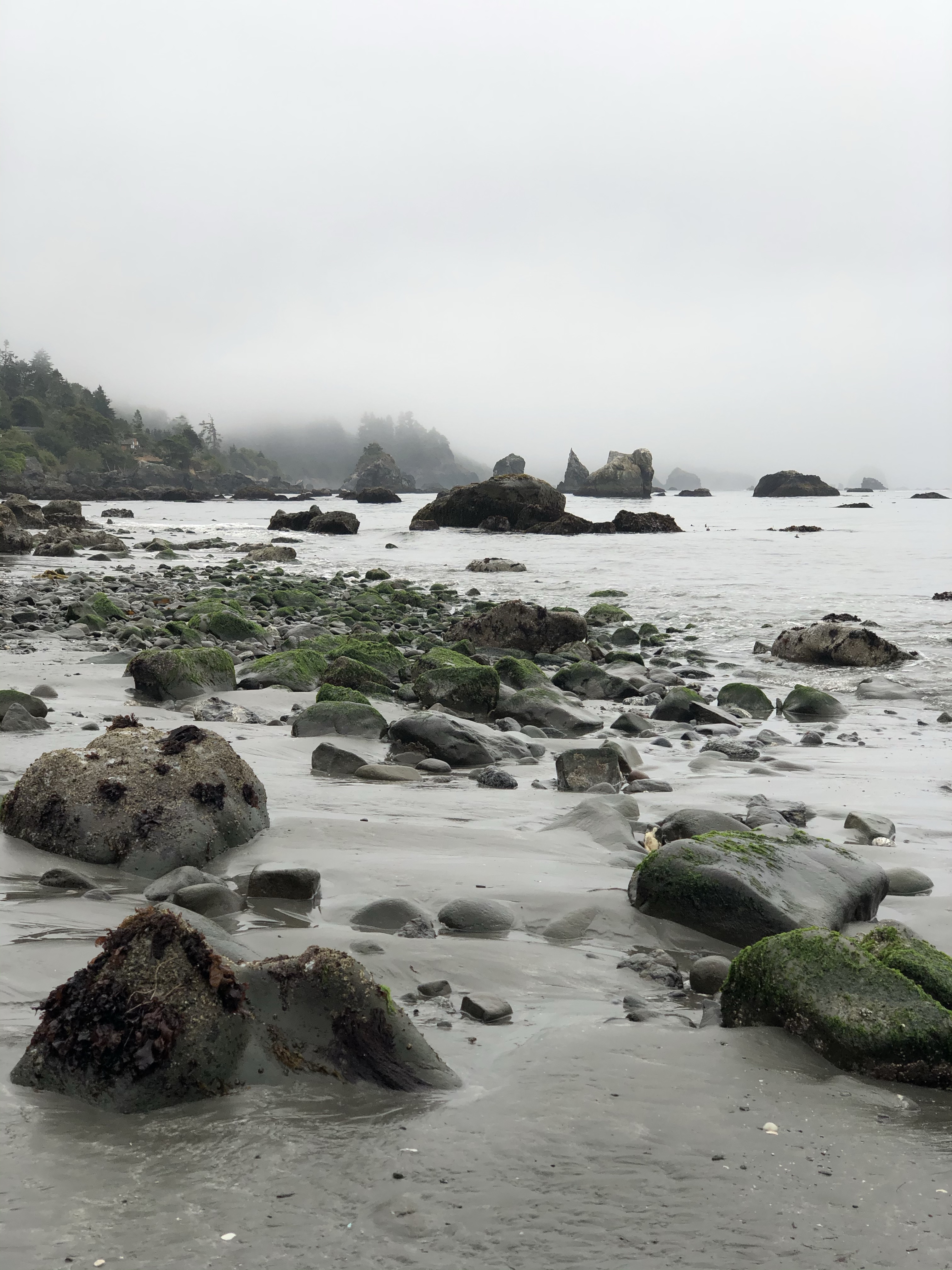 Got out the door this morning to take advantage of the low tide and a quiet Sunday morning on Old Home Beach which encases Trinidad Bay. This beach is a great spot for harbor seal watching and beach combing at low tide; accessible via one of two foot trails. The other plus is that generally the tourists go over to the other beach in town, Trinidad State Beach, which is located on the open ocean side below Trinidad Head. Most enjoy Trinidad State Beach for its longer, wider, easily accessed sandy beach complete with parking lot and restrooms. My blog posts include numerous images of this gorgeous beach.