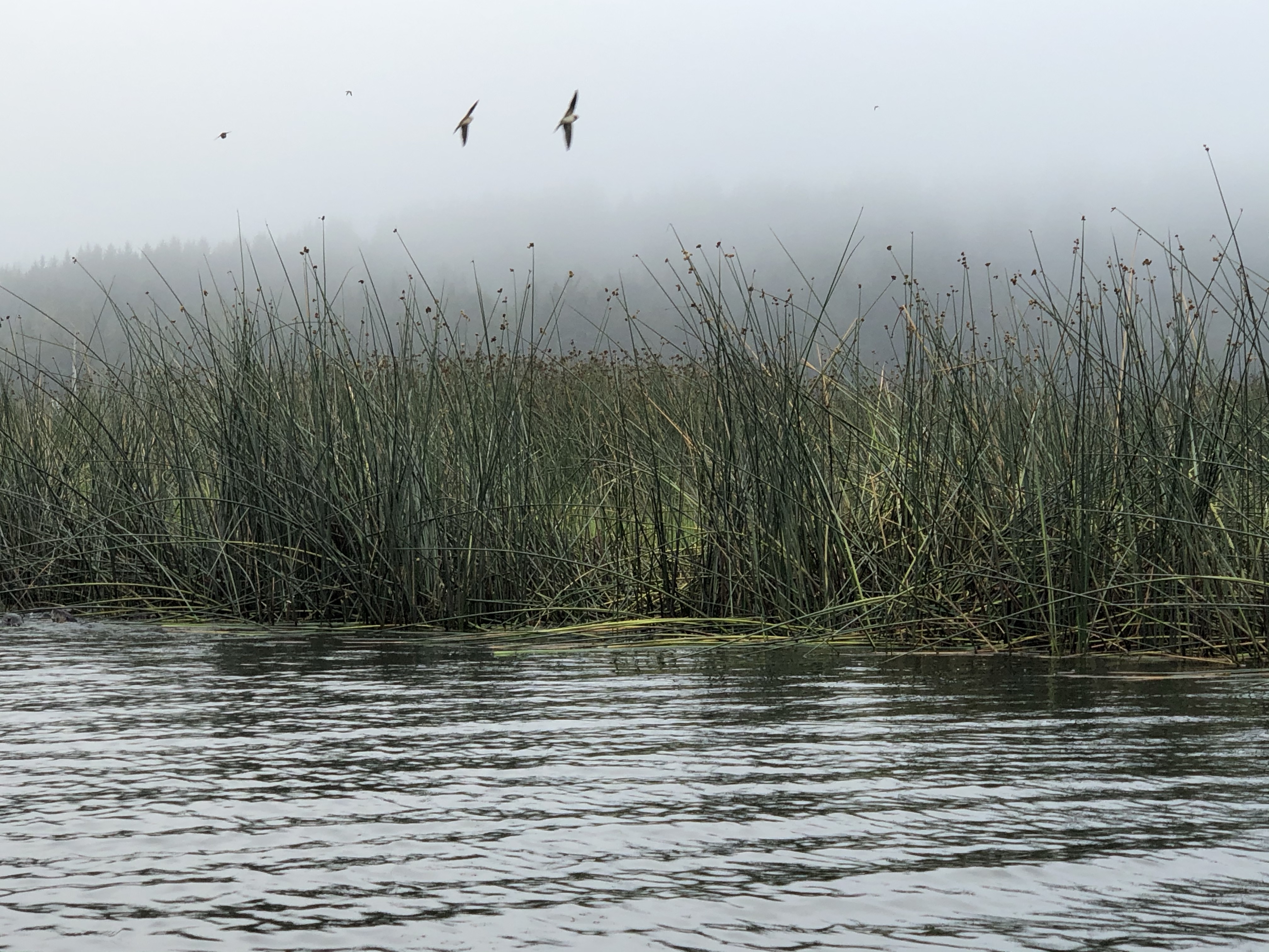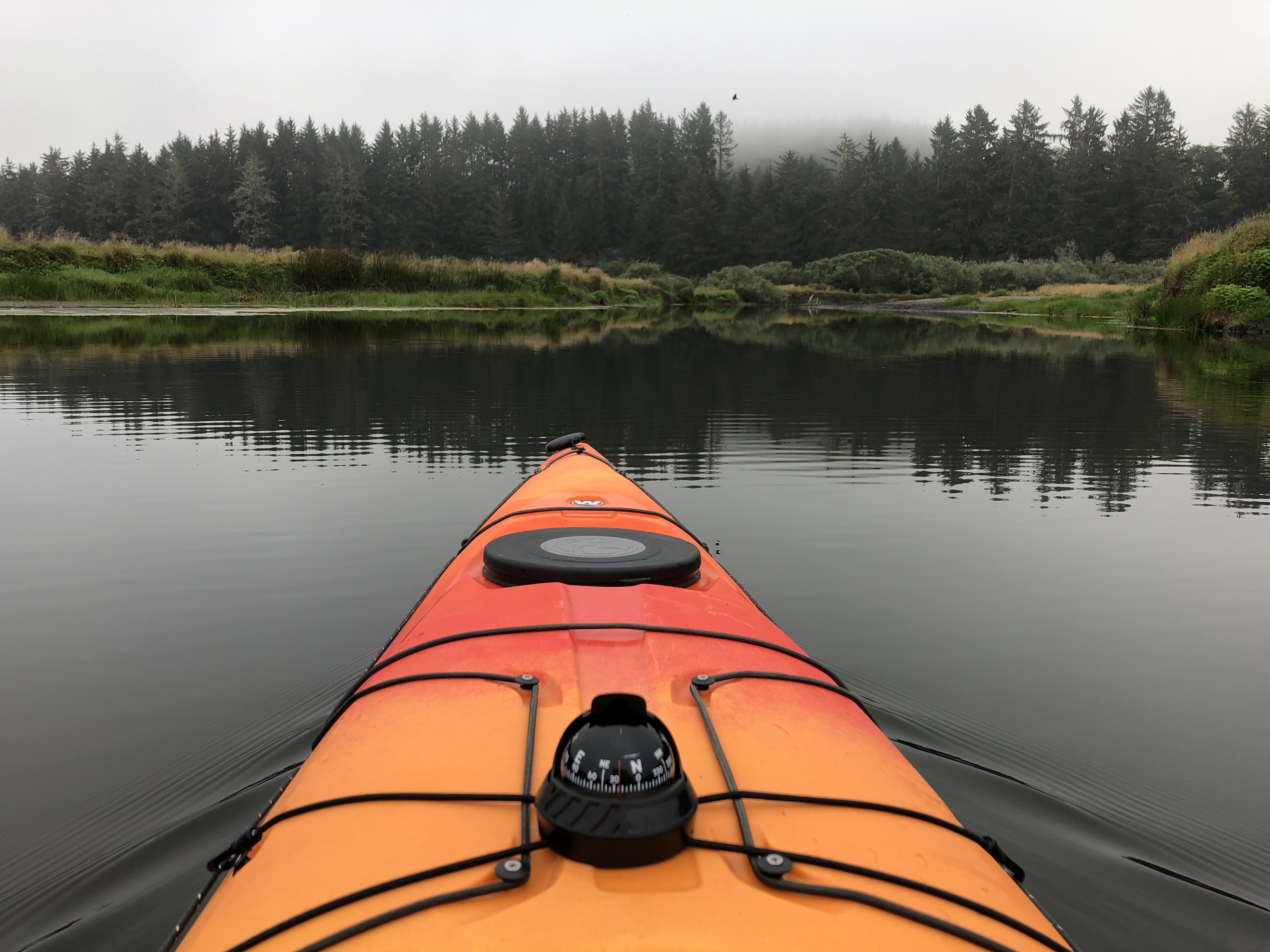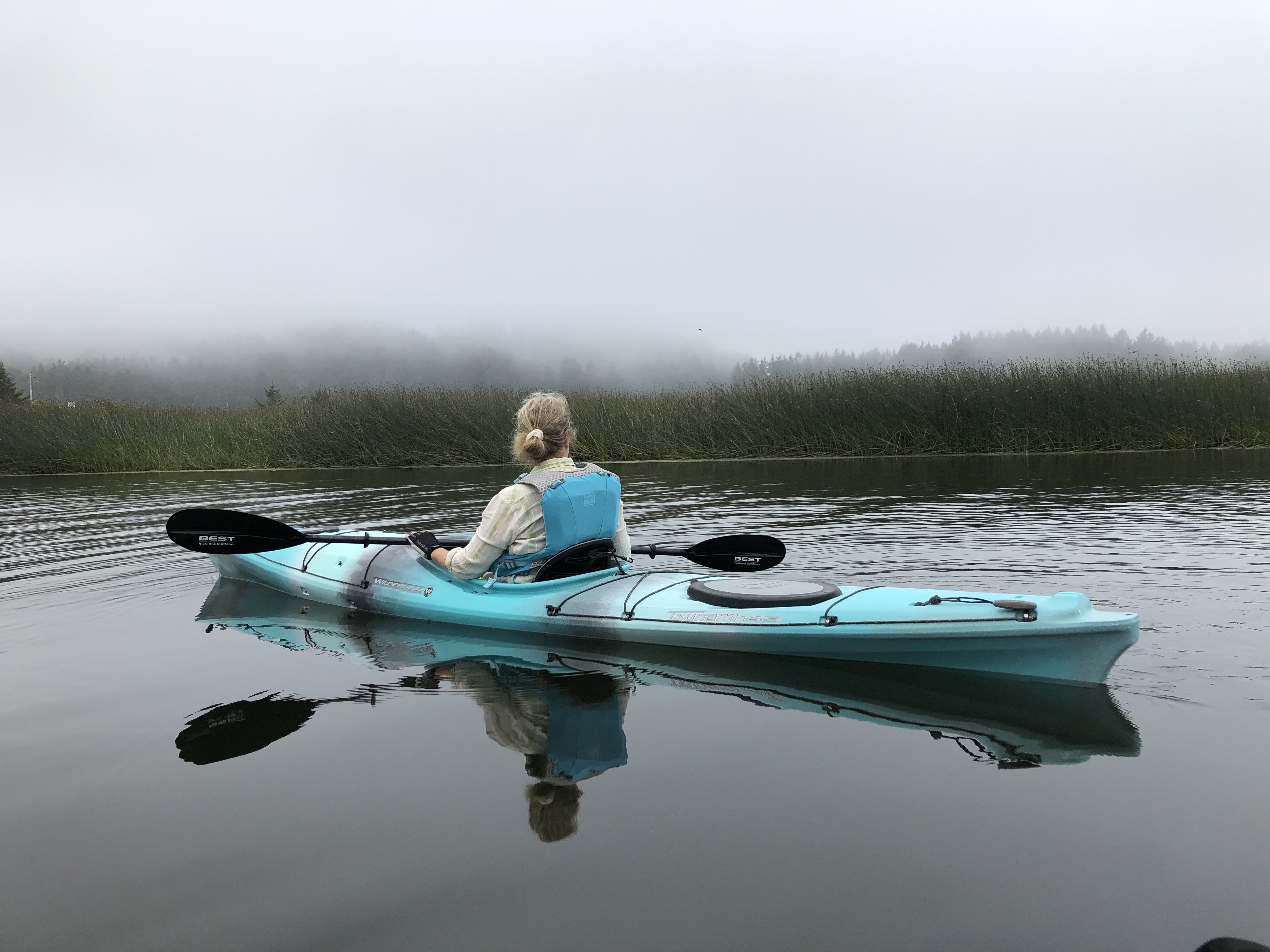 Yes this morning was foggy. But, it was a high fog with pretty good visibility. It was also an awesome day at Big Lagoon because hardly anyone was there. We launched our kayaks at 8:10 am and with the exception of a handful of swimmers, we had the lagoon and the adjoining Maple Creek to ourselves. At the end of our trip, we did pass a woman and her young daughter paddling near the campground area. This morning was a great day to kayak. Note to self: don’t always judge the day by the weather forecast.