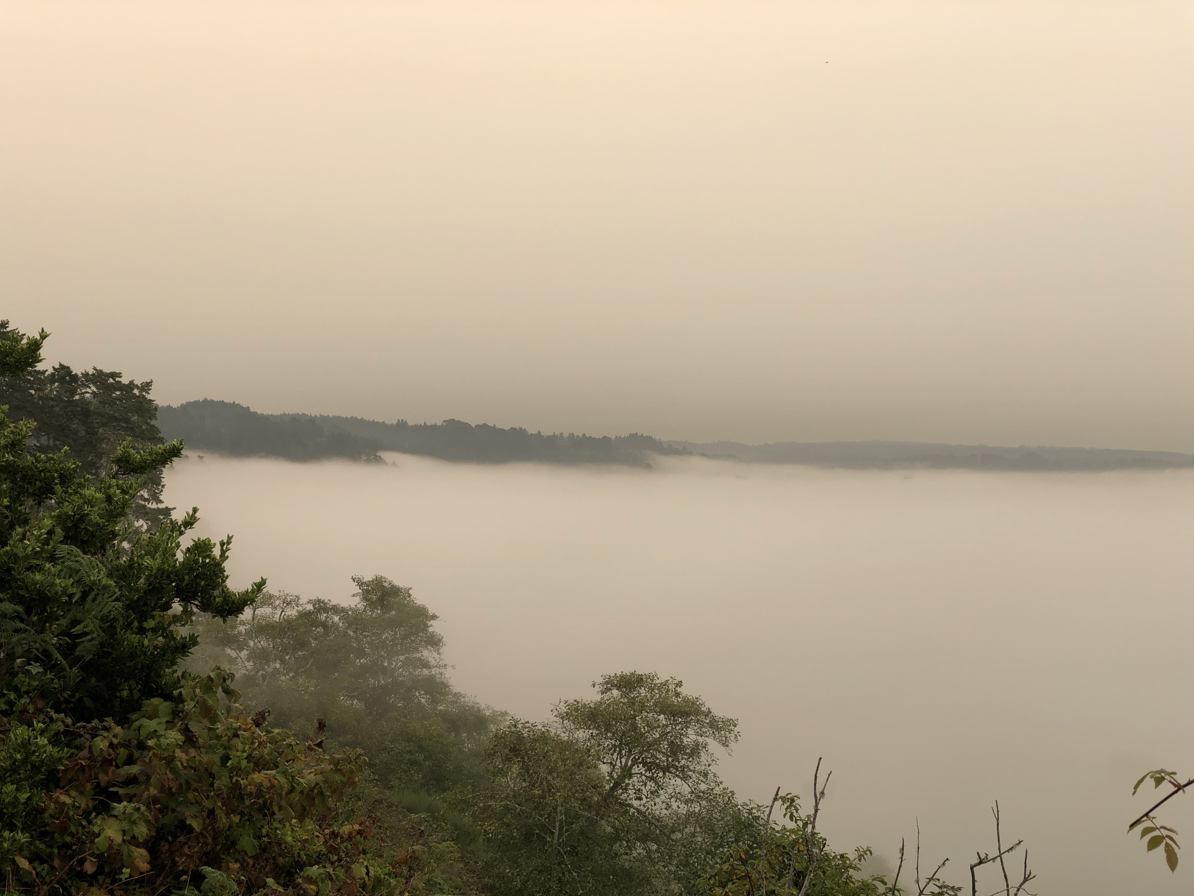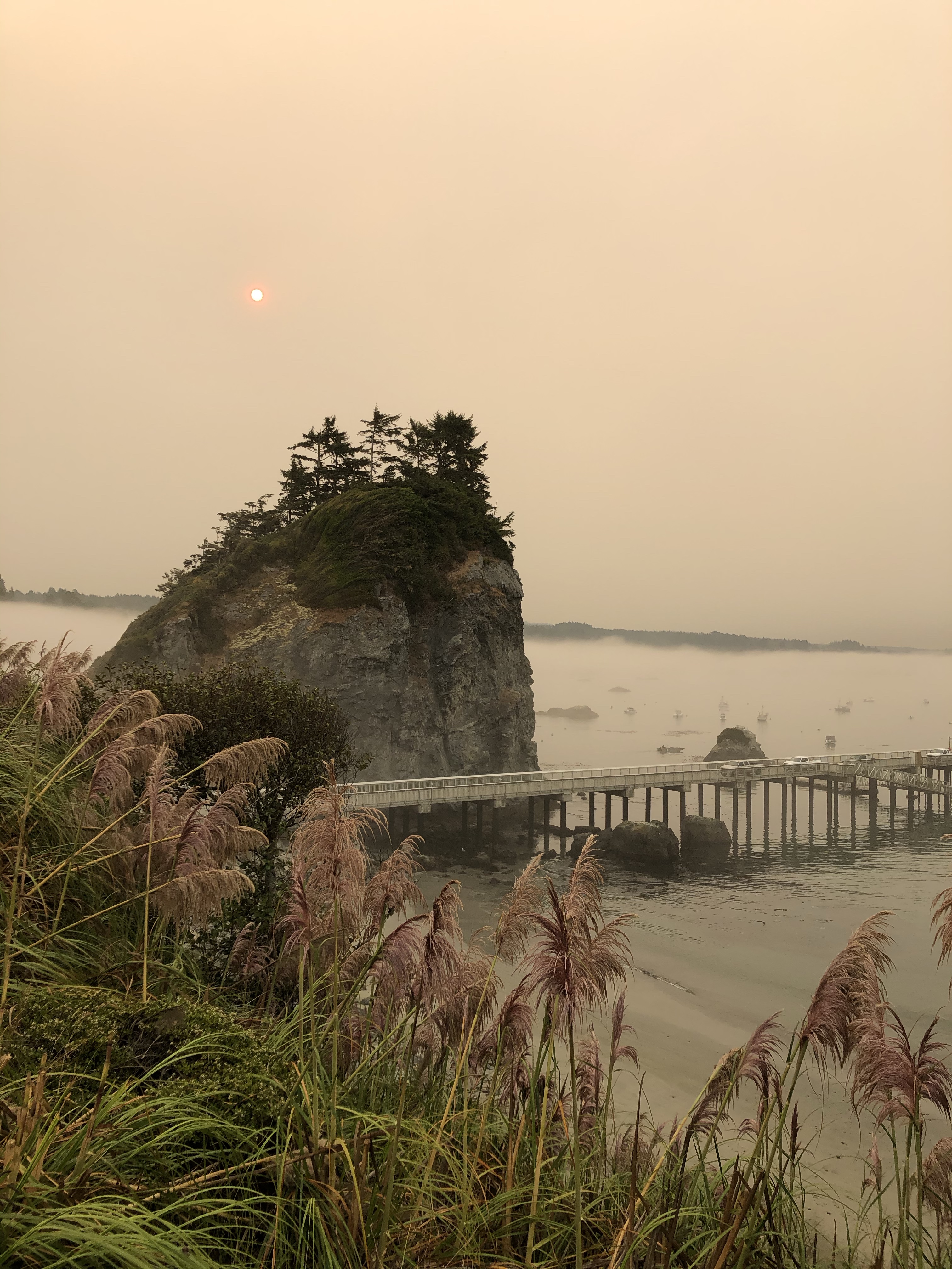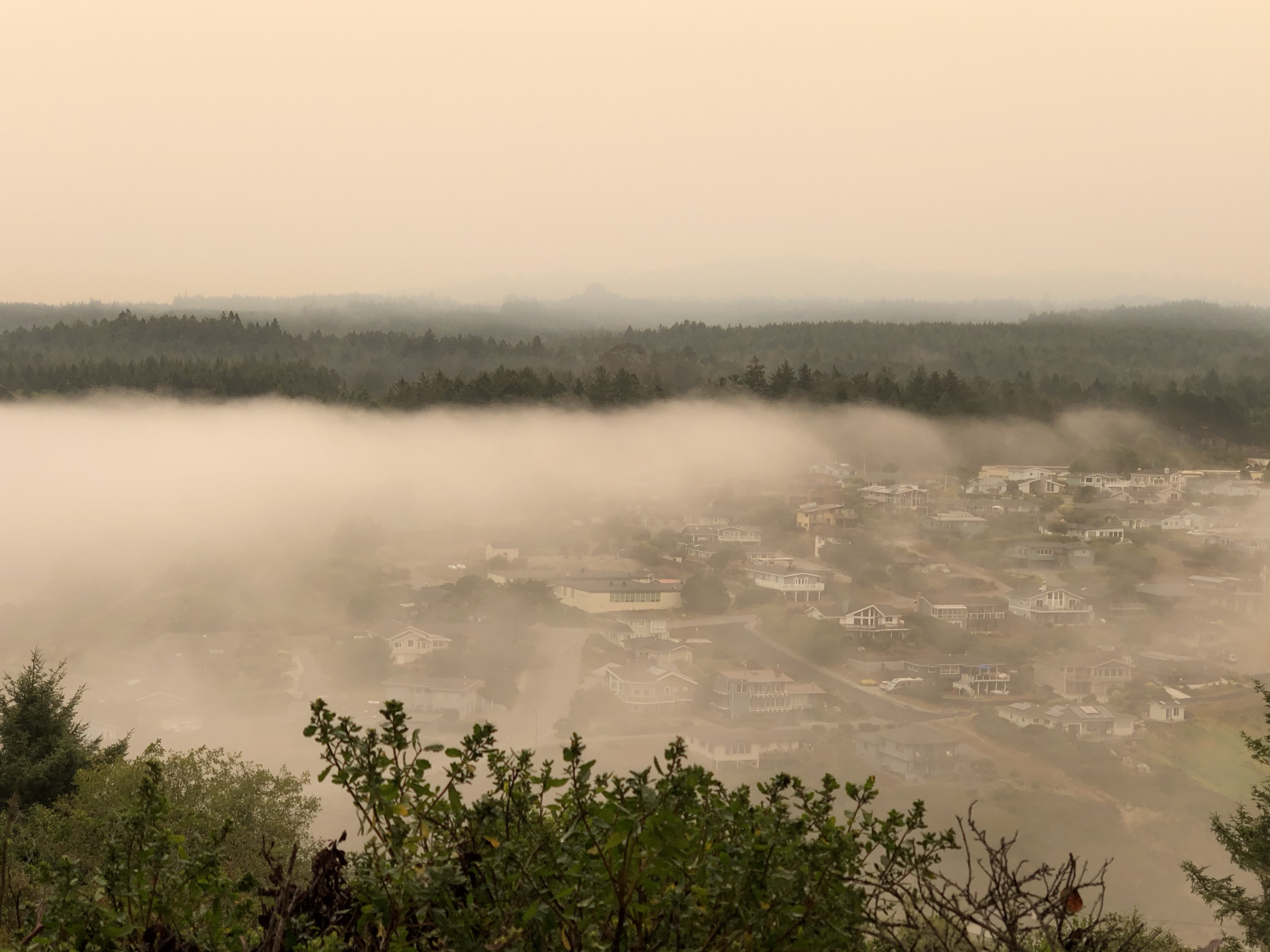 There is an eerie feeling and mood in the air today. Early morning fog combined with the environmental affects of the wild fires to the south and east of us have created a strange orange and gloomy glow. A light coating of ash continues to rain down on us and the sun is blood red. I’m hearing from friends and family that this is also the case in Oregon, Washington, Southern California and parts of Arizona and New Mexico.