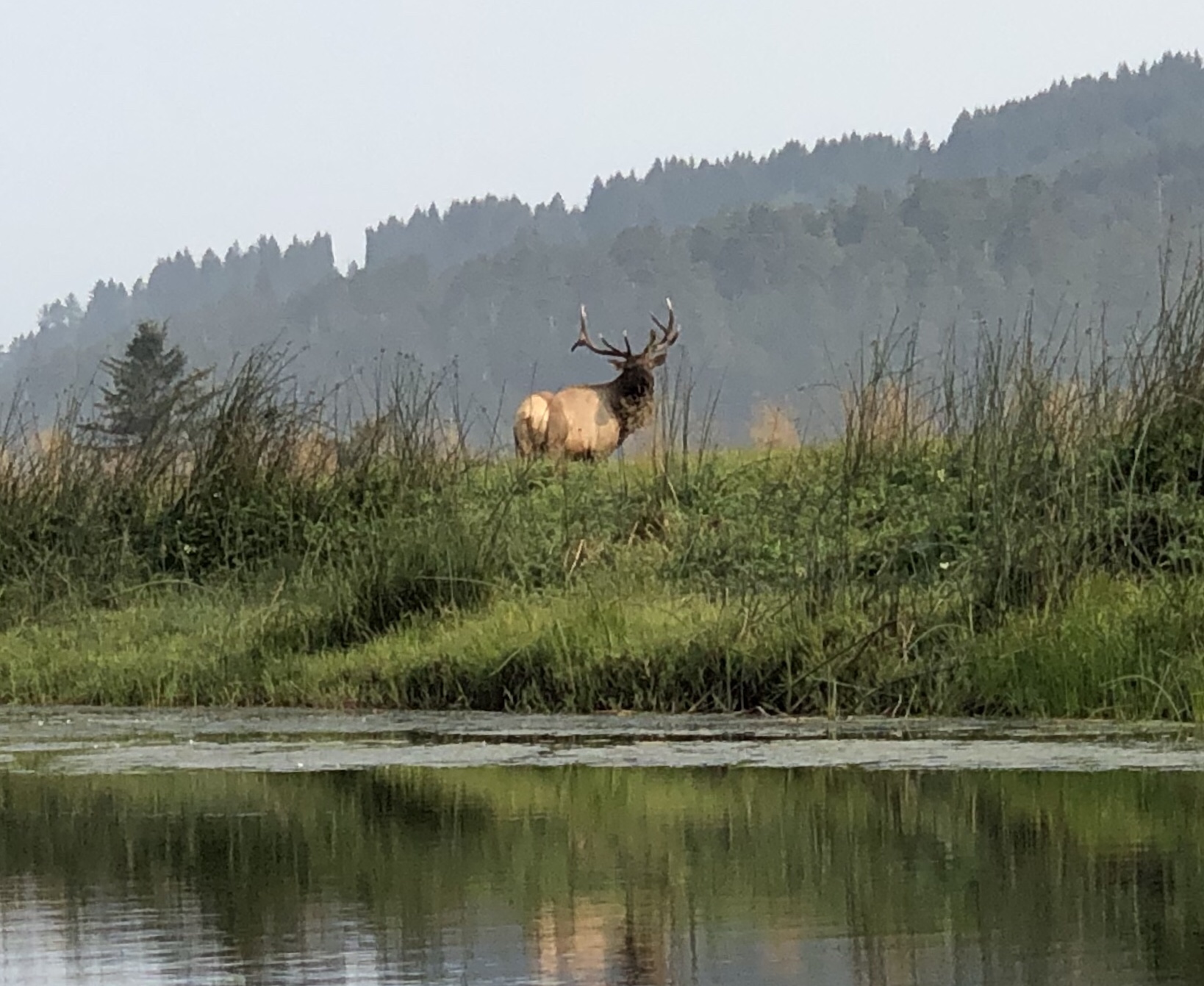 Along the way we encountered numerous shore and sea birds, including several herons and snowy egrets along with a very vocal group of red shouldered hawks. Three otters were feeding in the water where Maple Creek joins Big Lagoon. Along the shore of Maple Creek was a very large Roosevelt Elk white tipped buck who wasn’t the least bit shy. What a day! This experience more than makes up for the four days we had to spend indoors due to the poor air quality created by the wildfires. Enjoy the pics! #iluvtokayak #humboldt #kayaking #biglagoon #maplecreek