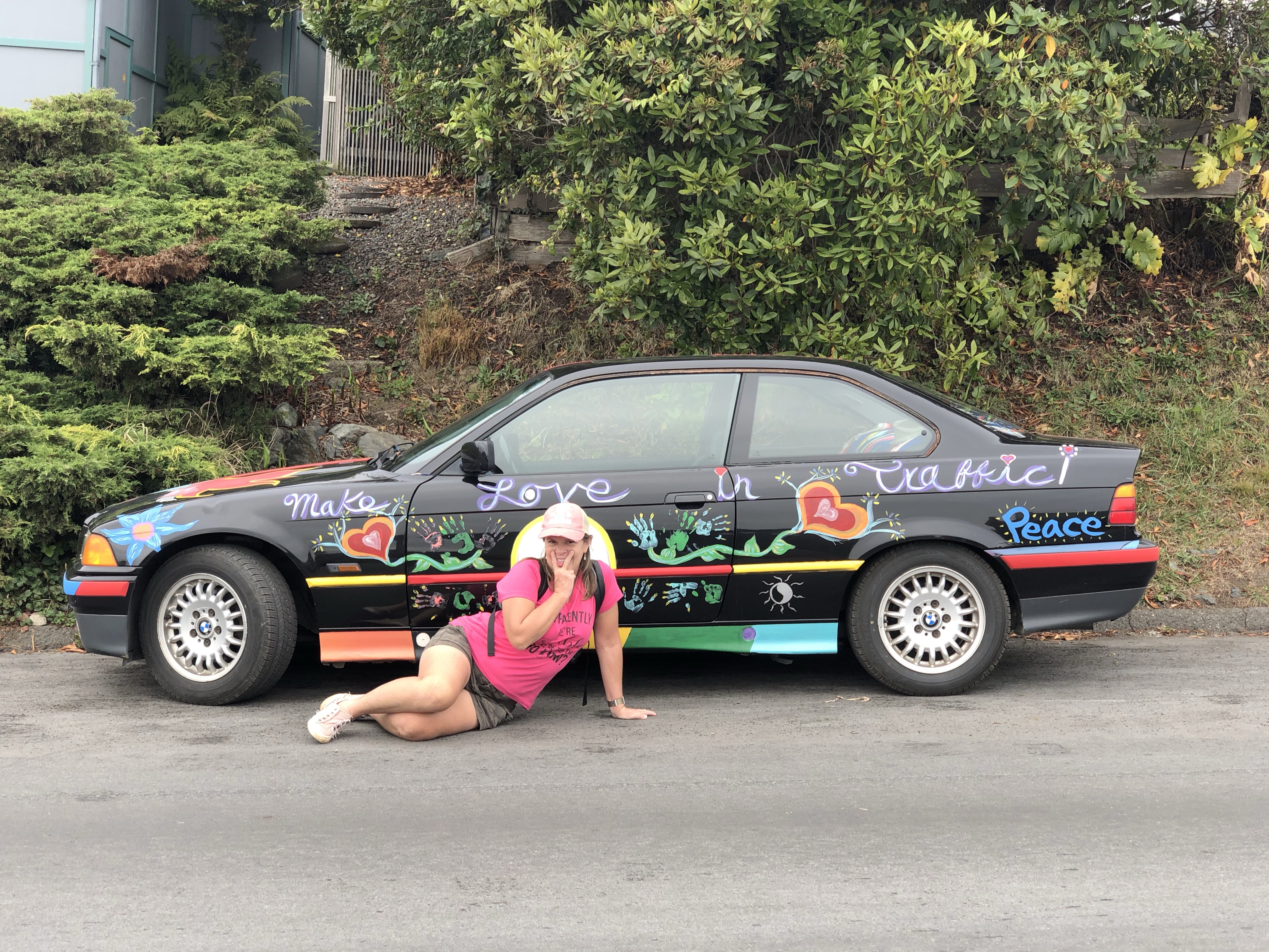 I knew there would be some tourists with kids, dogs, etc. In the past, I have even been witness to a pet chicken. There is always a first time for everything and today, someone was enjoying time on the beach with their four year old pet pig. I will never underestimate beach visitors again. People were spread out along the beach and in town, seeming to have a great time doing whatever they were doing. Even the woman who posed for her friends by the neighbor’s “love” vehicle. Enjoy your weekend and my pics. I have included a video of the wave action. #iluvtowalk #humboldt #trinidadcalifornia
