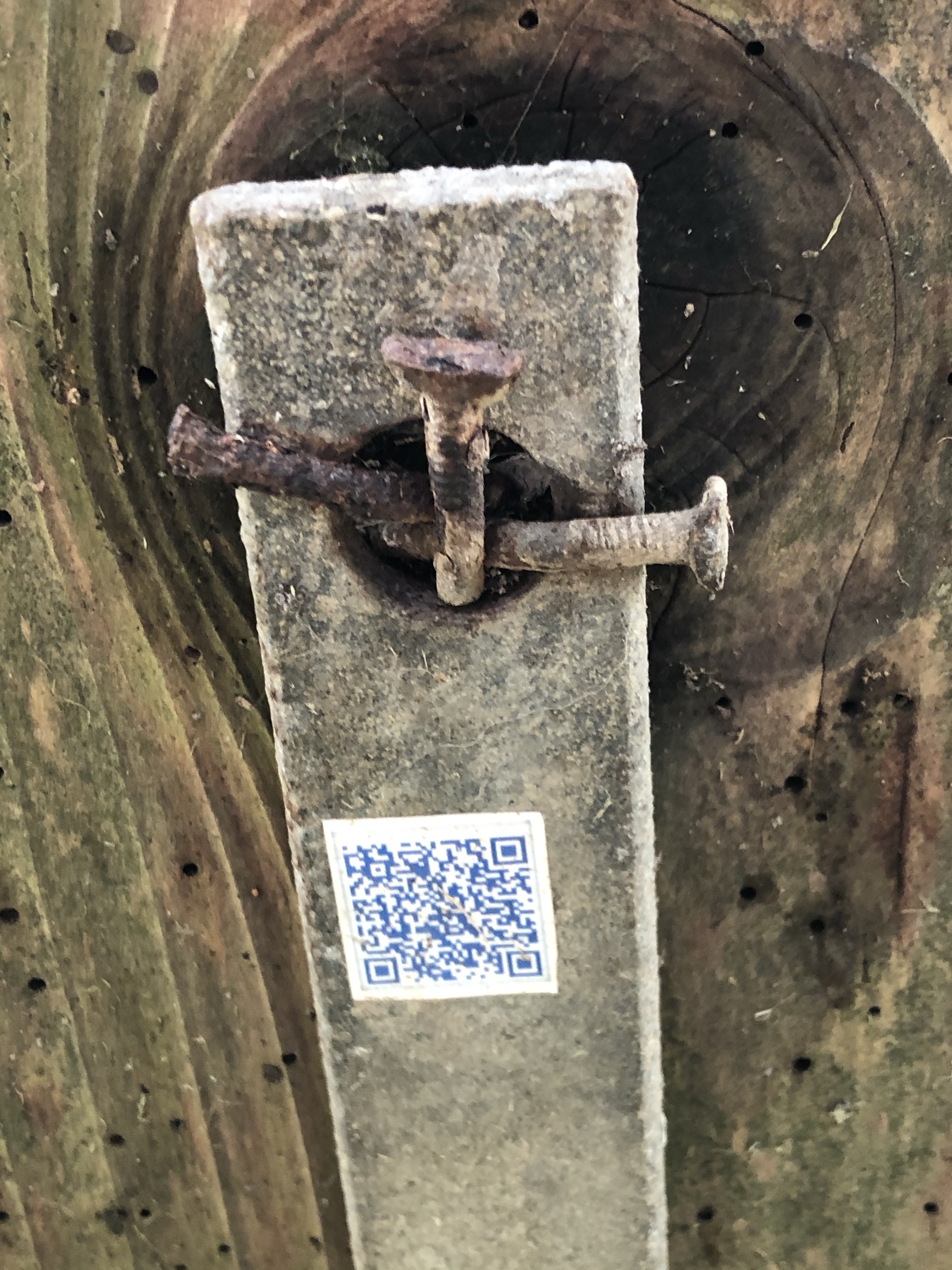 I have been watching with interest activity on the headland that many people might not notice or take a second look at. We have installations from a traveling poet and QR code’s from an internationally played game called Munzee (see pics below).