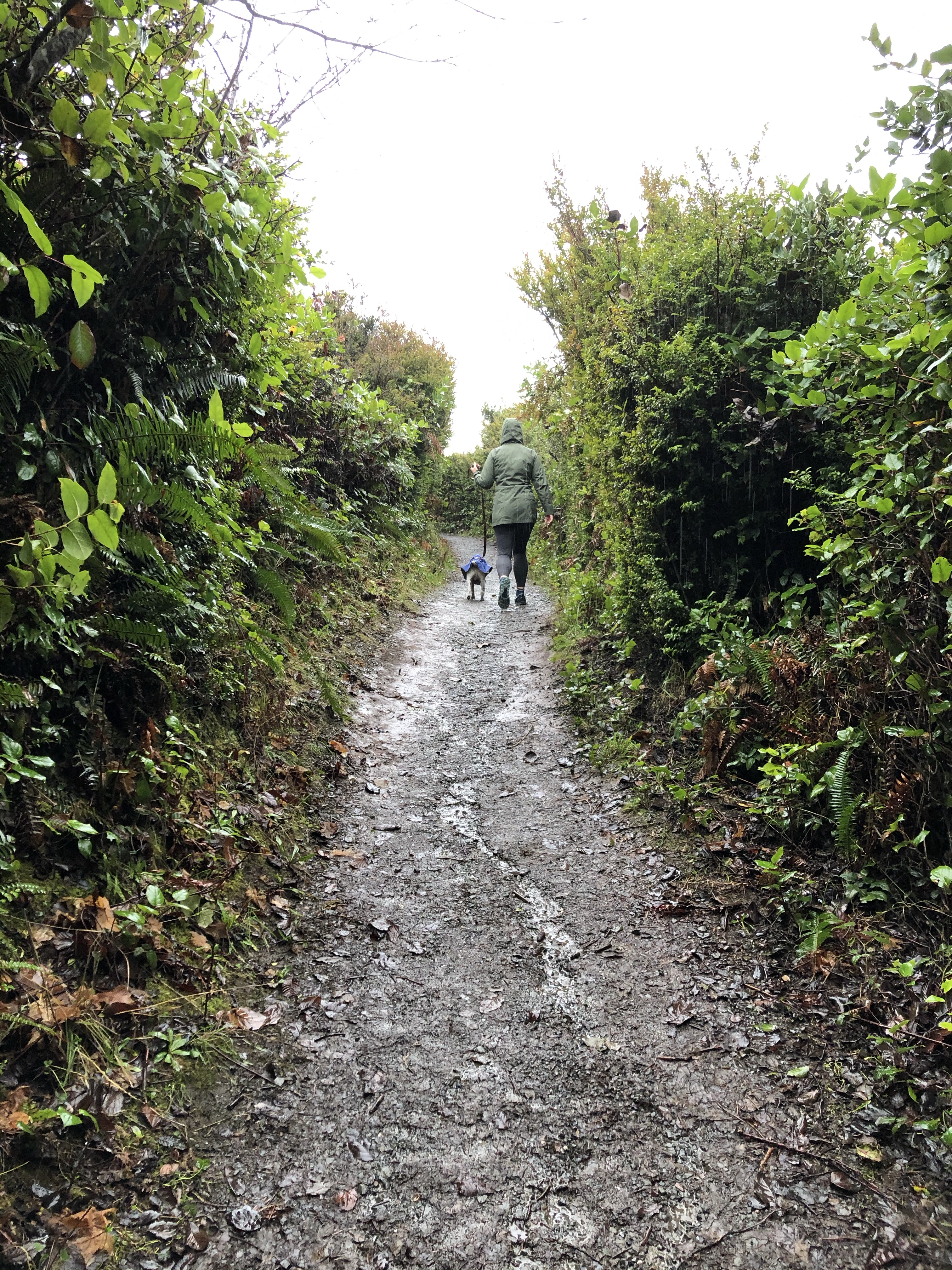Nothing like a morning walk in the rain to lift one’s spirits. It always amazes me how much the weather controls who decides to get outside and move. The silver lining of inclement weather, solitude on the trails. Thank goodness for rain gear!
