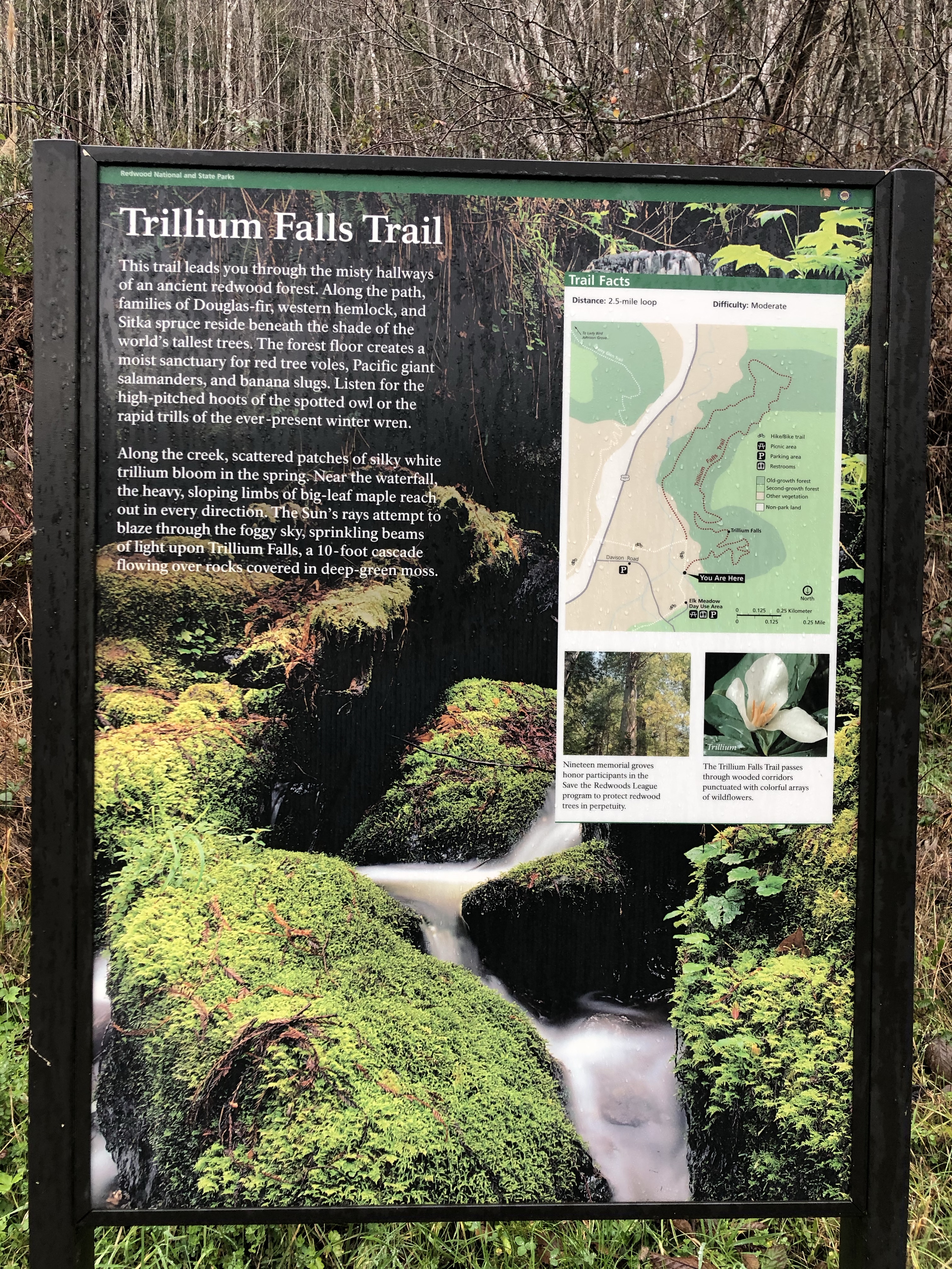 If there ever was a great opportunity to clear your head and get grounded it’s this hike thru the woods. Walking amongst the big trees and rich vegetation, combined with the smells of a damp forest is sheer bliss. Trillium Falls and its creek were flowing rapidly which also added to the visual appeal and provided great sound effects (see video). It’s a small waterfall but lovely just the same. I hope you enjoy my pics and are inspired to take a walk in a park near you. #iluvtowalk #humboldt #humboldtcounty #redwoodnationalandstateparks