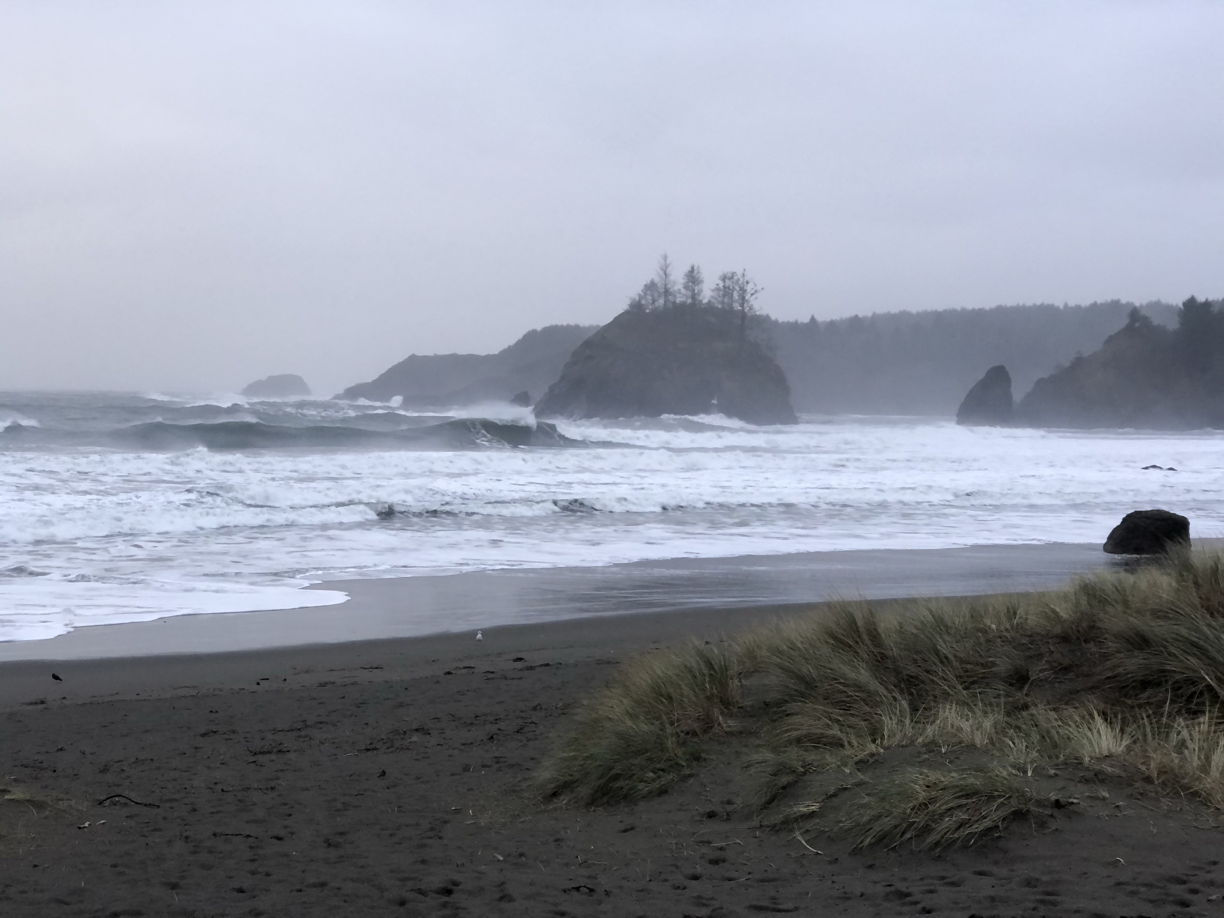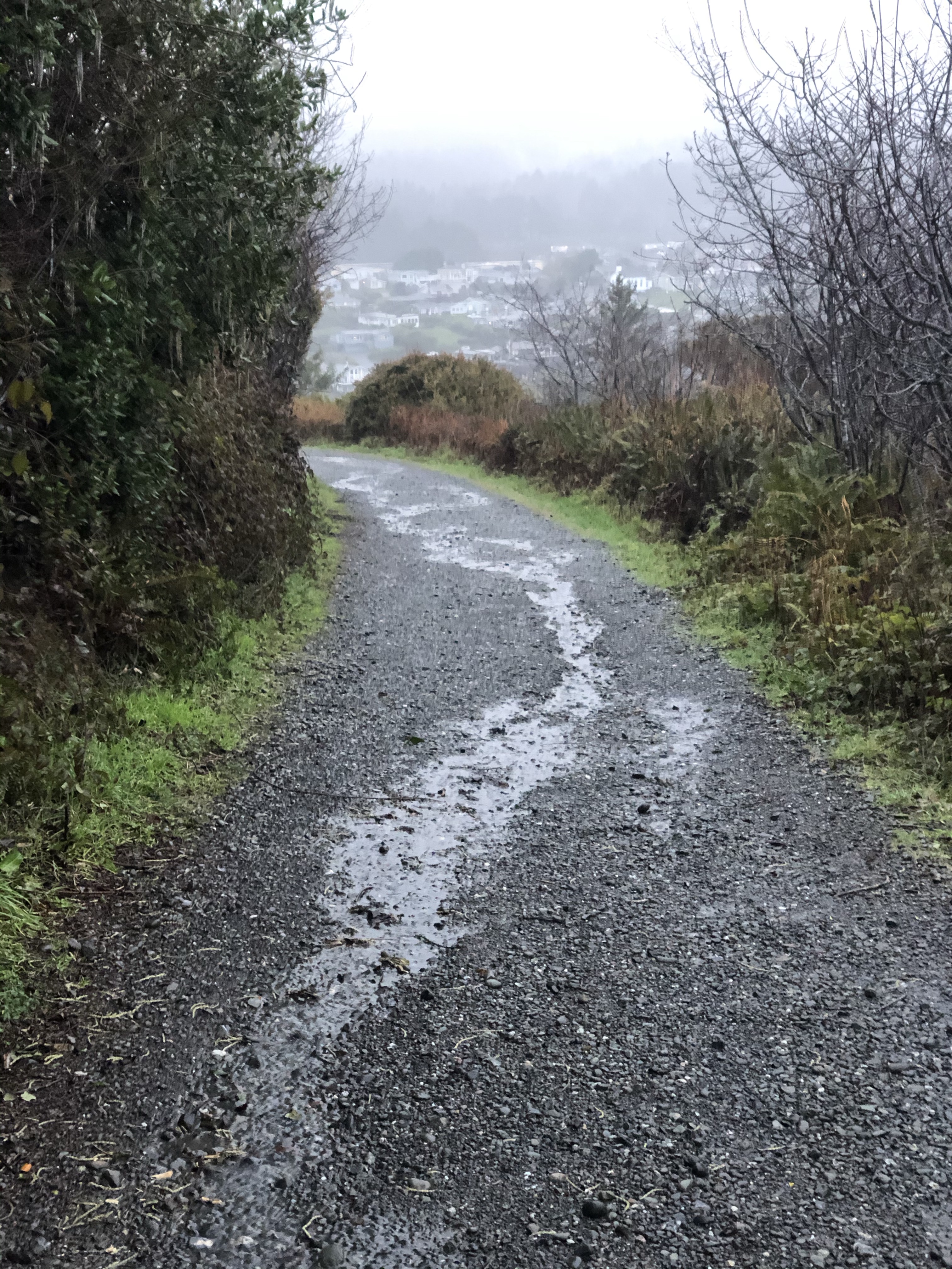 One of the beauties about walking in the rain is the solitude. The rain chases away the fair weather strollers and many of the beach combers. Today was true to form and we had the headland to ourselves. The downside was the risk of moisture on my cellphone. This winter is looking like a wet one so I’m going to need to invest in a phone case and some waterproof gloves.