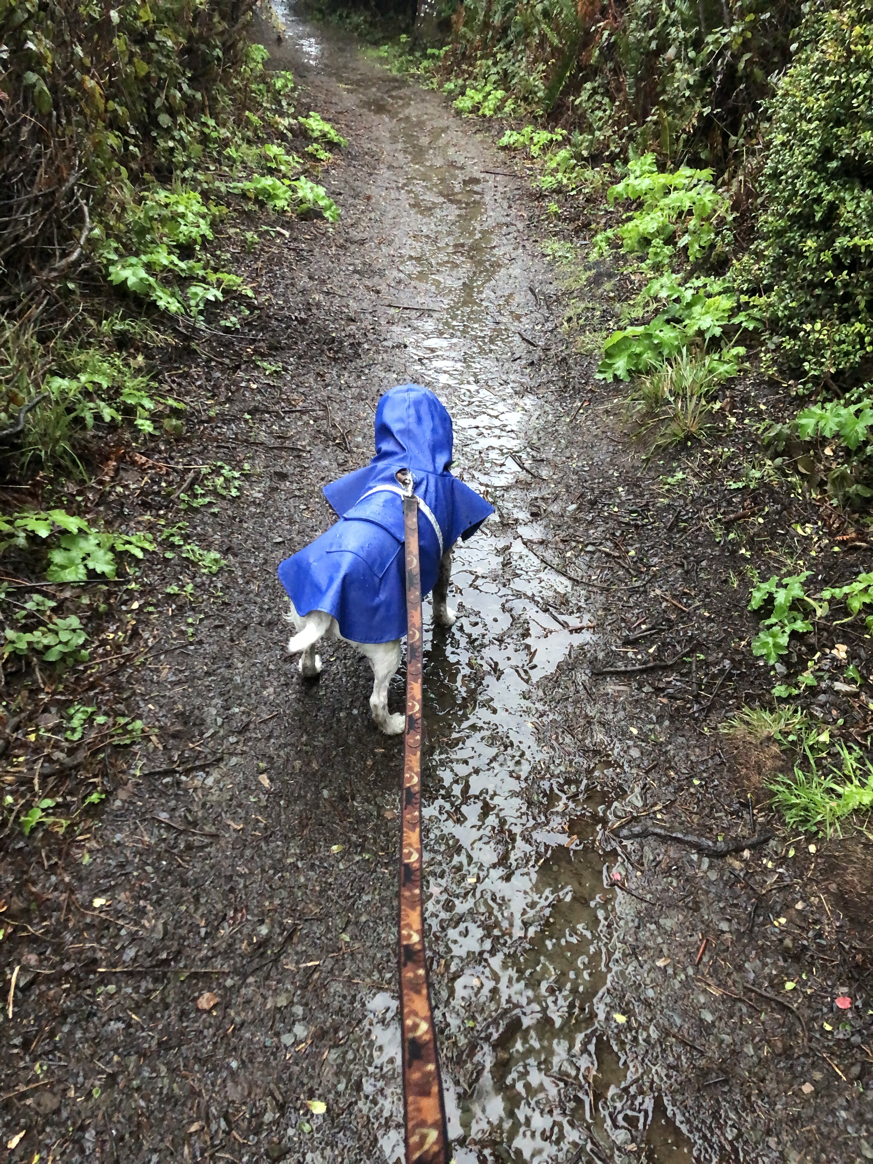 Baxter and I braved the storm this morning and got in our walk. While we got soaking wet on the exterior, thanks to technology our gortex shells kept us relatively dry underneath.