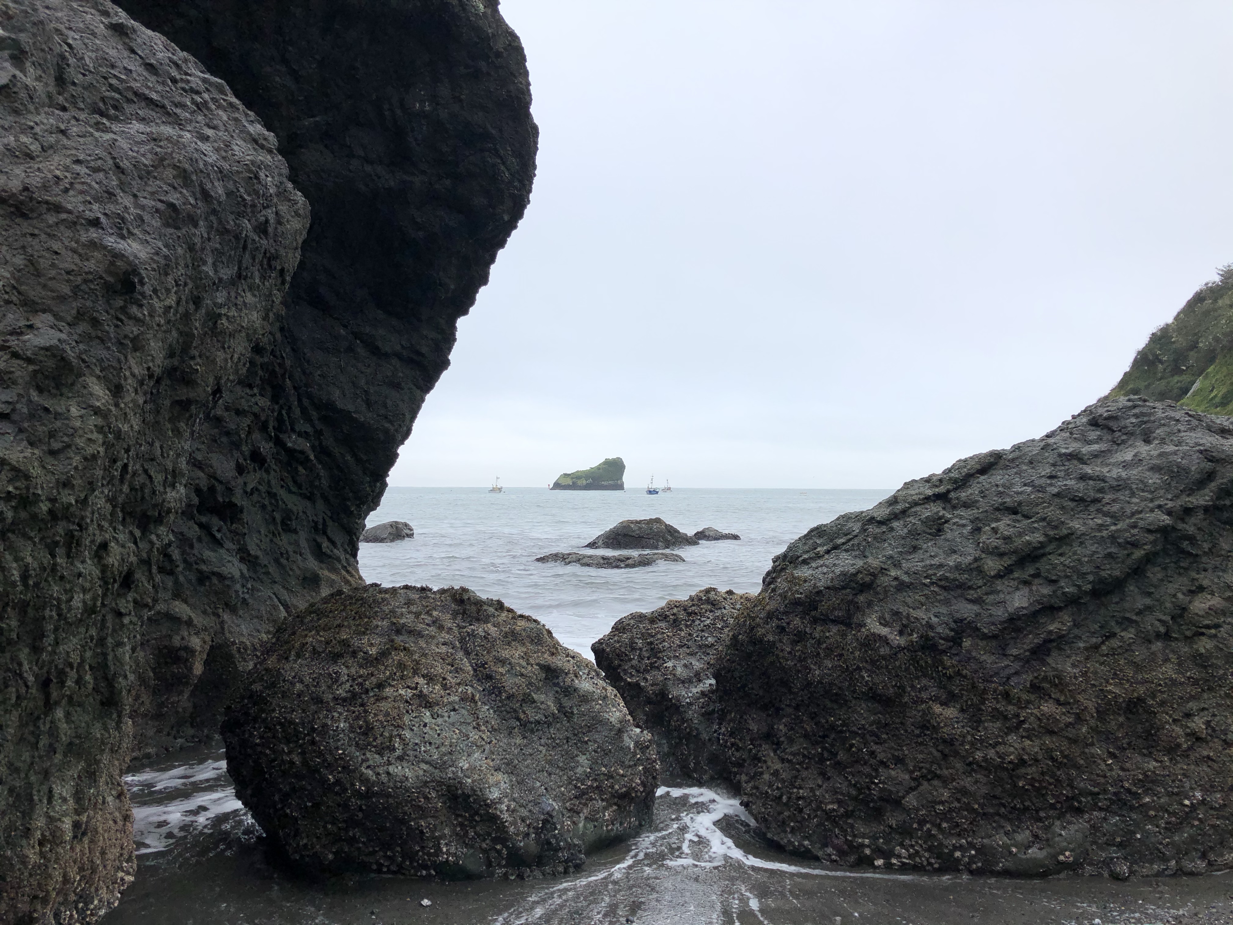 Baxter and I used our “insurance policy” on our walk today. Often when he wears his blue raincoat we beat the rain and today was one of those mornings. A quick spin around the headland and some time afterwards, beach combing on Launcher Beach. A great way to start the day and launch the weekend.