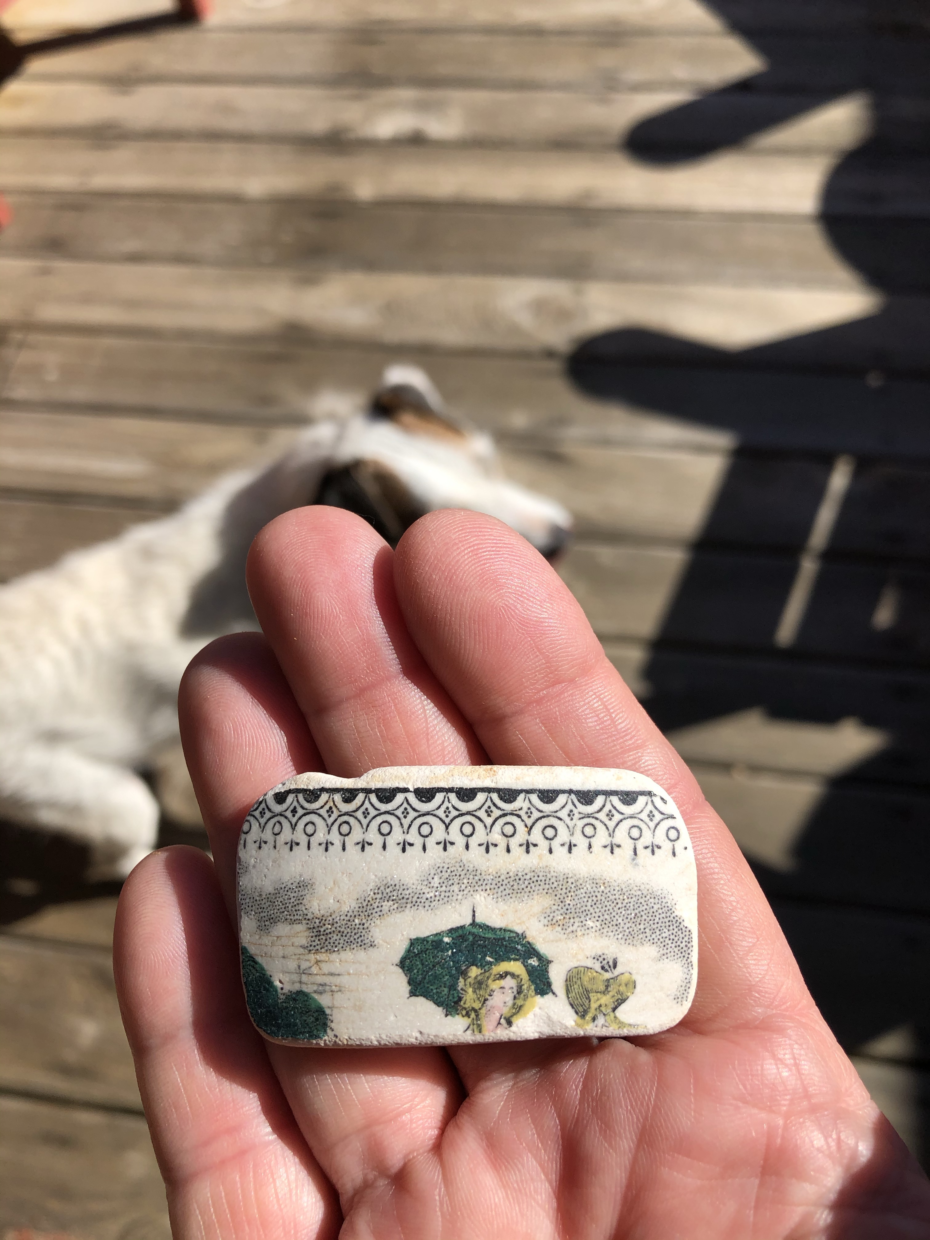 Baxter and I took a spin around the headland and found its first trillium bud of the season. We also had a little time to beach comb and I found a new piece of inspiration: a really cool, nicely shaped and centered piece of pottery, that could make an awesome bracelet. I’m going to think on that one; both are in my pics below.