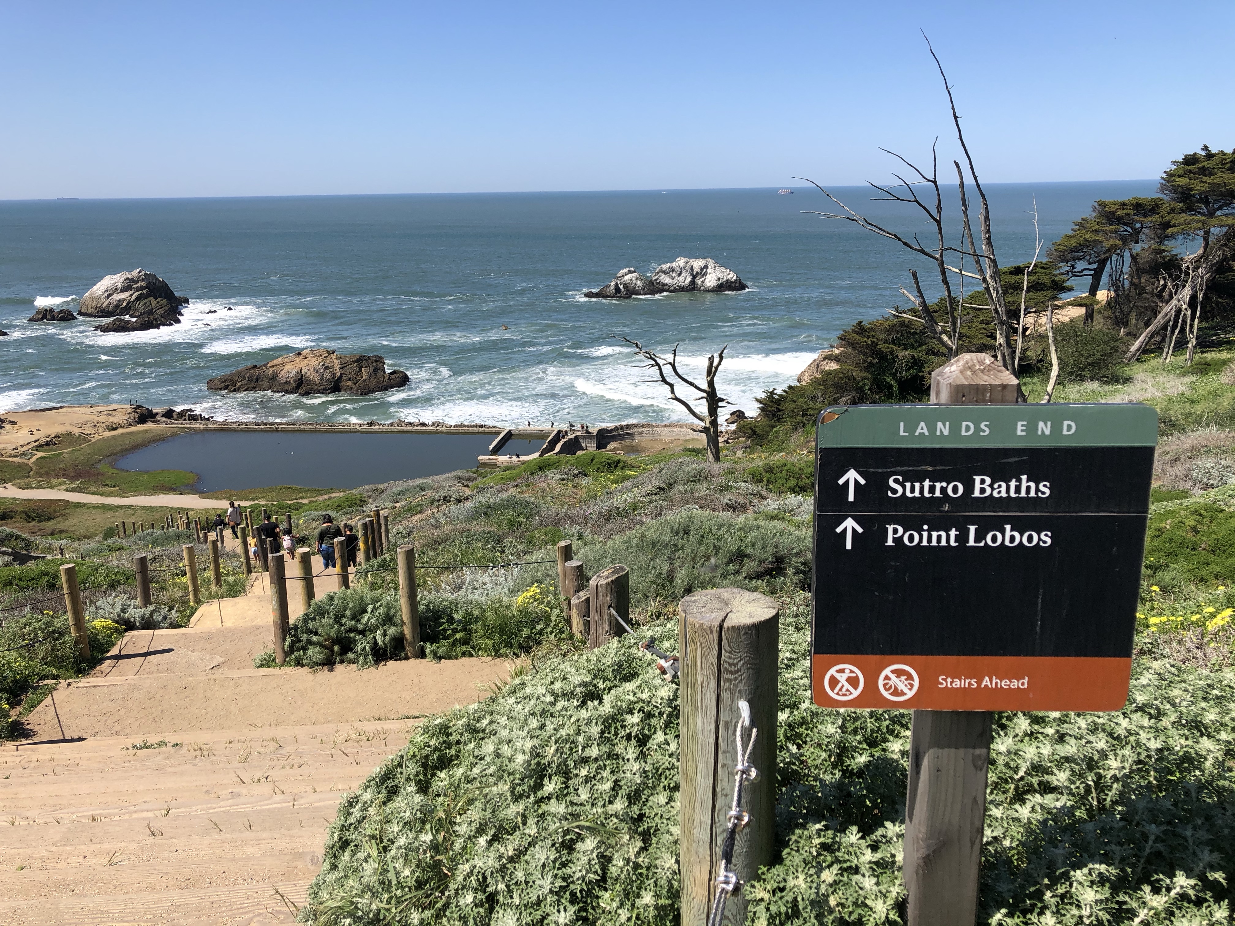 Just below and adjacent to the restaurant is the former Sutro Bath site and the Coastal Trail. I have always wanted to spend some time at this historical site, the remnants of which look like a much older archaeological site. Yesterday, my adult daughter and I chose this location for our daily walk. Like 1993, this choice was befitting for a couple of reasons: we got to explore this awesome site in conjunction with my husband’s second kidney transplant. A kidney that he was fortunate to receive on March 24 from a live anonymous donor in Minneapolis.