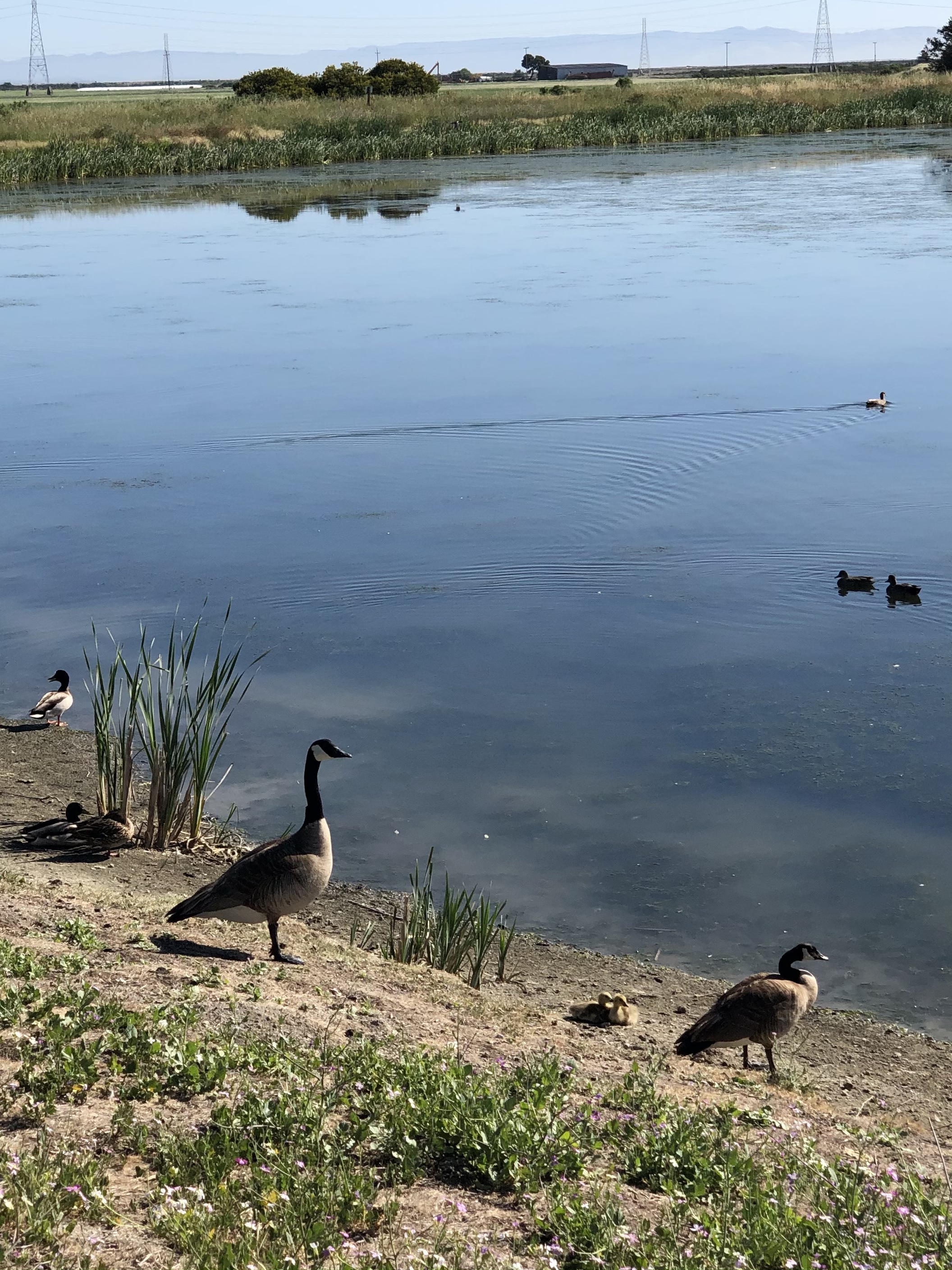 We spent an hour at the site, walking 2.5 miles and spotting Jack rabbits, a California Kingsnake and a multitude of birds. Because this is May, there were lots of Canada Geese and other species of ducklings to be seen. The Jack rabbits are also building their families in the nearby brush in neighboring fields; there were many to be seen. Fun for me; I haven’t seen a live Jack rabbit since 1980.