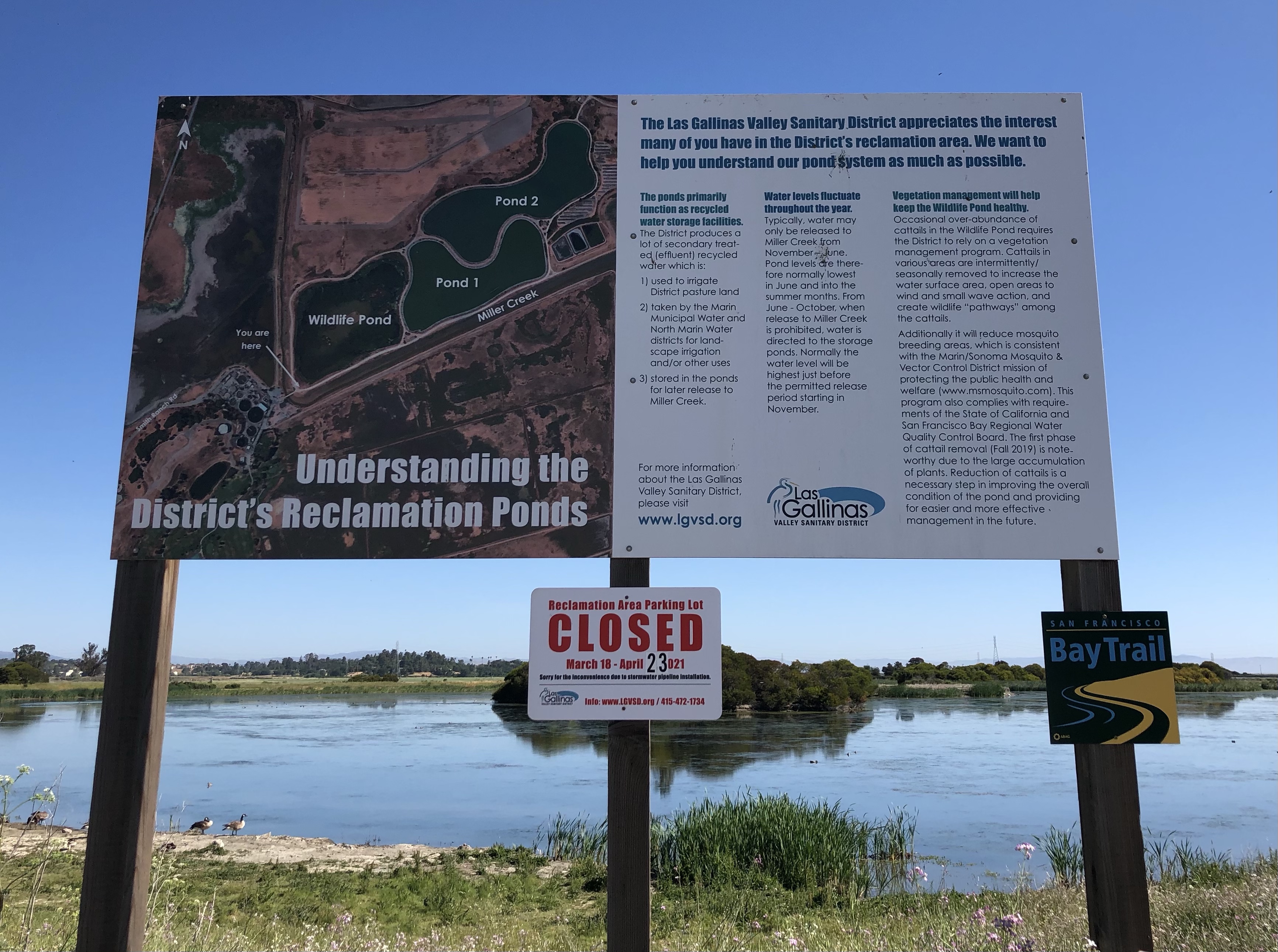 Because I’m currently on a 6 week stay in the San Francisco Bay Area I have been on the hunt for new and different walking experiences. I believe that if you look for it, every community has unique offerings. This morning a friend of mine took me to….wait for it….the Las Gallinas Valley’s Sanitary District’s Reclamation Ponds. Yes, I’m serious. Don’t knock it until you try it.