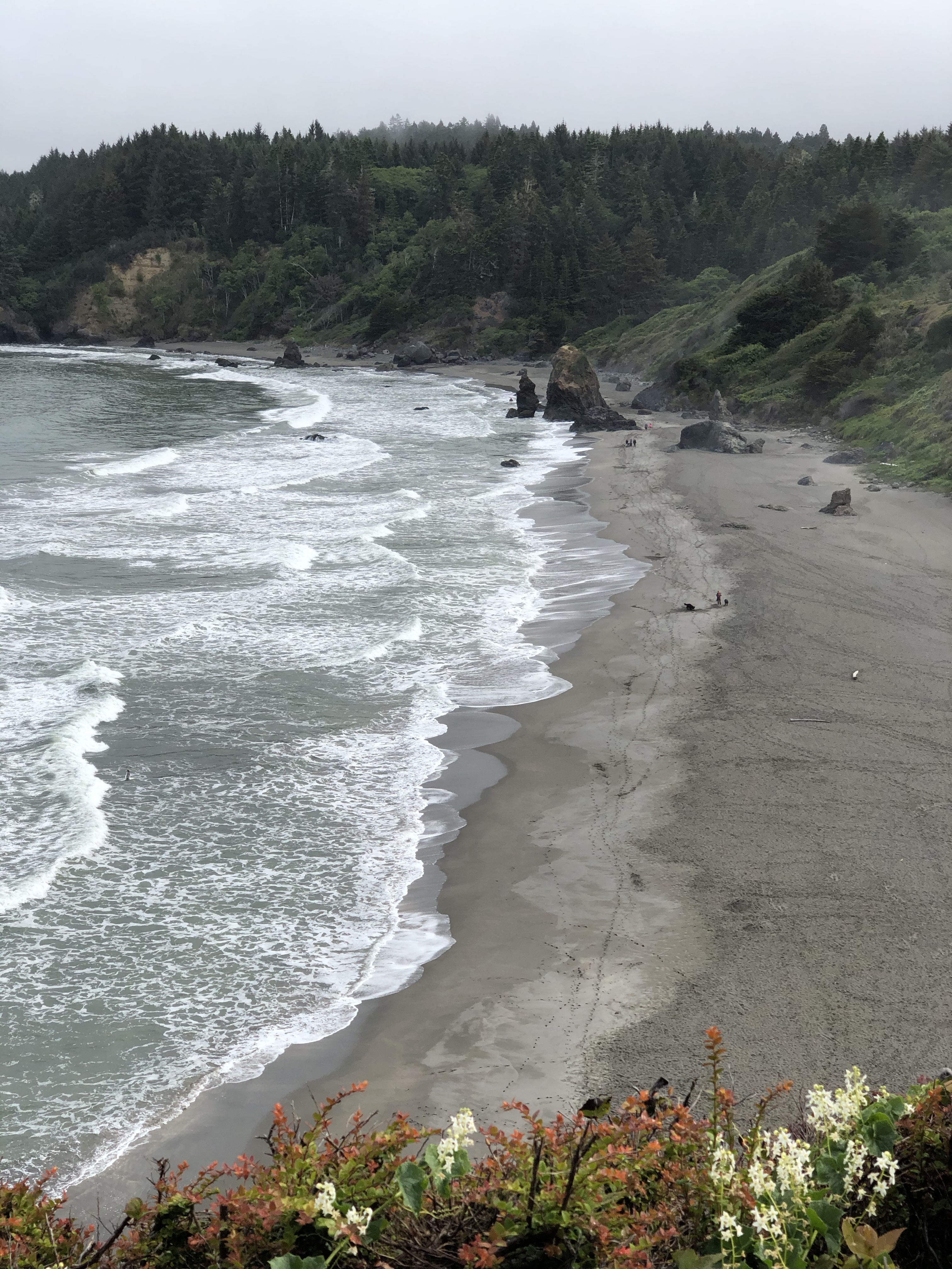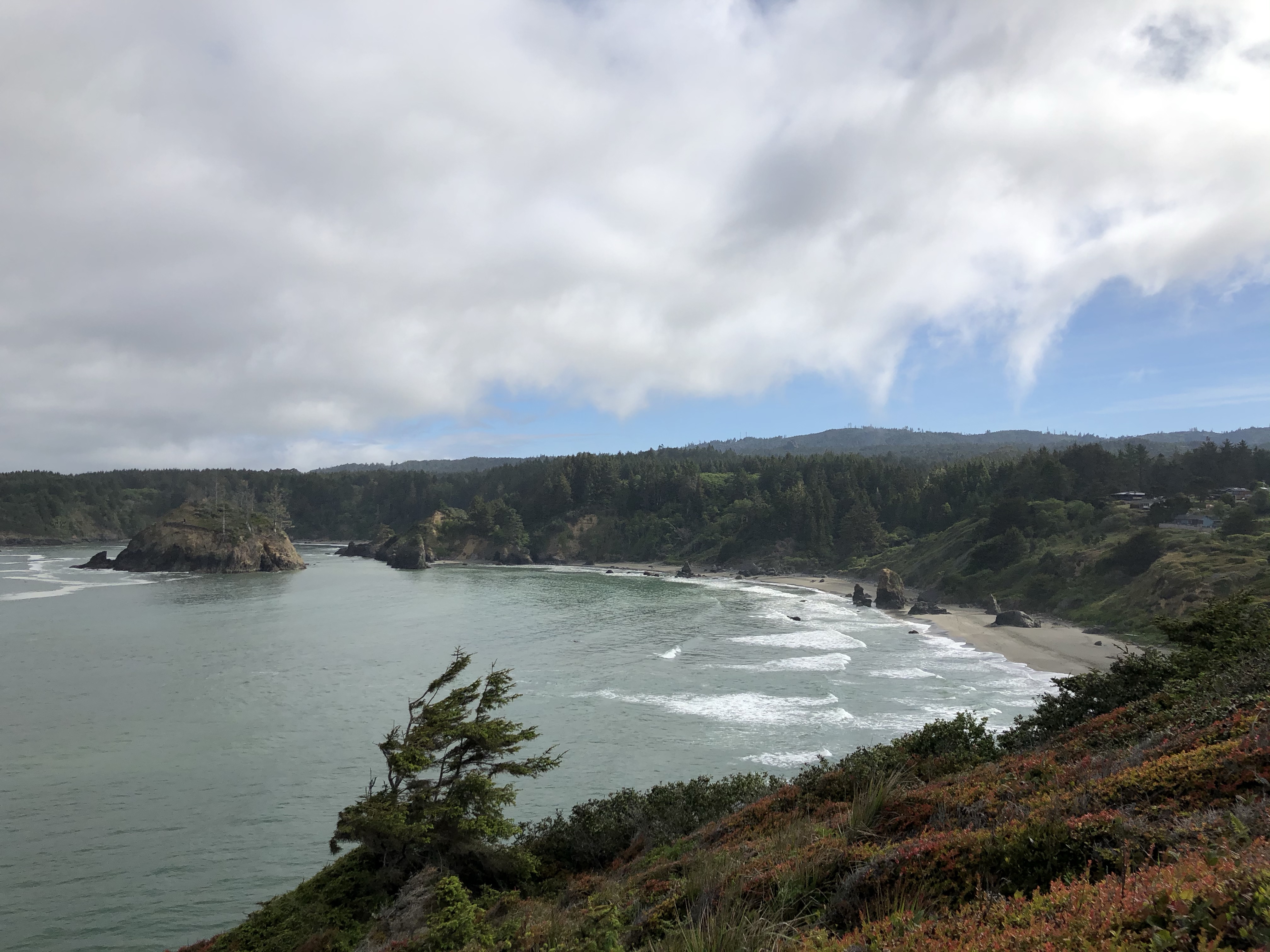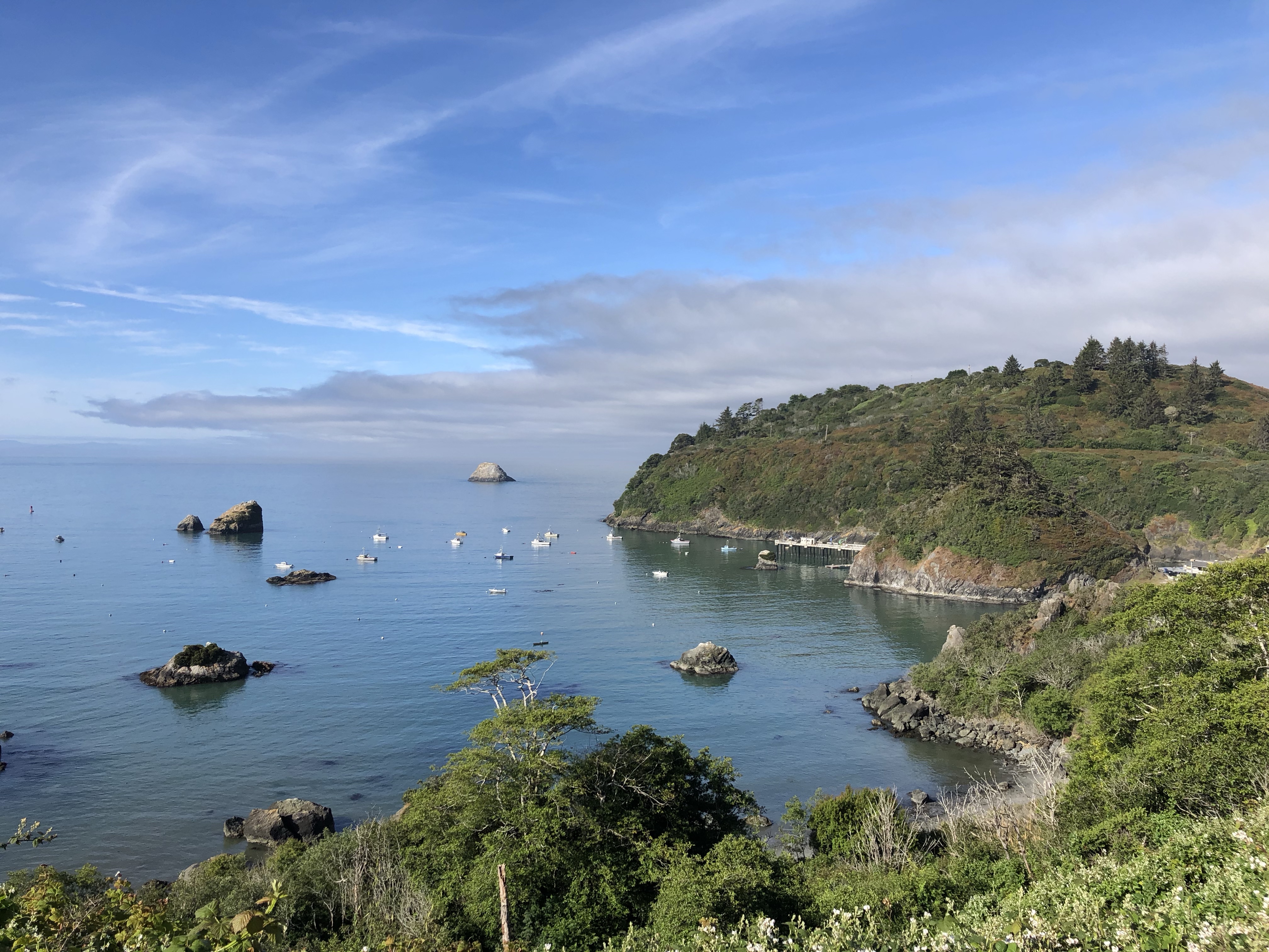 Locally our daily weather can vary up and down the coast. It can be sunny in Trinidad and foggy or overcast in Eureka just 20 miles south. The reverse can also be true. Layering your clothing is your best defense. On yesterday’s walk, I wore a sweatshirt under a windbreaker. The same time this morning I wore a short sleeve T-shirt under a lightweight cotton hoodie with no windbreaker. It can varies daily and throughout the day.