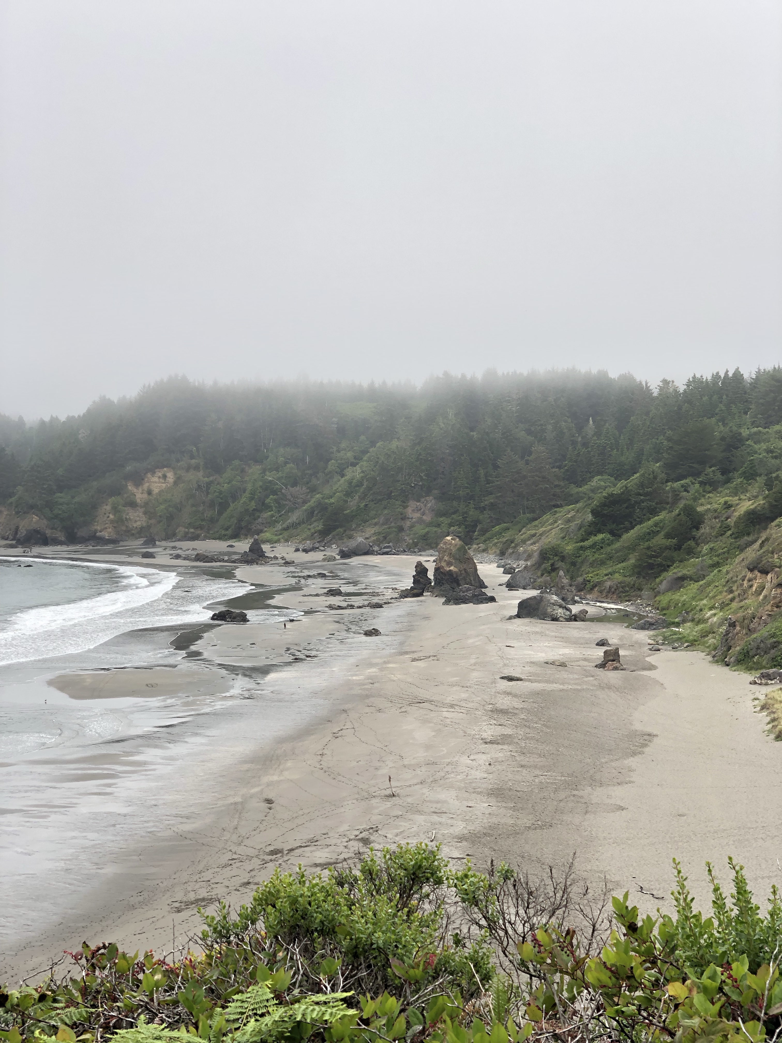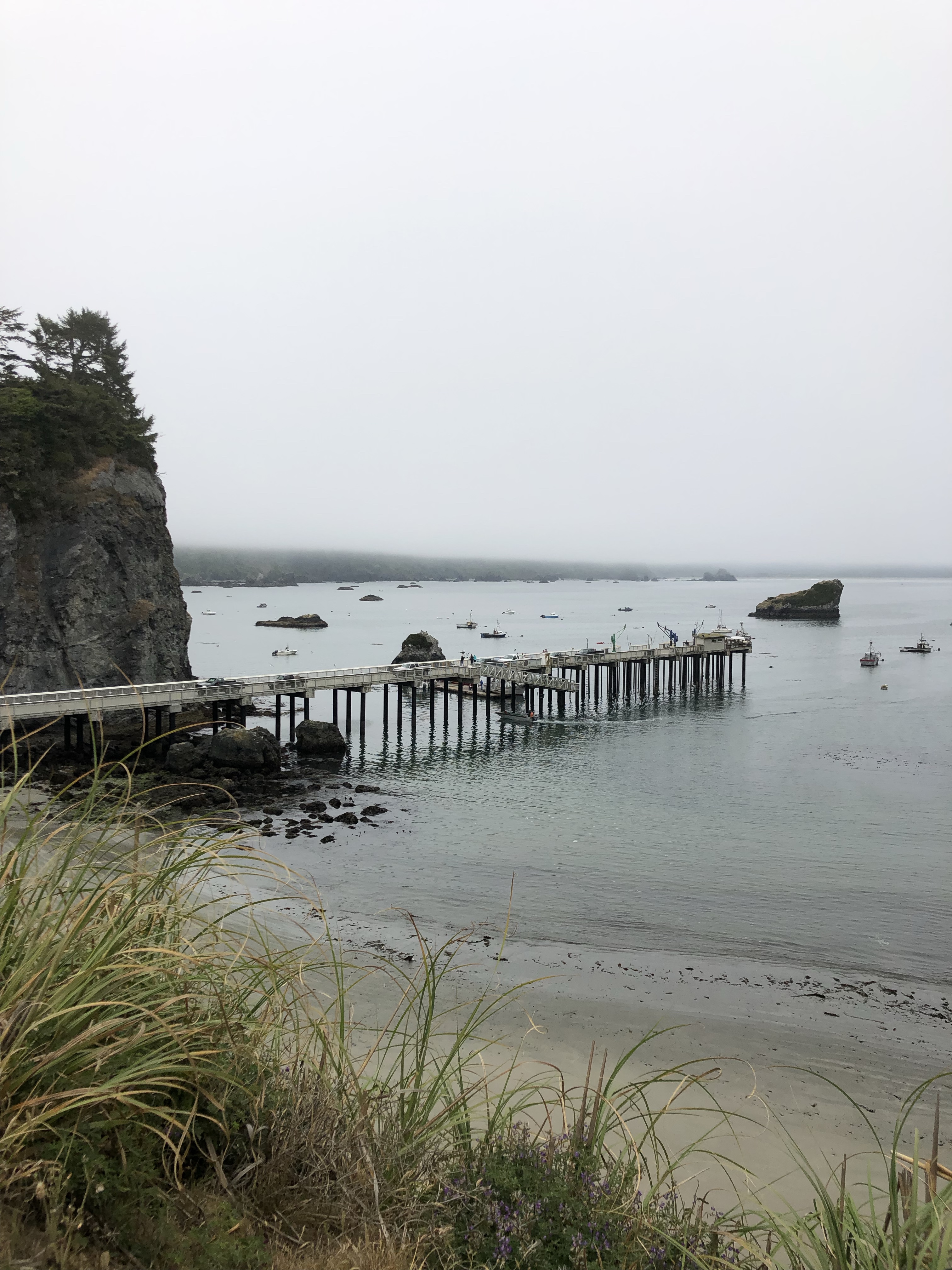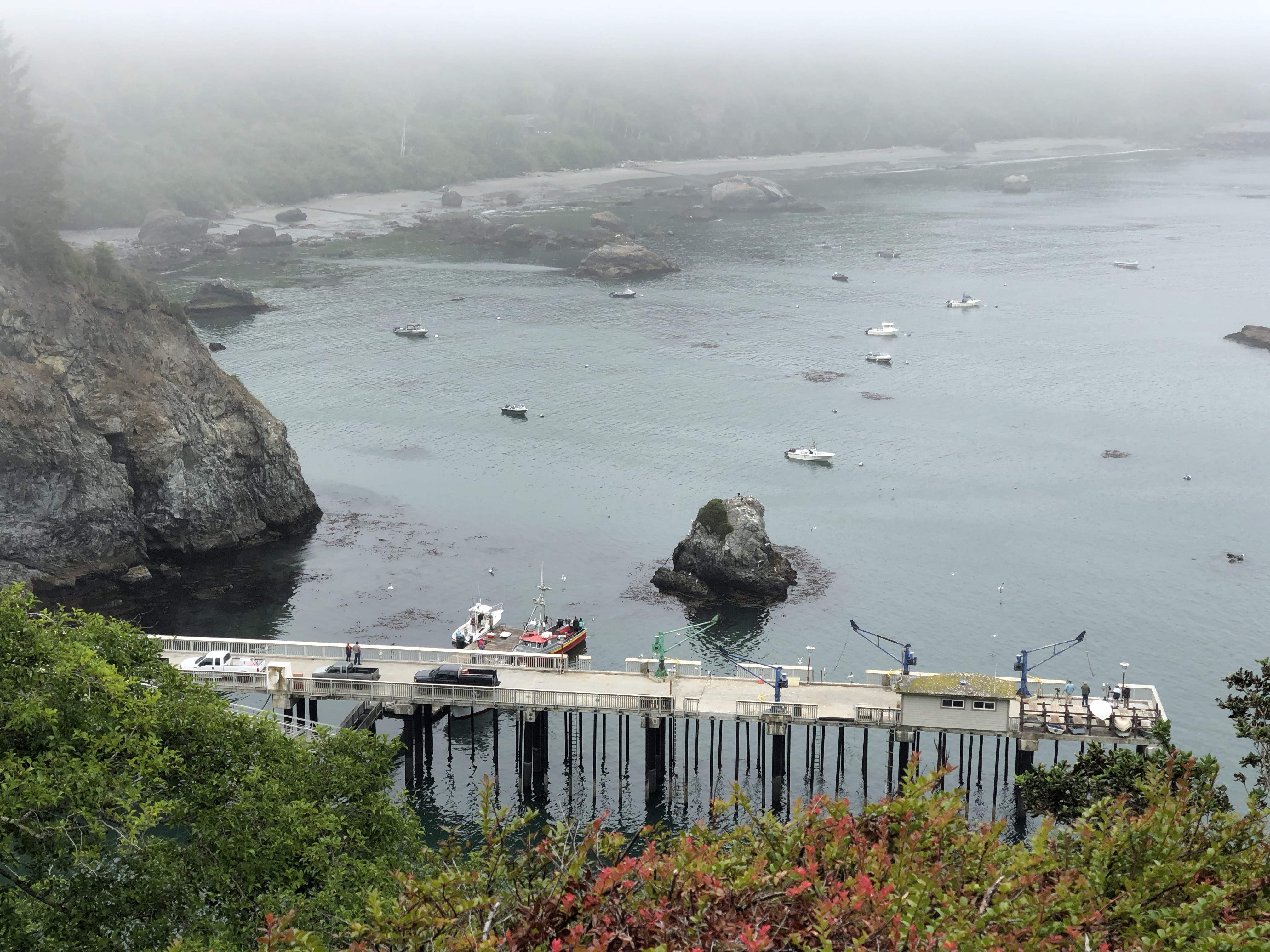 There were reputable sightings this morning of a horned puffin which brought some birders down to the Pier. I missed that viewing opportunity but may have inadvertently captured it in a pic. Watching from above on Trinidad Head I saw a flock of gulls going nuts by the Pier. I initially assumed it was due to the nearby fishing boats. I tried to photograph the gulls in action; if you zoom in and look closely at my bottom Pier pic you can see them. It looks like the puffin might be one of the two black birds sitting on the rock in that image. It’s times like this I regret not using a “real” camera. However, with the marine layer in place I think I did get some great cell phone pics. Enjoy! #iliketowalk #trinidadcalifornia #humboldt #humboldtcounty