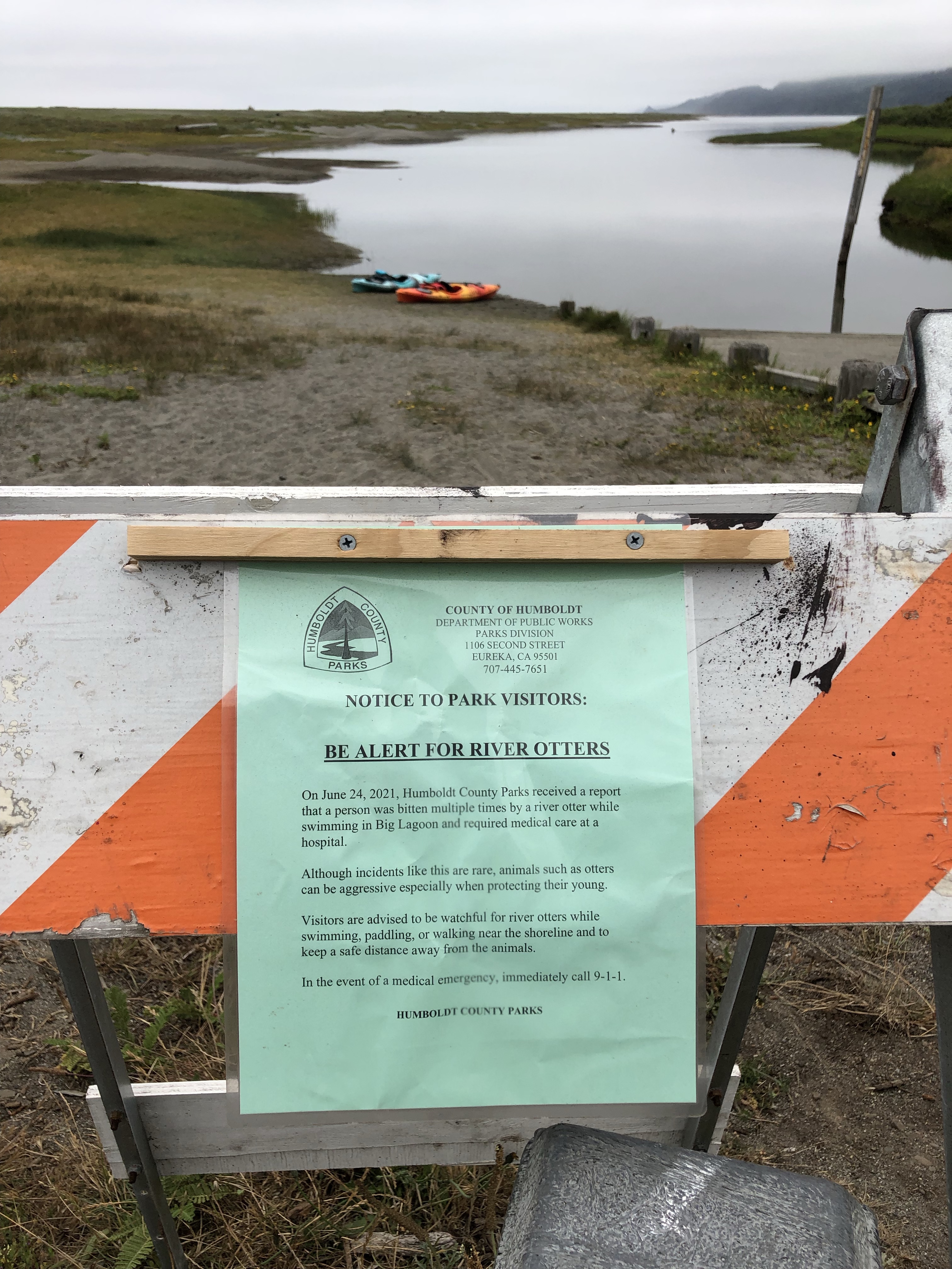 As we unloaded our gear onto the beach we watched a river otter family cruise thru the nearby lagoon. Such a great start to the morning! Otters are cute little animals with what looks like a playful spirit. In actuality they can be very nasty and will bite if provoked. This is their child rearing season and so visitor beware; they will defend their young if they perceive a threat. A few weeks ago this was proven true when a local swimmer was bitten several times (through her wetsuit). The details of just how and why this happened are unclear but to be safe the poor woman went thru rabies treatment. The county posted a warning sign at the boat lunch.