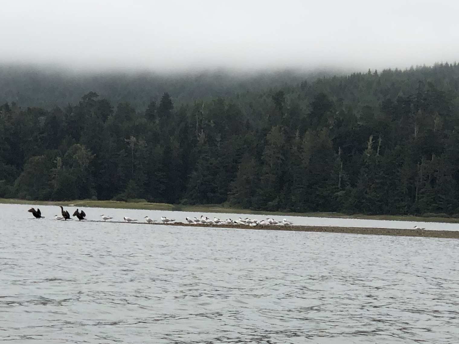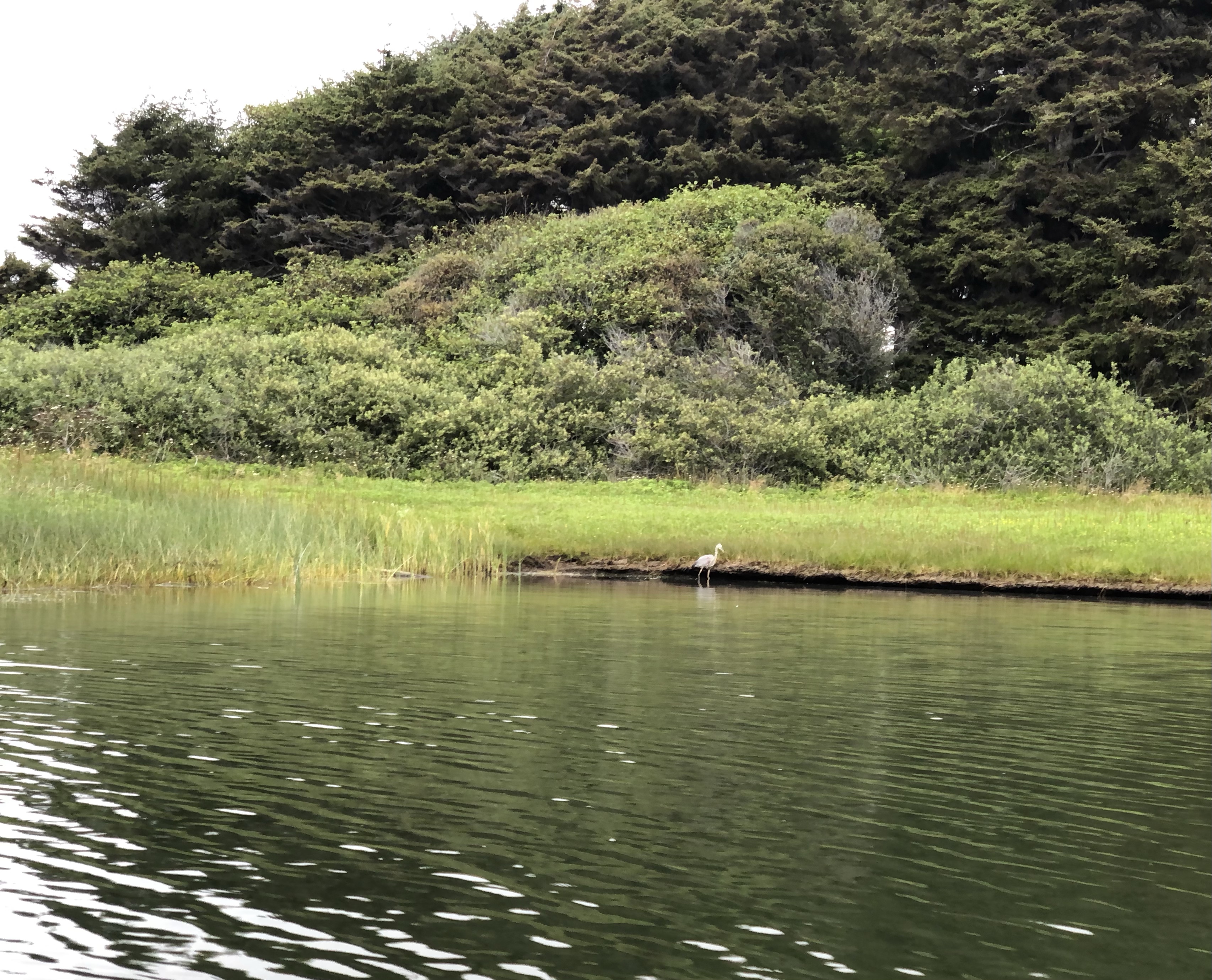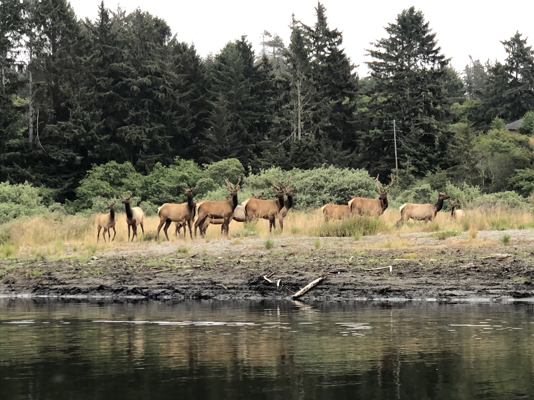 We launched our boats at 8:22 am with the intent of meandering up Maple Creek. It’s always a potluck type of experience; it can be very quiet with just an array of small birds in the tules or you can get very lucky. Let’s just say, our month was made. As we came around the bend a herd of Roosevelt elk were lounging nearby. A group of young males (small racks) and adult females watched as we very cautiously approached. Elk are not afraid of water and will defend themselves if they perceive a threat. We held back as they mutually checked us out, and then slowly strolled off into the nearby meadow. It was absolutely COOL! These kind of moments are a gift.