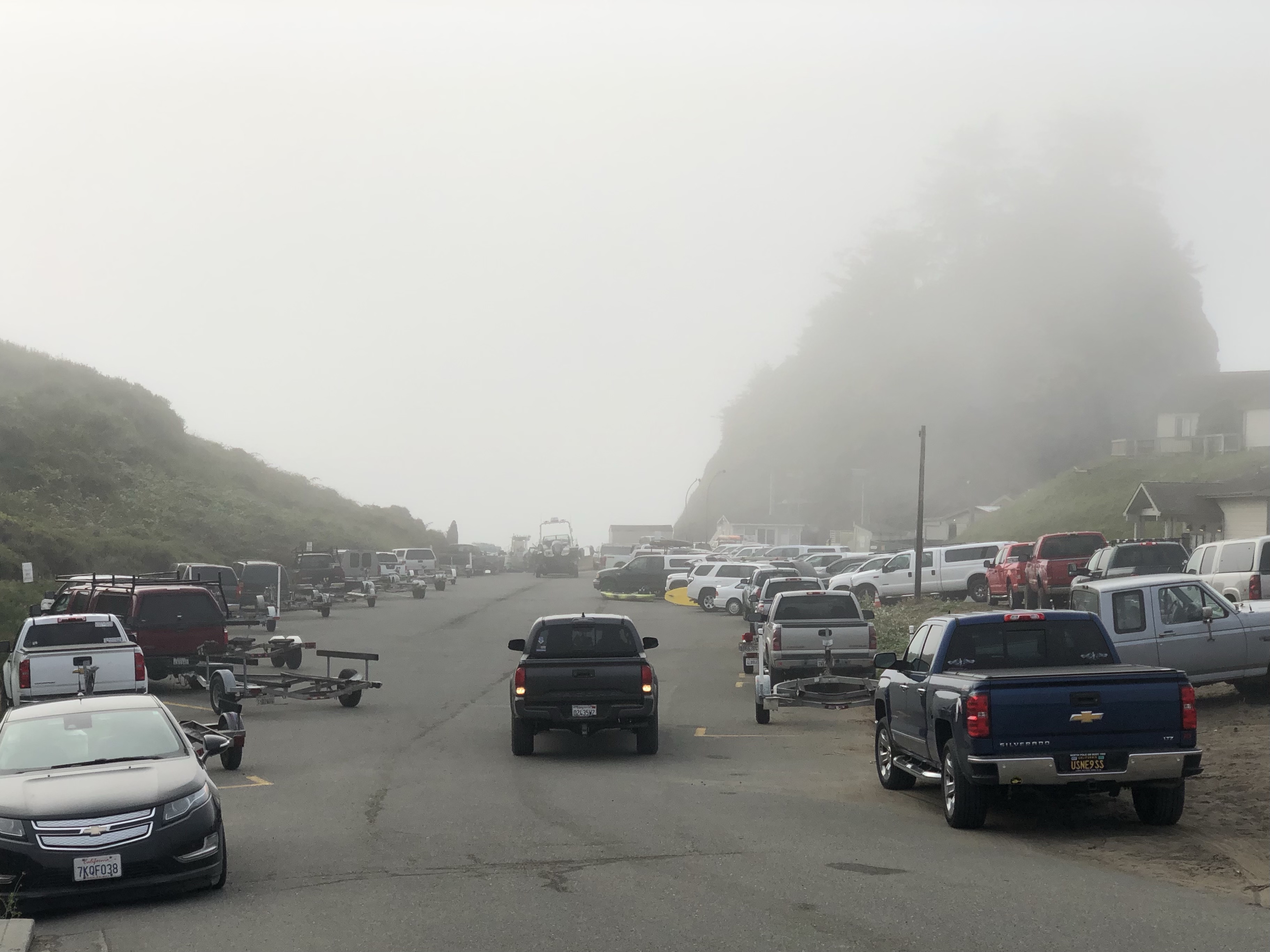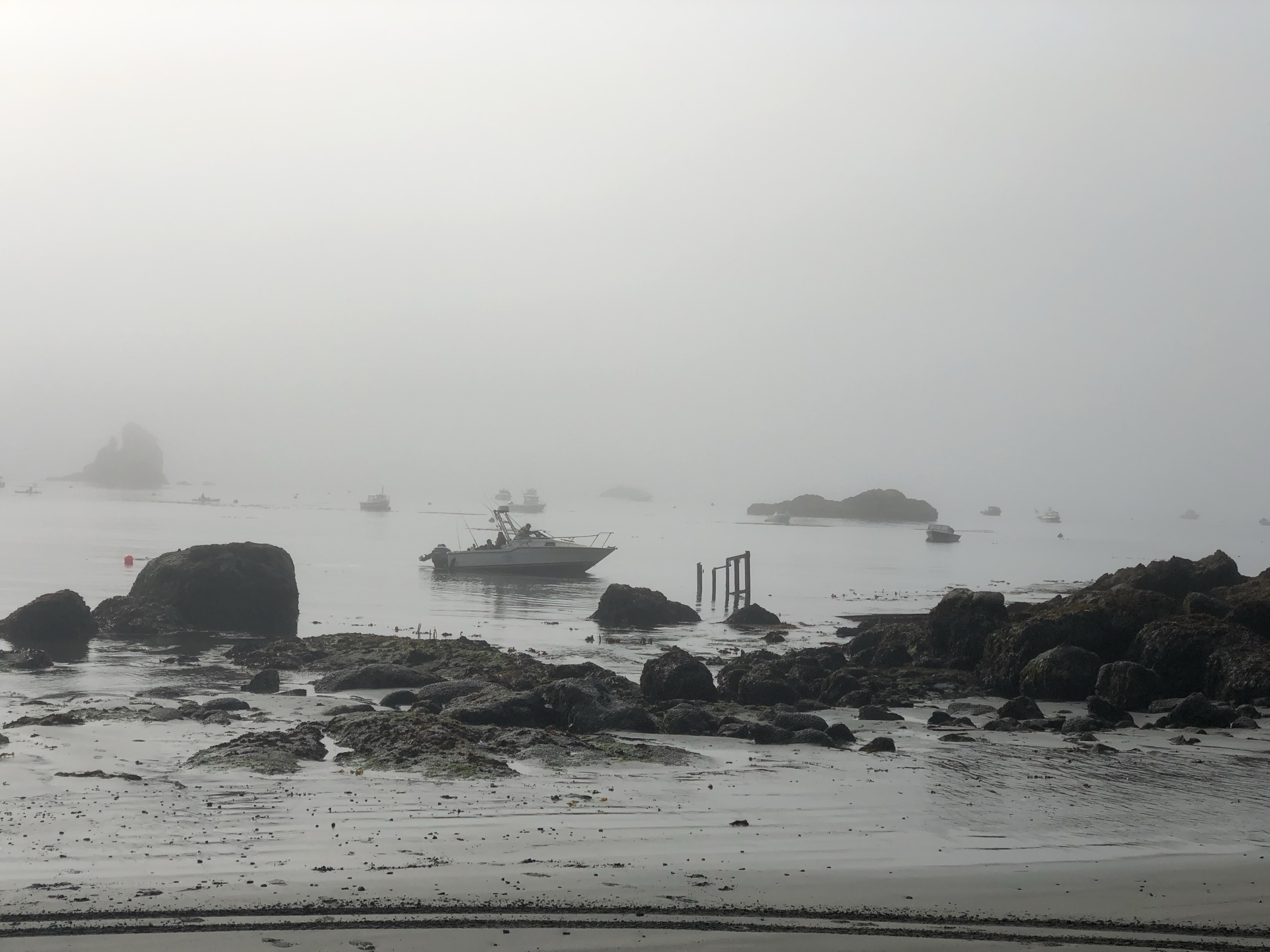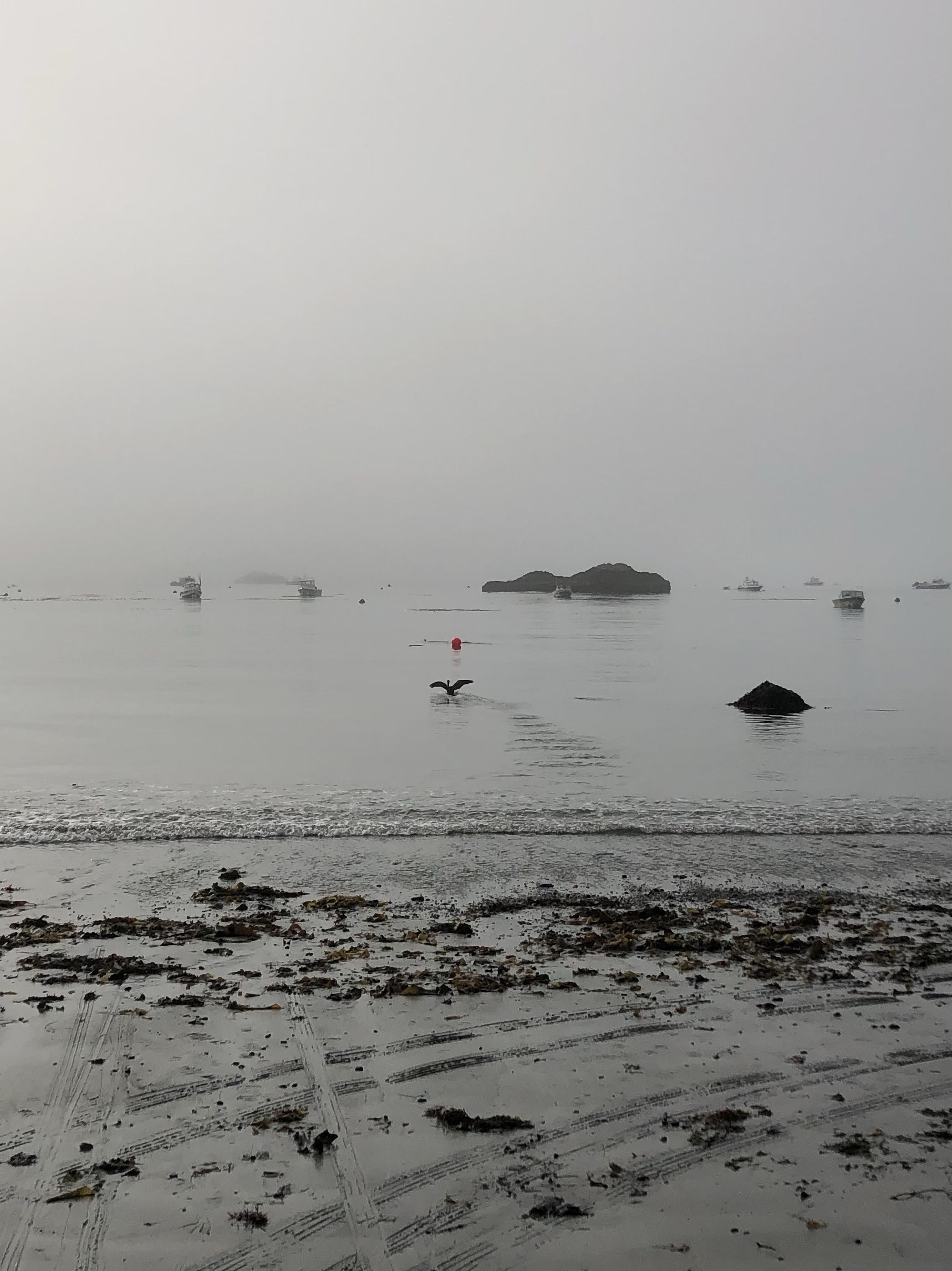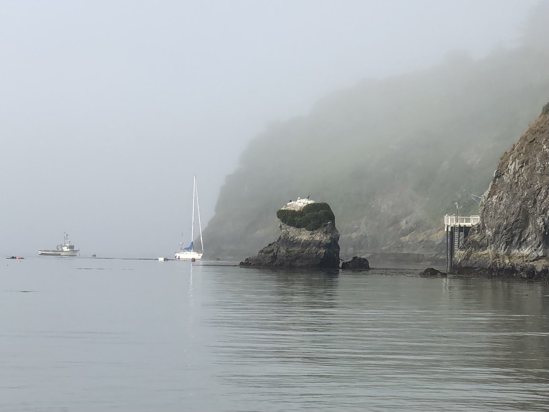 Crazy, crazy morning on Trinidad Pier and in/around the Harbor. Baxter and I walked down the hill to do our usual spin around the Headland and beach combing on Launcher Beach, to find a very busy parking lot being supervised by Rancheria staff. One guy actually tried to drop his truck & trailer in front of the main State Beach access because other immediate parking was unavailable. It’s the tail end of a not so great salmon season so this is one of last chances to legally catch the big one. This morning was a minus tide with the bay flat as a pancake. Another morning I wished I had chosen to kayak. Sigh…