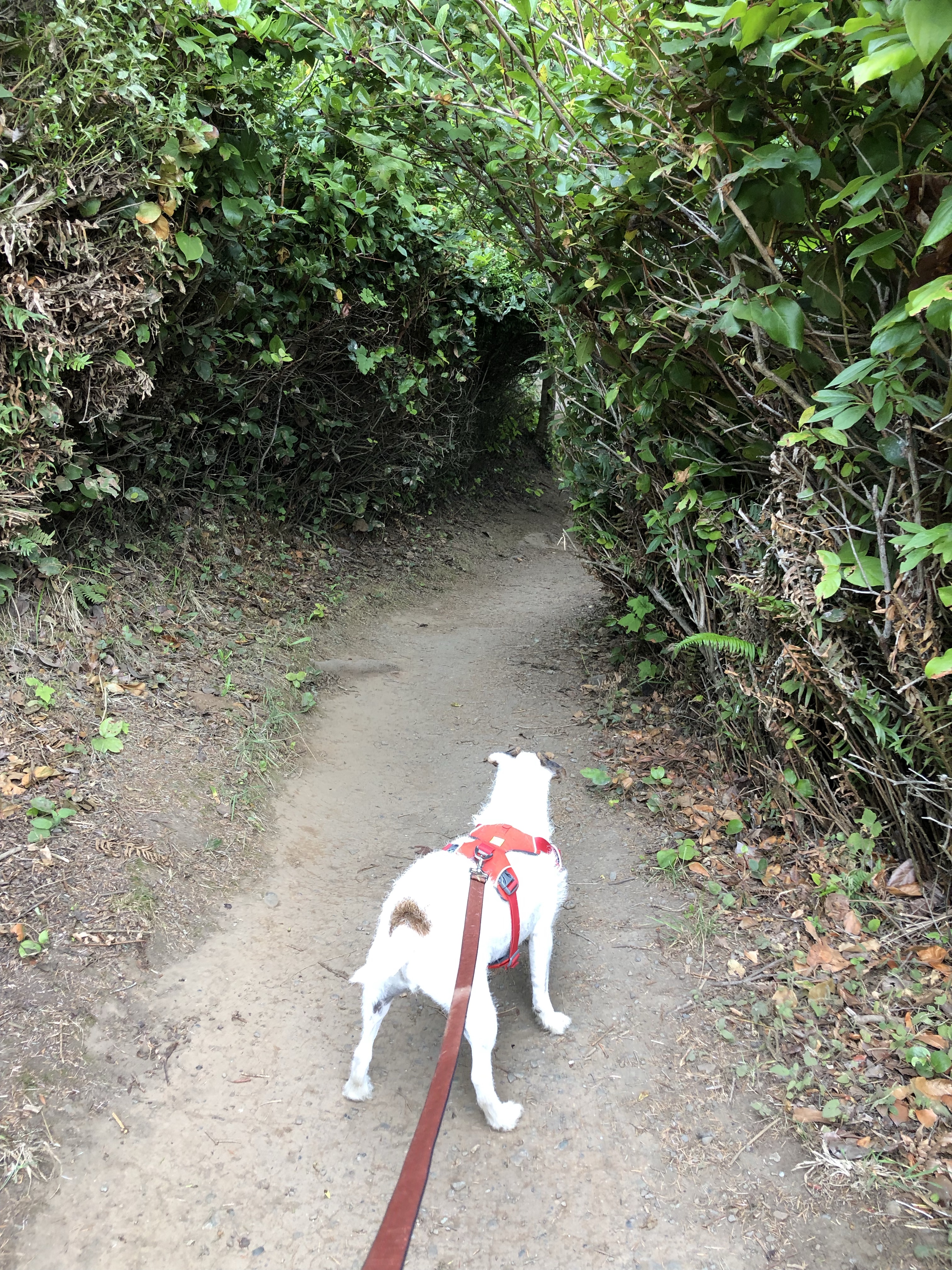 After a 10 day break Baxter and I are back on the morning trail walk. This time of year Mondays are wonderful; we had the trail to ourselves. No off-leash dogs or people walking the trail while yakking on their cell phones. A nice, quiet serine morning on the trail with a little beach combing on Launcher Beach.
