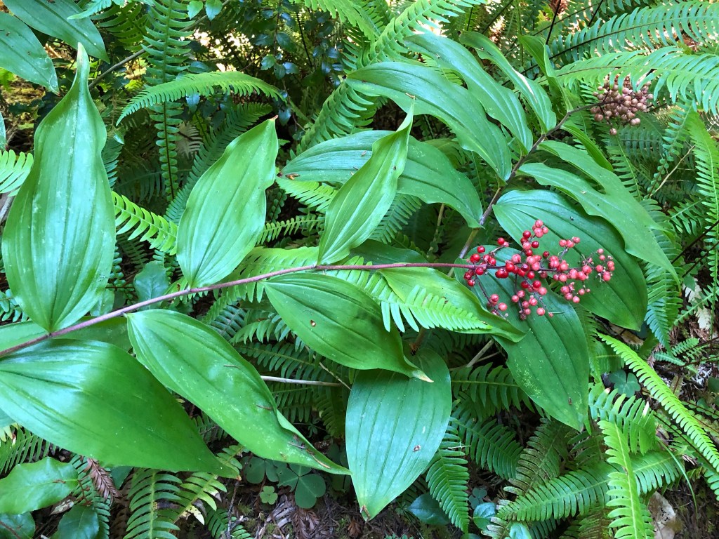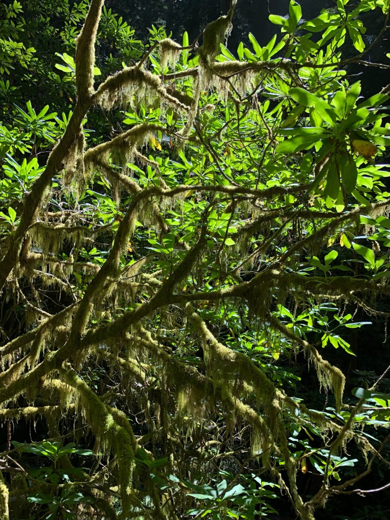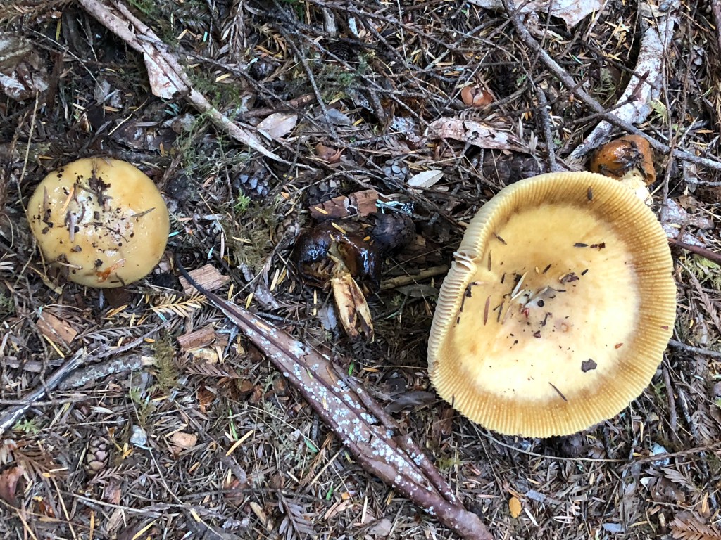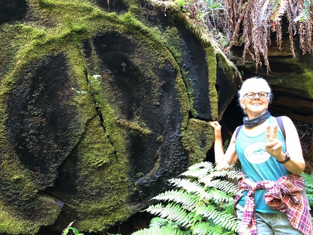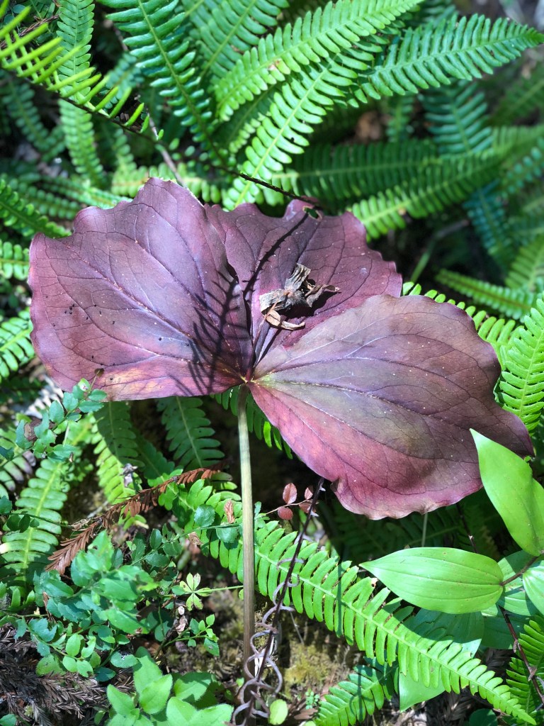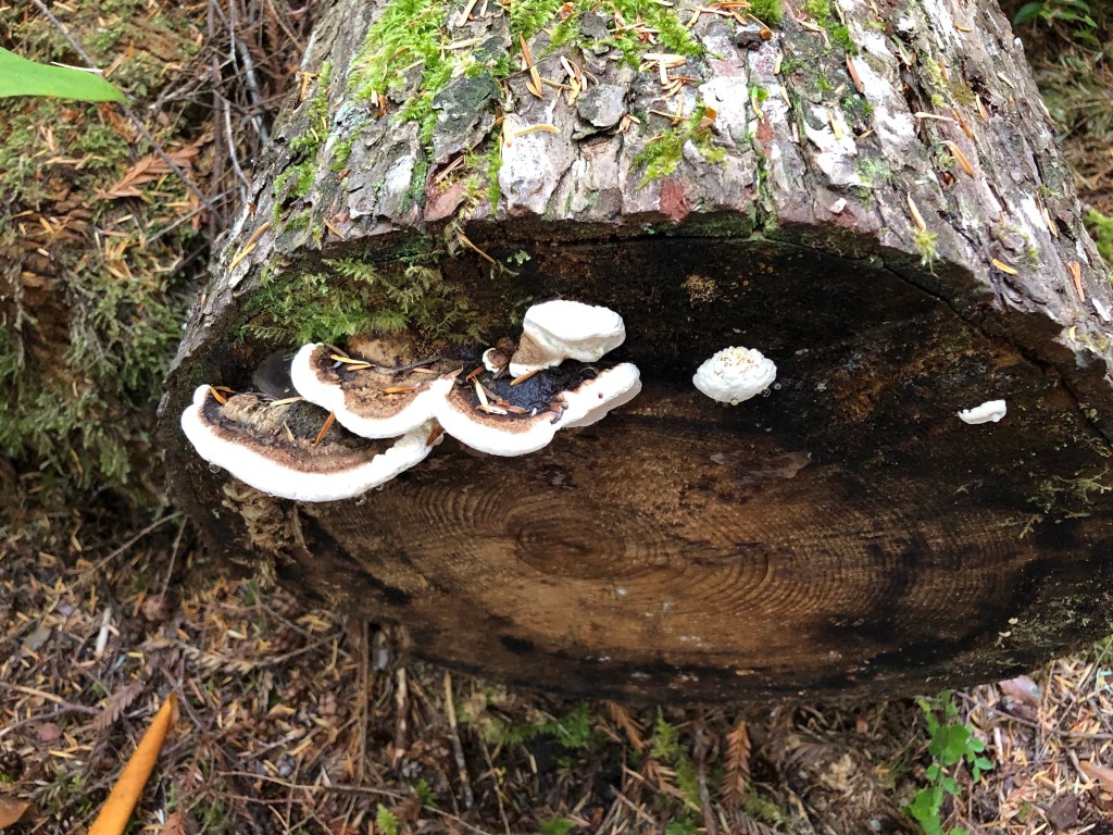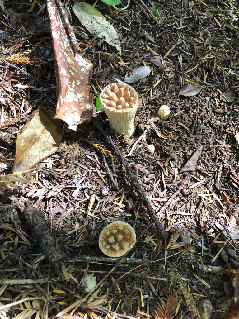 Mushroom season has started so for today’s walk my friend Sara and I headed up to the park. Just 20 miles north of us is Redwood National and State Parks. One of my favorite trails within the park is Hope Creek which is located within Prairie Creek State Park and is an approximate 4 mile loop that makes a 600 foot elevation gain. The trail is heavily forested and features a lot of trillium and other native plants. Today’s trek was my third time this year hiking the trail. It’s a beautiful walk not overrun with other hikers and today we had the trail to ourselves. There are lots of Rhododendron on this trail so I plan to come back in February or March to see them in peak bloom.