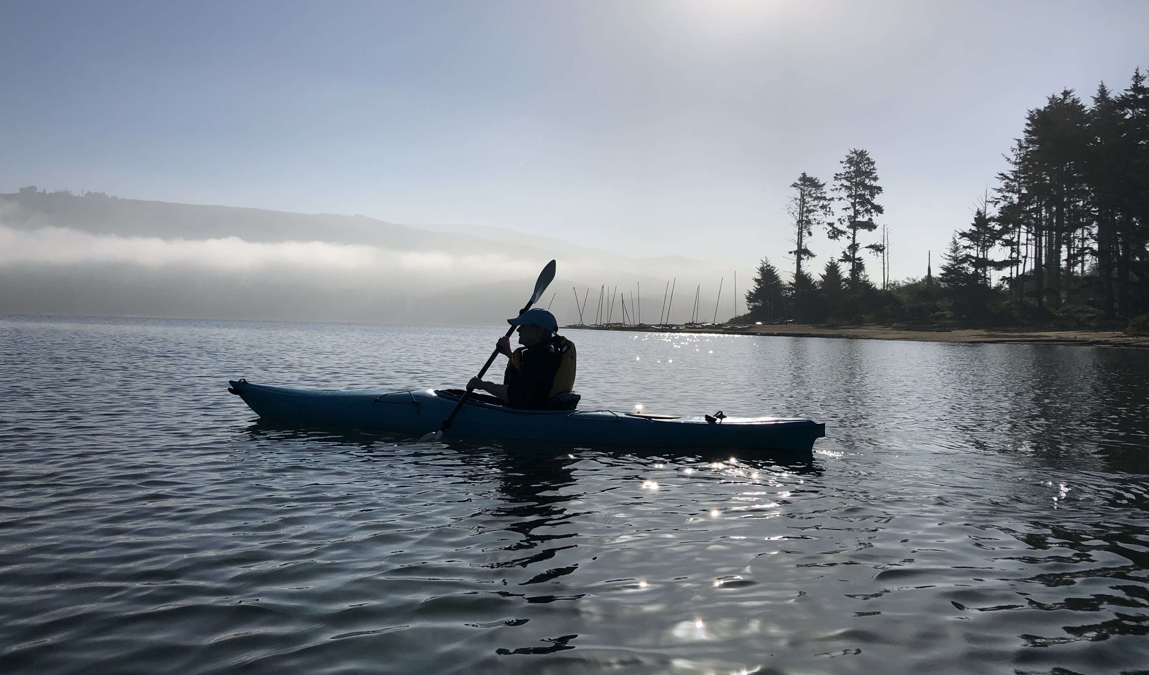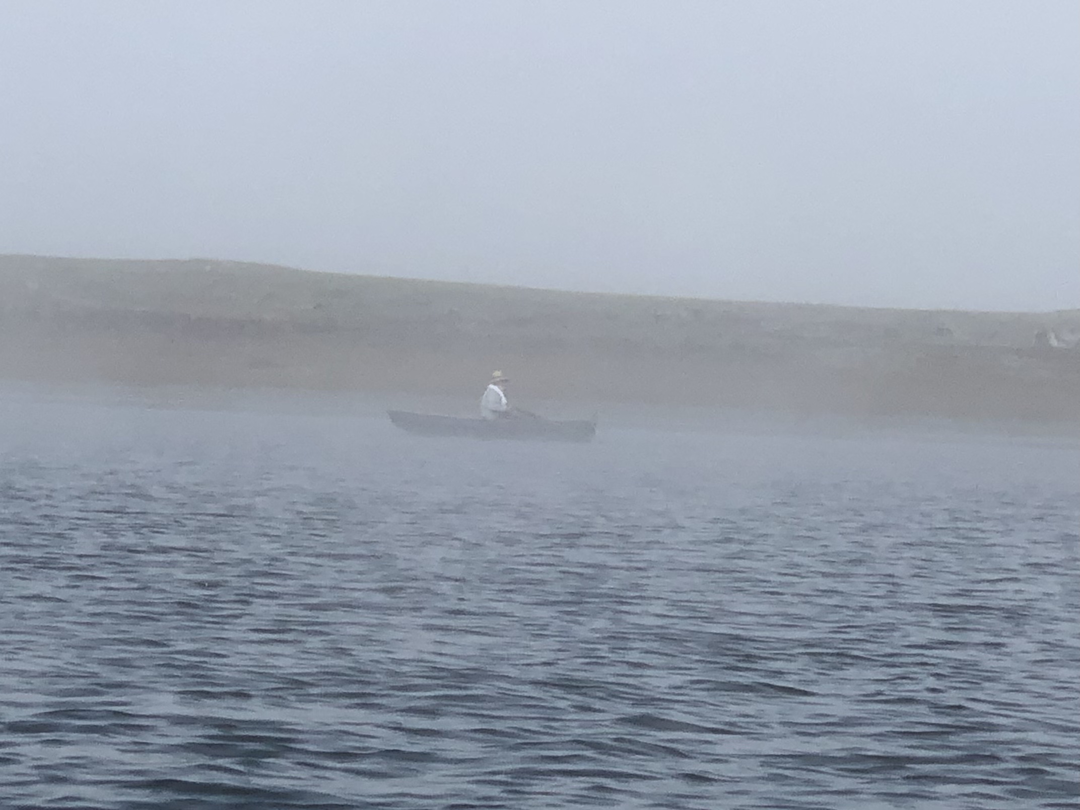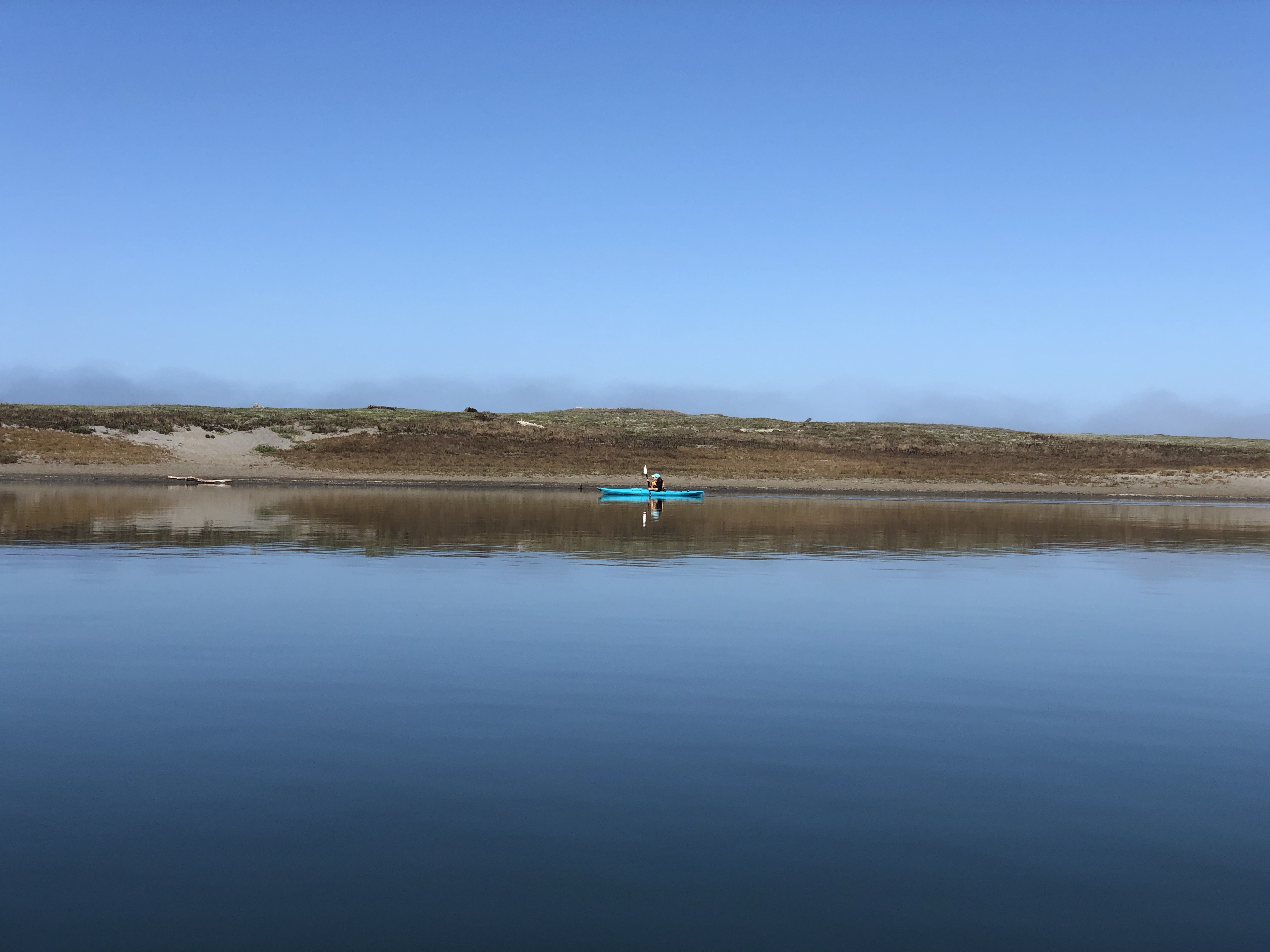 Instead of taking a walk, I went kayaking on Big Lagoon this morning with my friend Jackie. What started out as heavy fog turned into a gorgeous day with some episodes of pancake flat water. It was an awesome 2.5 hr paddle, heading north parallel to the spit, while observing a large group of coastal birds. Maple Creek is too shallow at this point to kayak so plan to hold that one in reserve until after the rainy season starts.