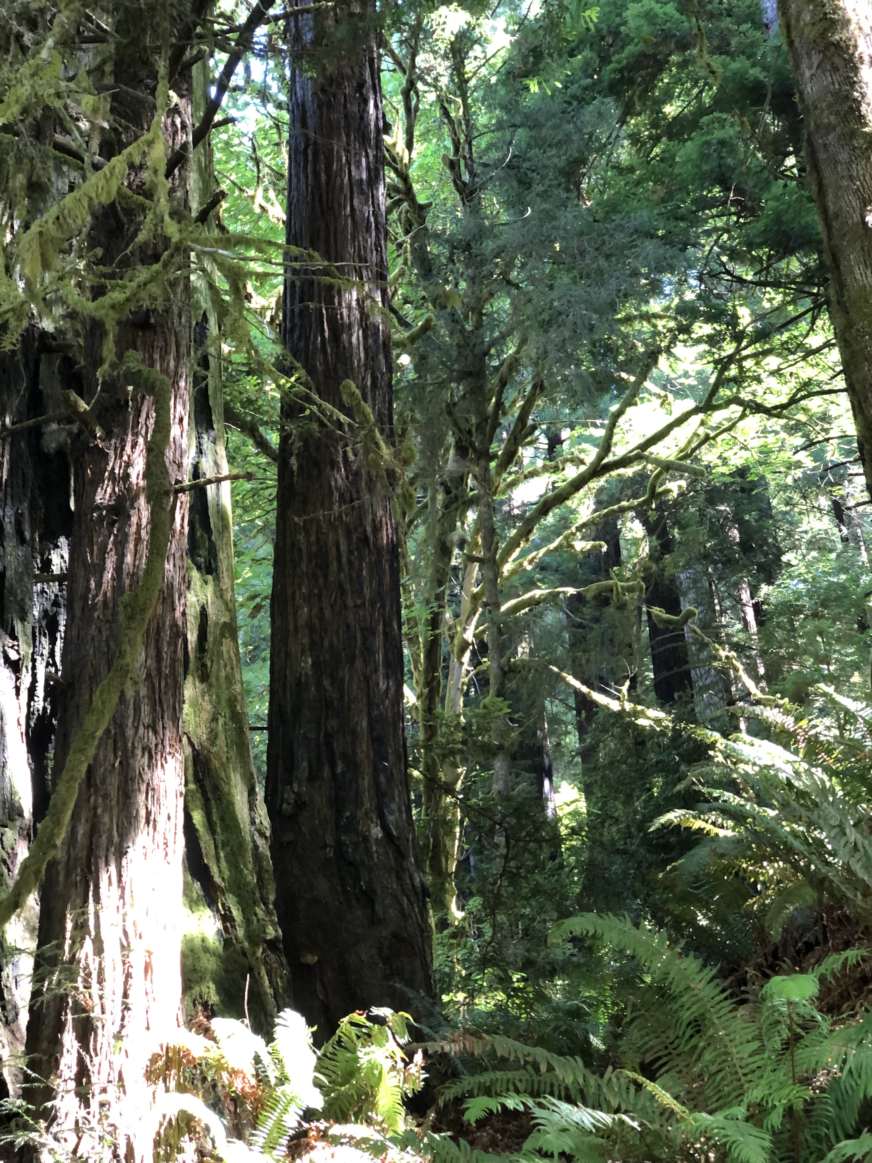 Today’s walk took me into Redwood National and State Parks on the trail out to Redwood Creek. A first for me and I will be back! I hear Trillium season is amazing along this trail. My friend Sara and I got a late start so we just walked 5 of the 15 mile RT trail. Lots of frogs on the creek. We walked past an NPS work crew and only saw two other people during our visit; one in the parking lot and one on the creek. Glorious!