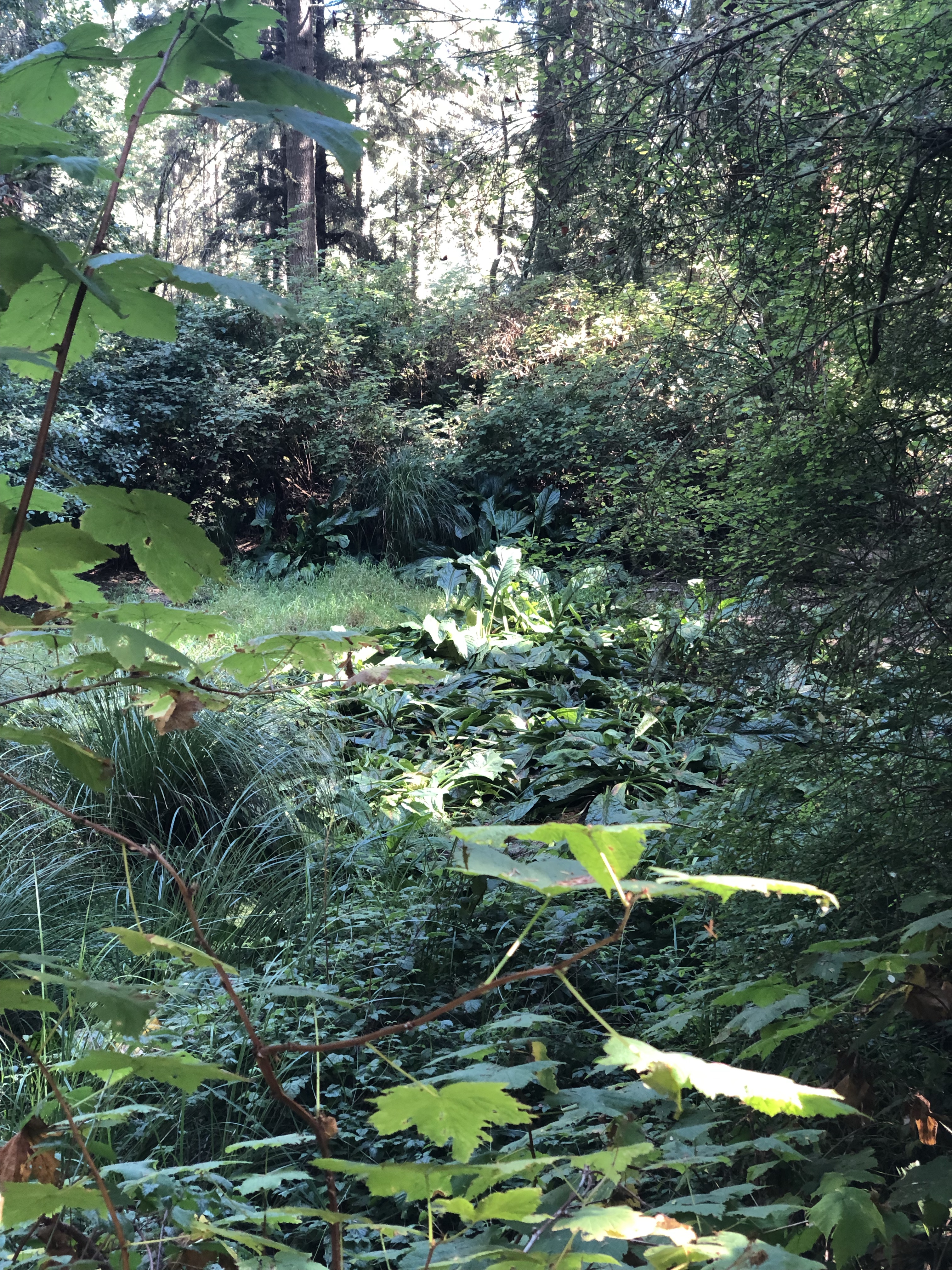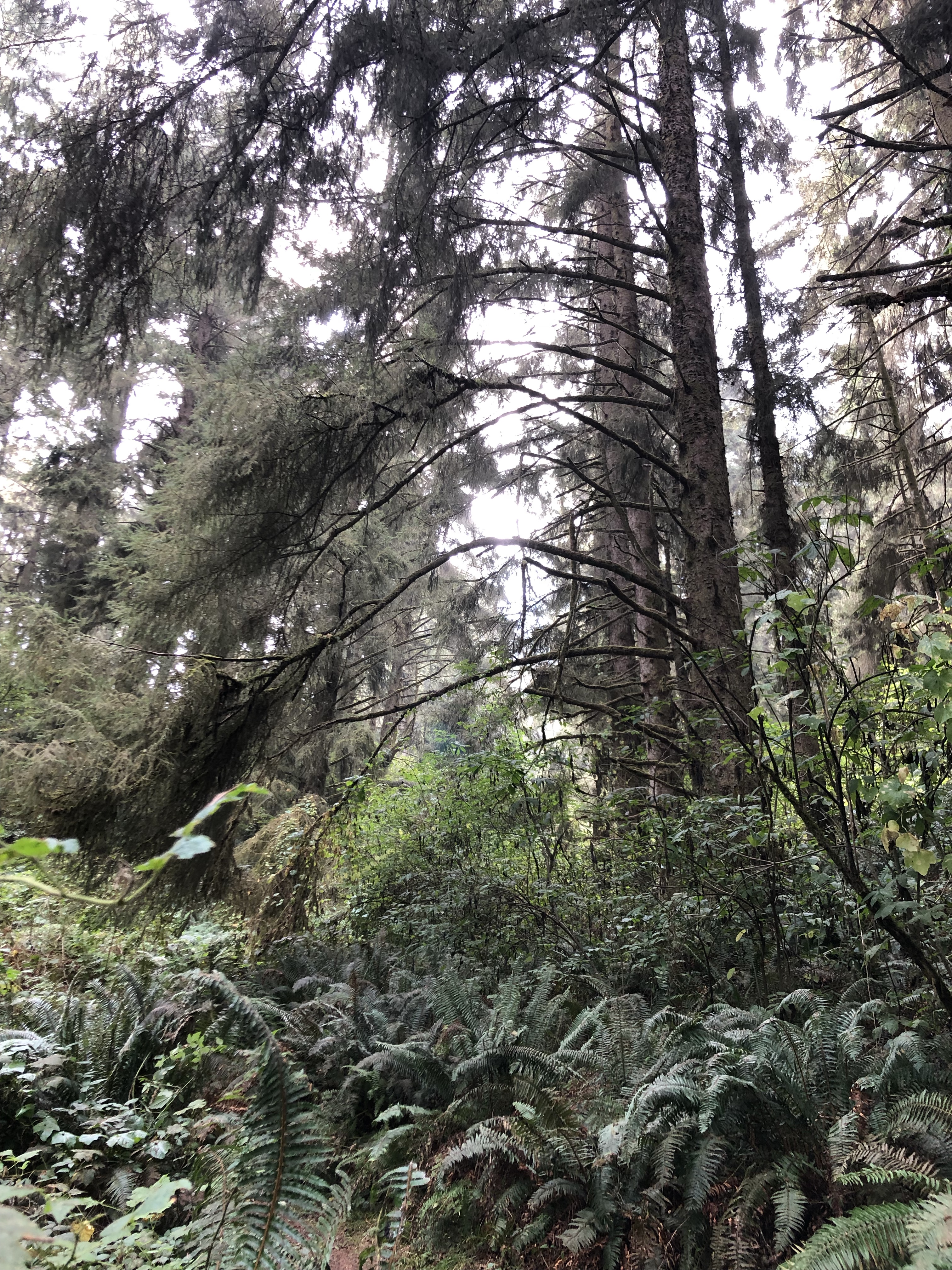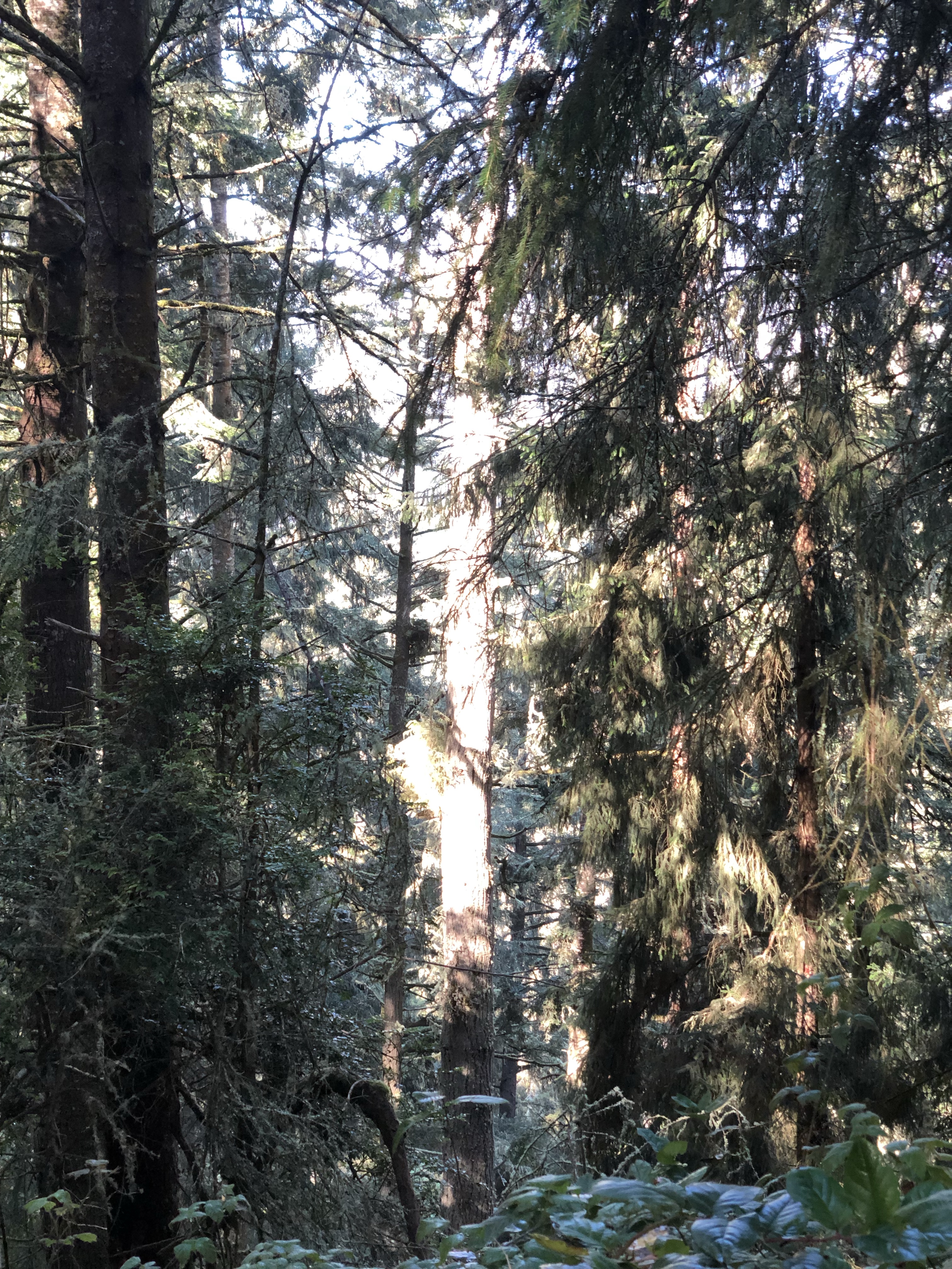 Today my friend Sara and I checked out a new to me series of trails adjacent to the Victorian themed city of Ferndale, CA. Russ Park is a beautiful 110 acre site that is rebounding from the clear-cutting done in the late 19th century that stripped the site of most of its timber resources. A few old growth redwoods remain amongst the spruce and fir forest now standing on site. The location also contains a pond that features one of the most impressive clusters of skunk cabbage I’ve ever seen. A future must do, is an early spring hike when the skunk cabbage will be in bloom.