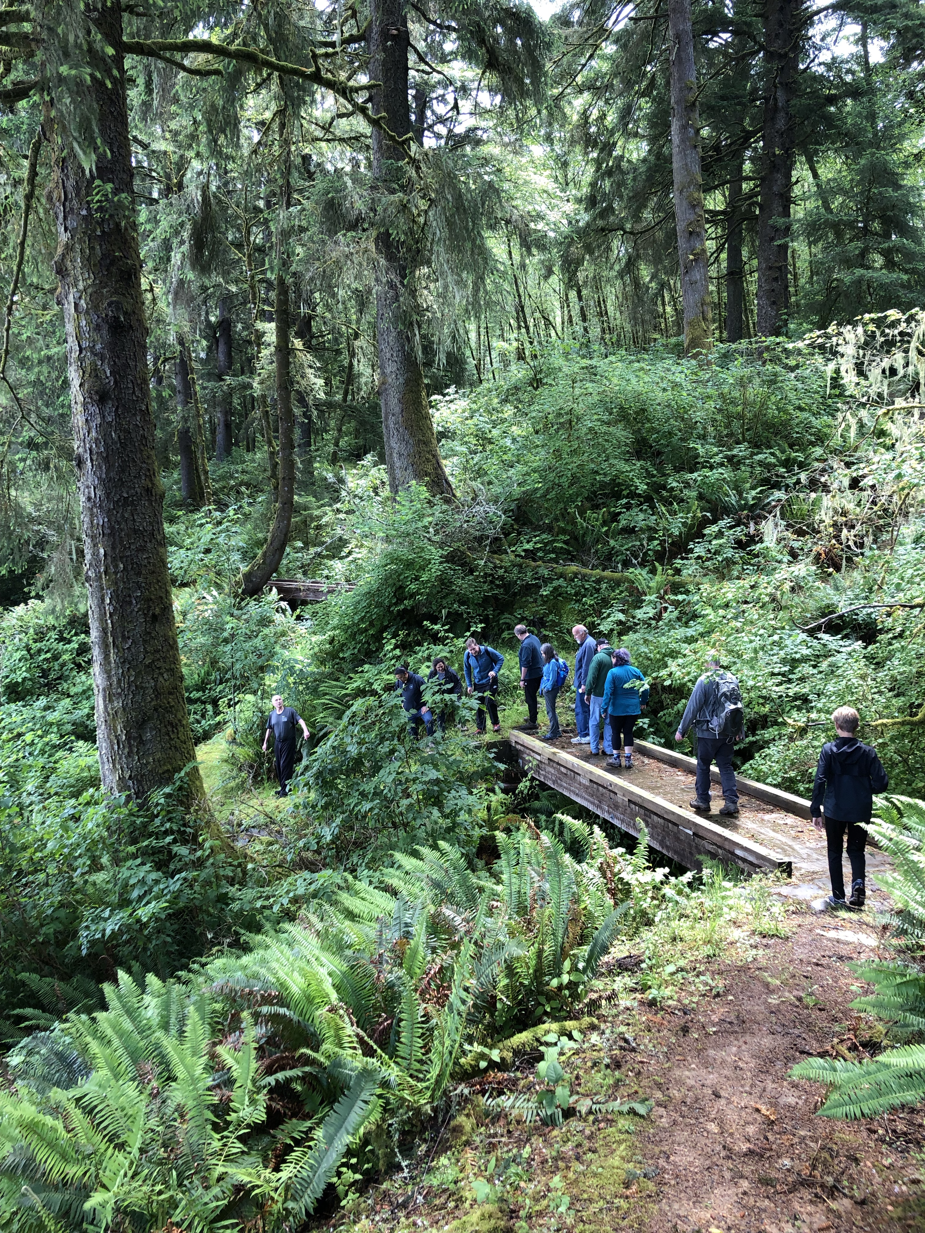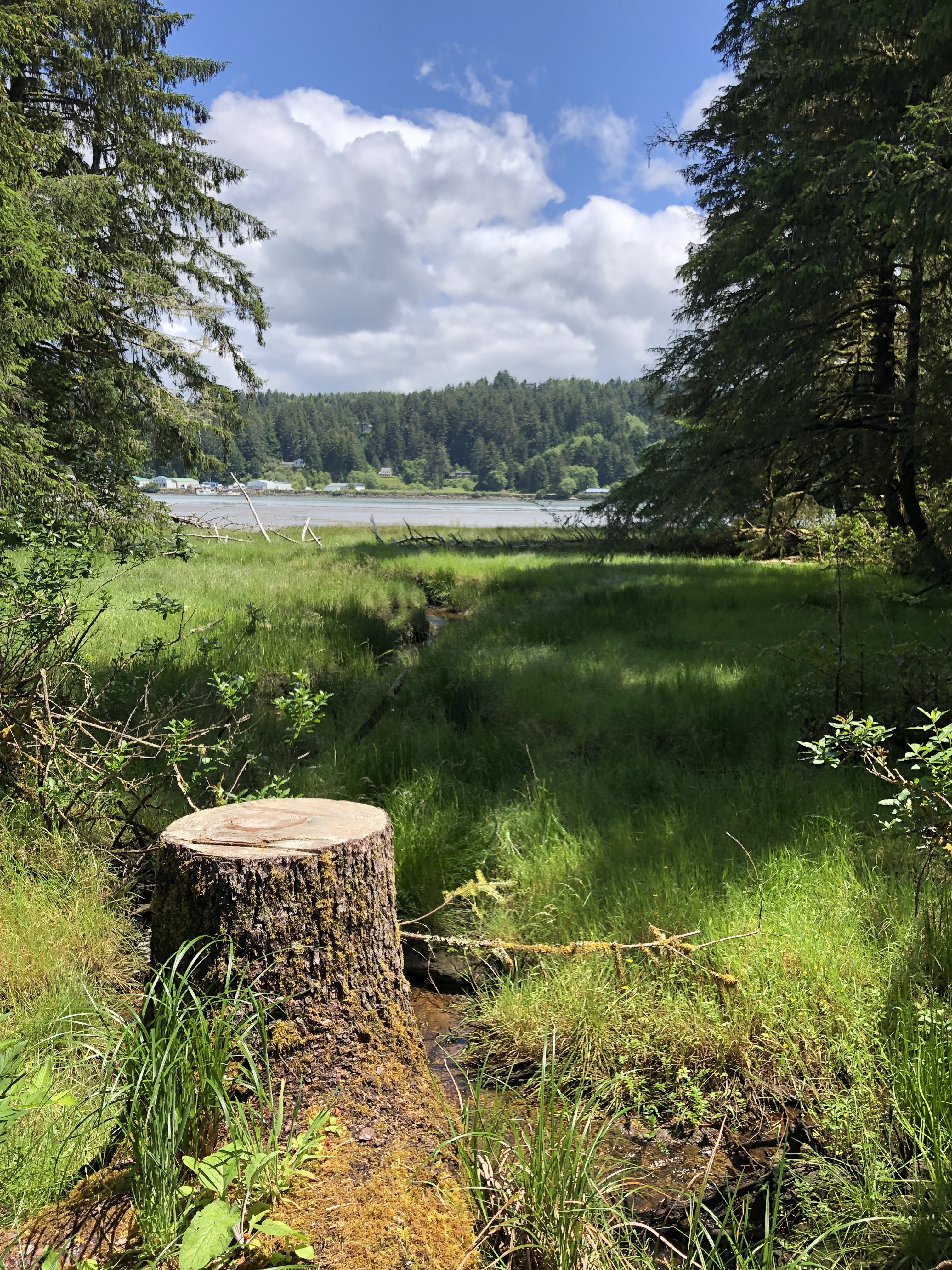 Yesterday I had the very fortunate experience of being invited to participate in a group tour (hike & luncheon) of the Yakona Nature Preserve in Newport, Oregon. Visionary residents JoAnn and Bill Barton have dedicated their personal resources to re-establish and preserve this beautiful 341 acre Spruce forest on a 400 acre peninsula that is surrounded by sloughs and mud flats of Yaquina Bay.