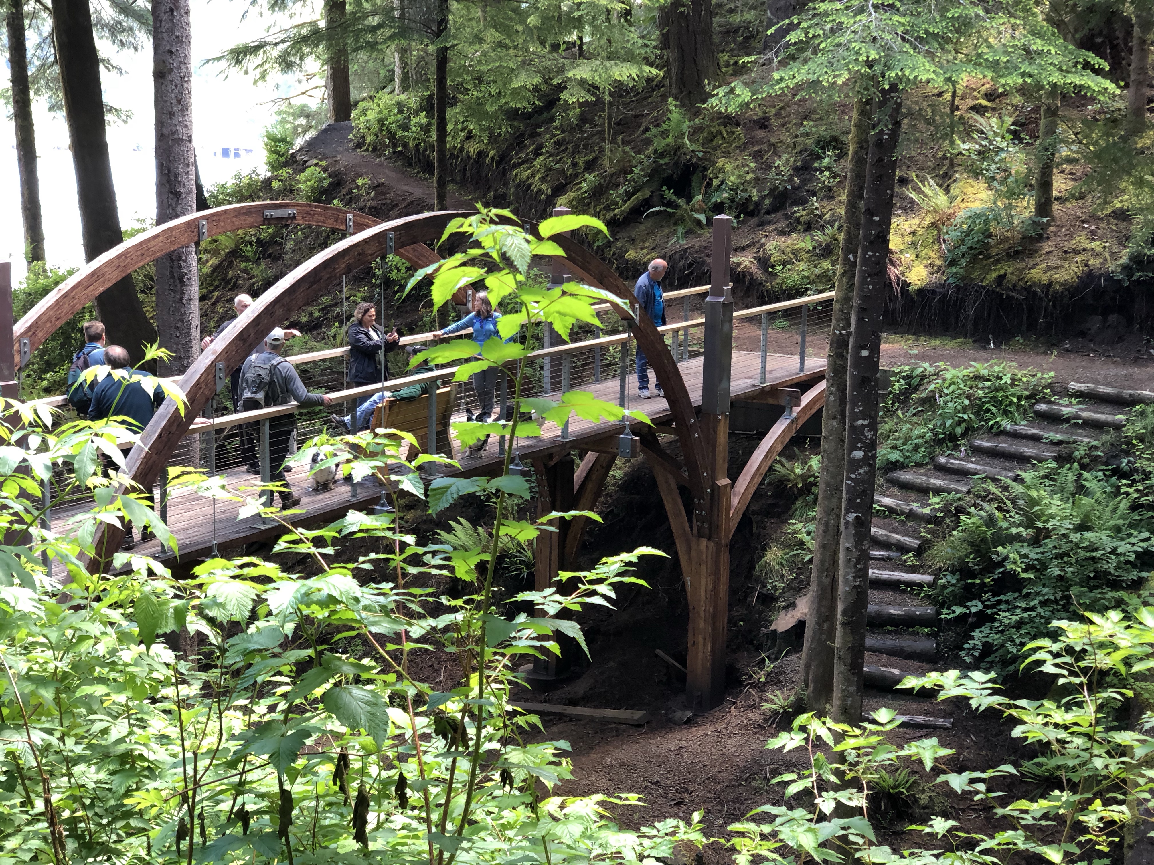 The site has amazing views and one of the coolest cedar lined outhouses I’ve ever seen. There is also a unique memorial to a beloved community member and a wooden bridge that mics Newport’s Yaquina Bay Bridge. I’ve included pics in this post. The preserve has a paid Executive Director who has a fundraising and education background. Future plans include a classroom for K-12 education programs that marry art and science. For more information check out their website at: yakonaoregon.org.