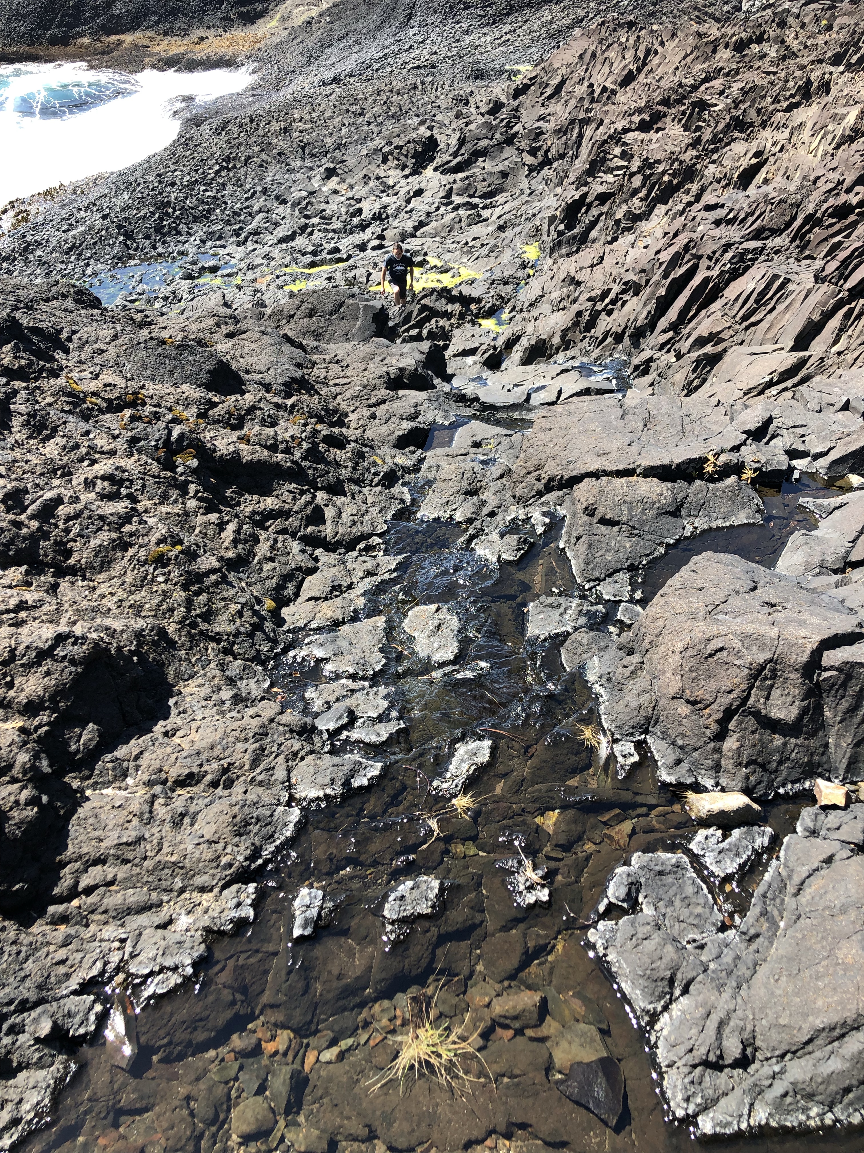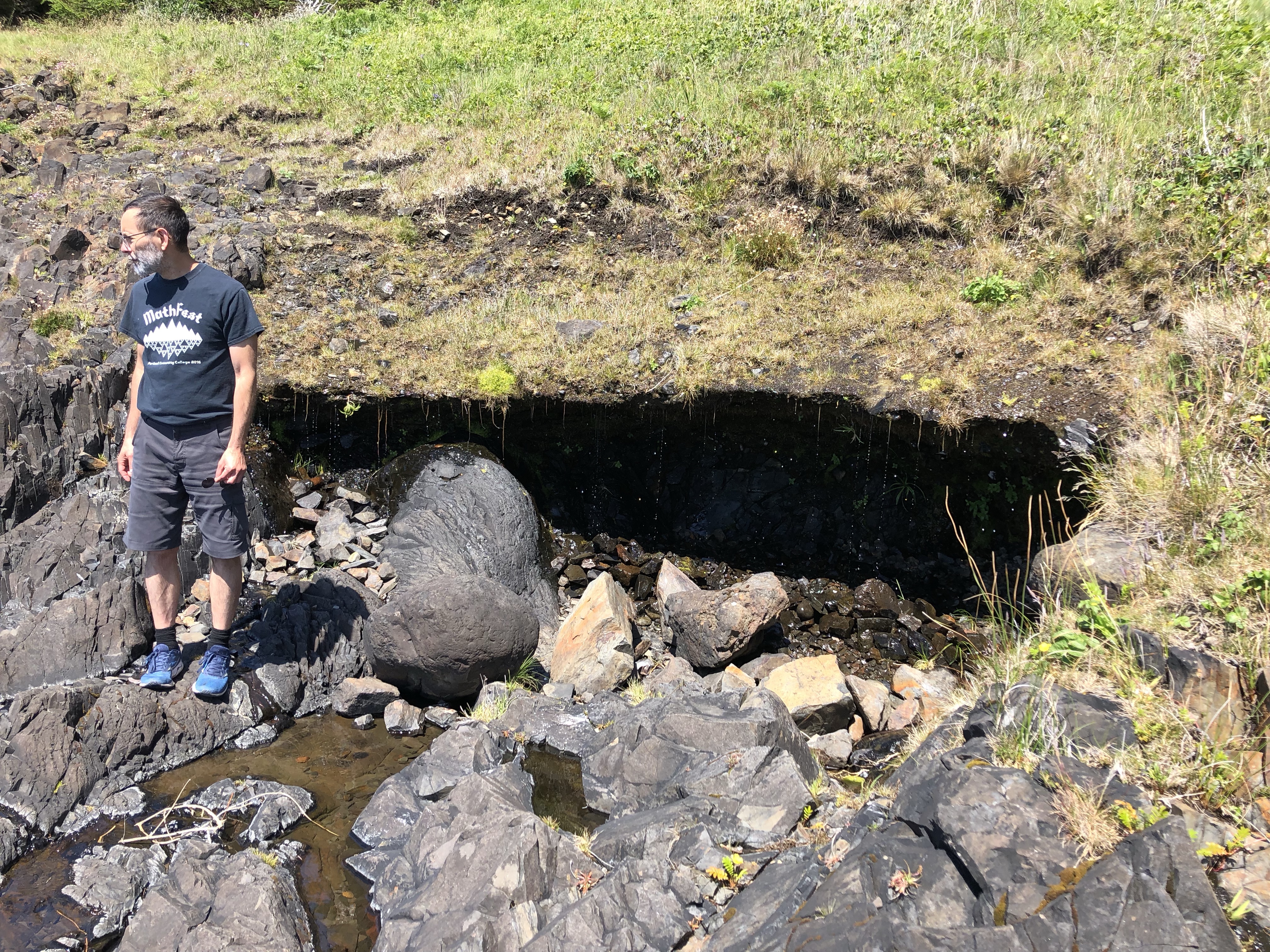I had heard that there were nearby trails that would take one down to a cool water feature and a dramatic geologic display dated from the Miocene period. Ancient lava flows brought in the basalt that formed the base for our “new to us” neighborhood. Because I don’t like wandering by myself on unfamiliar trails, I waited until I had company.