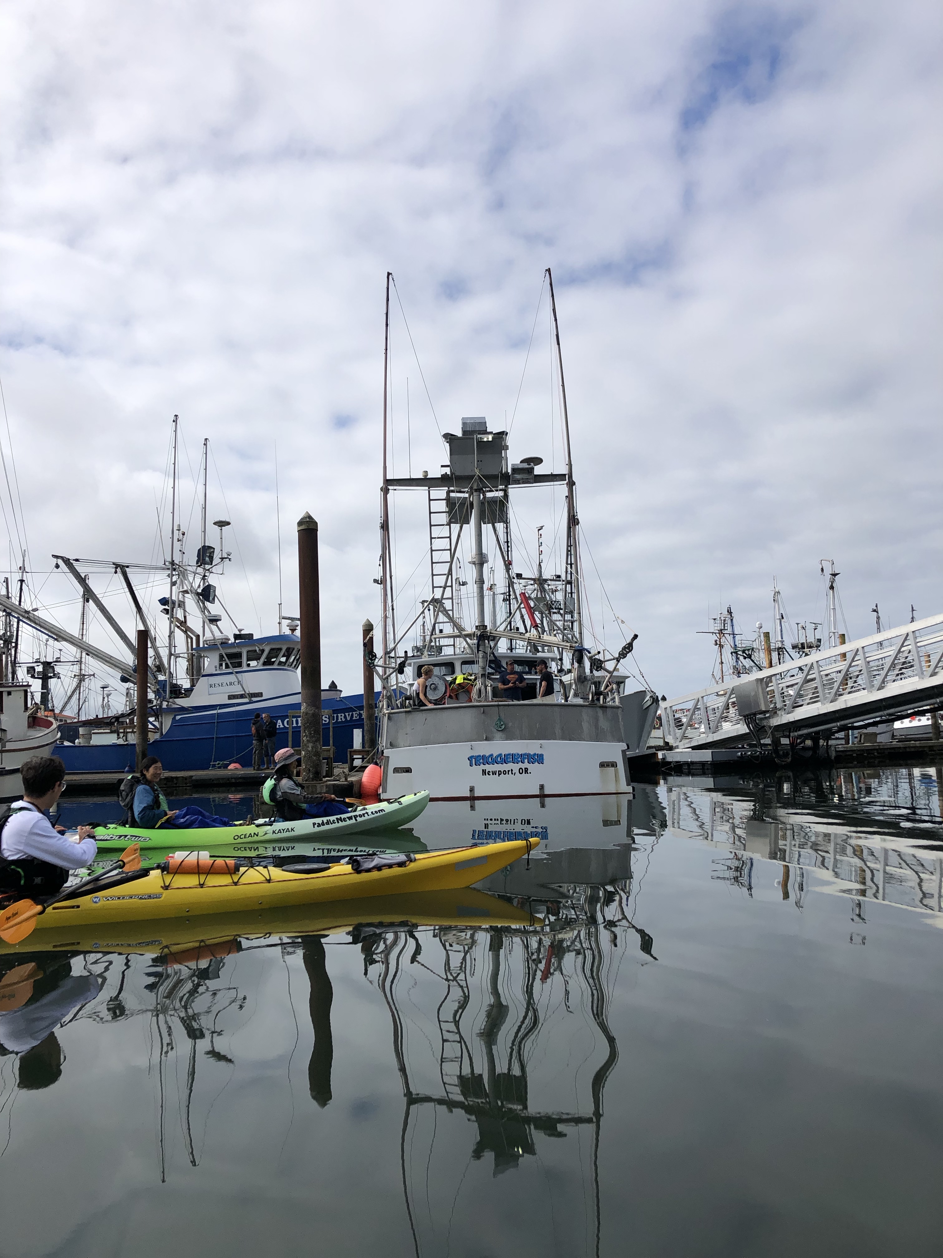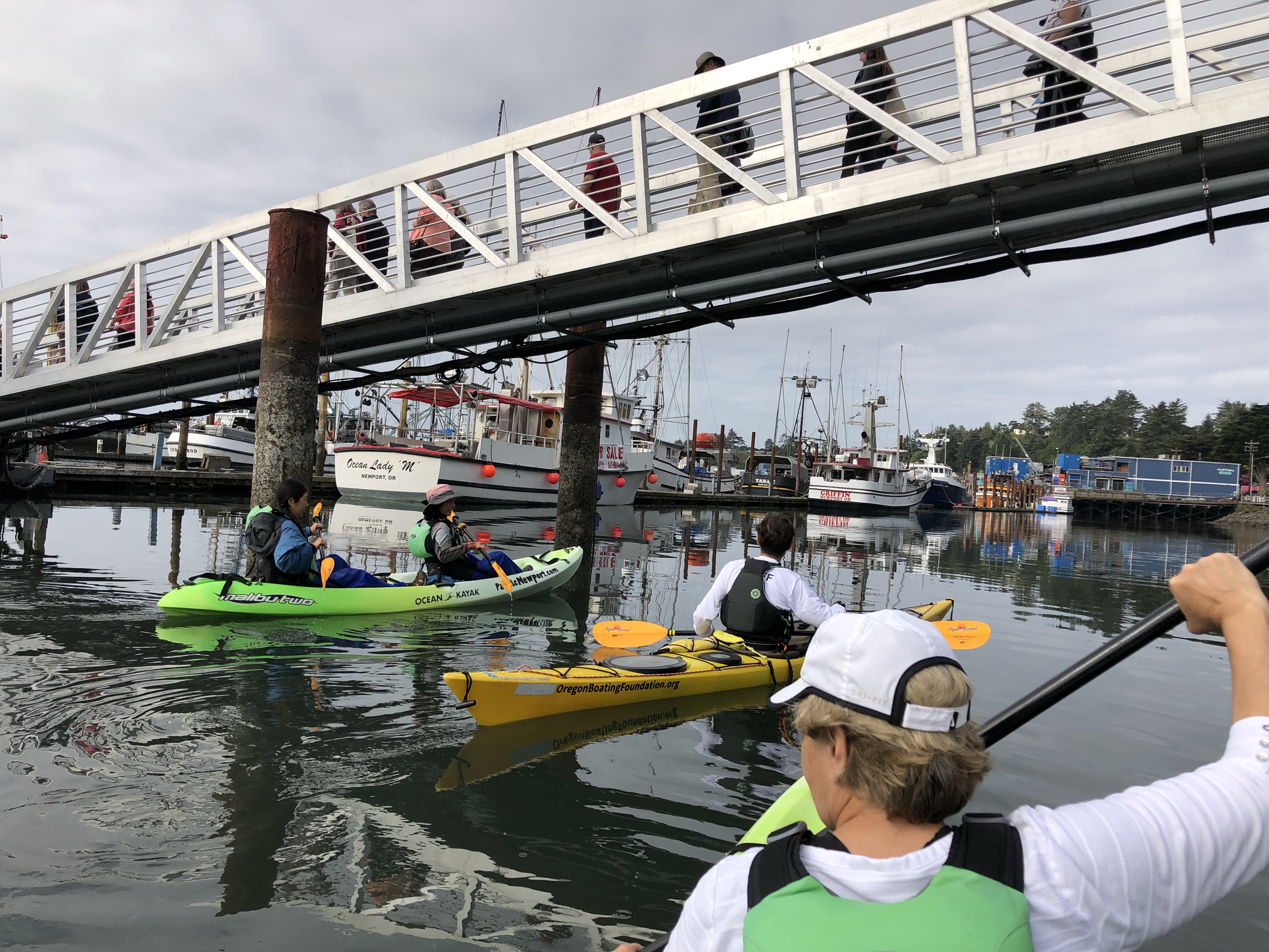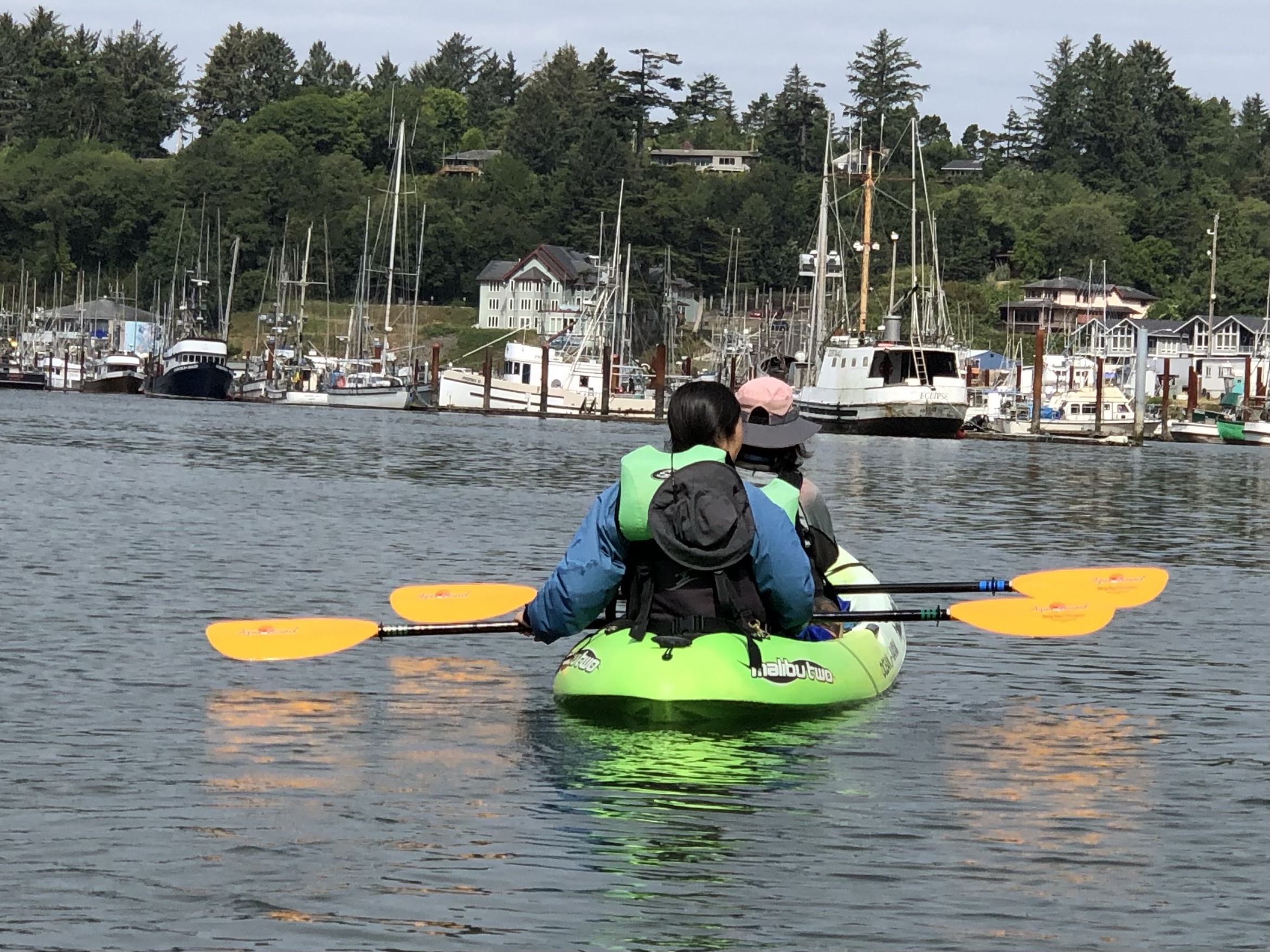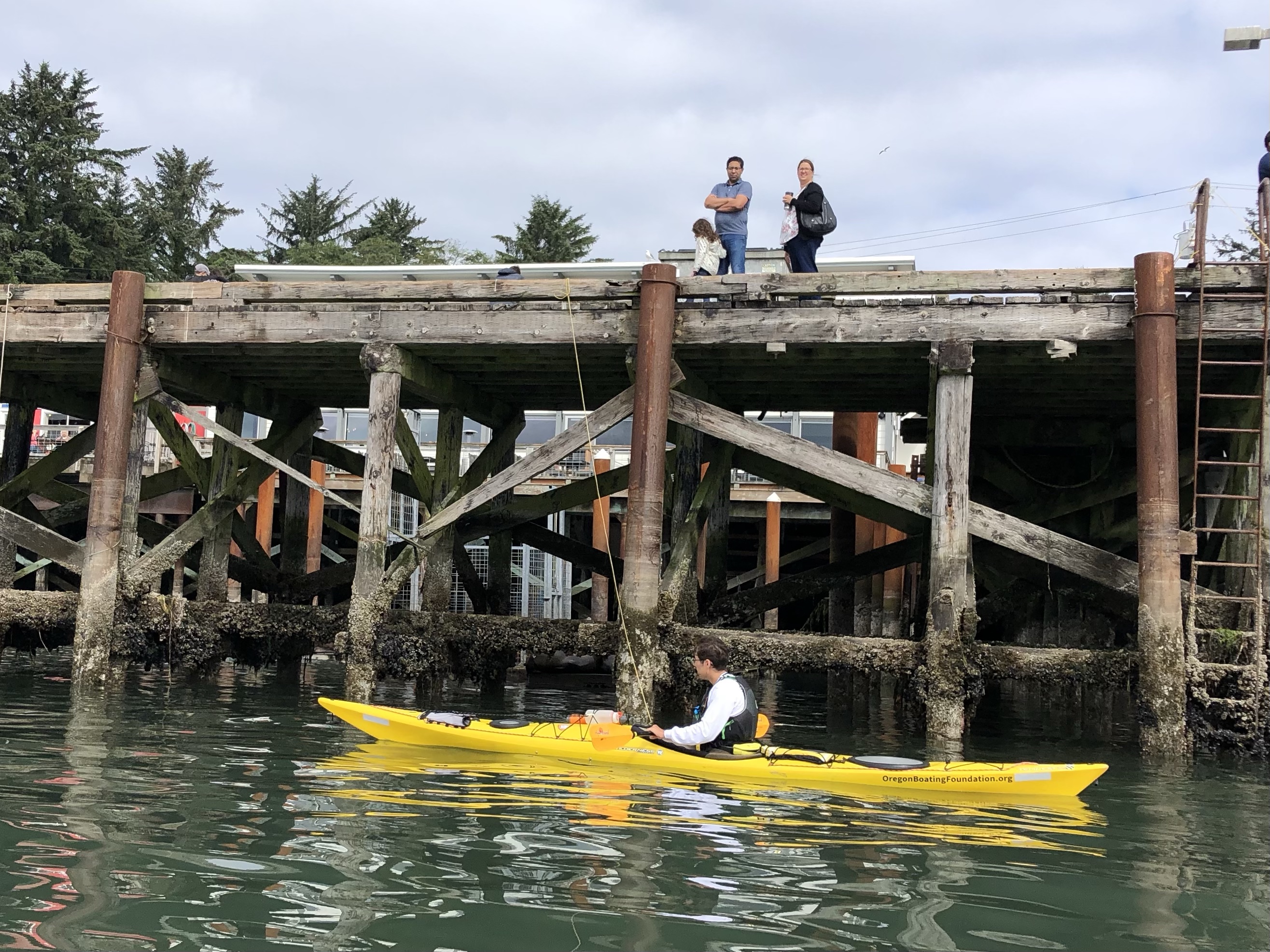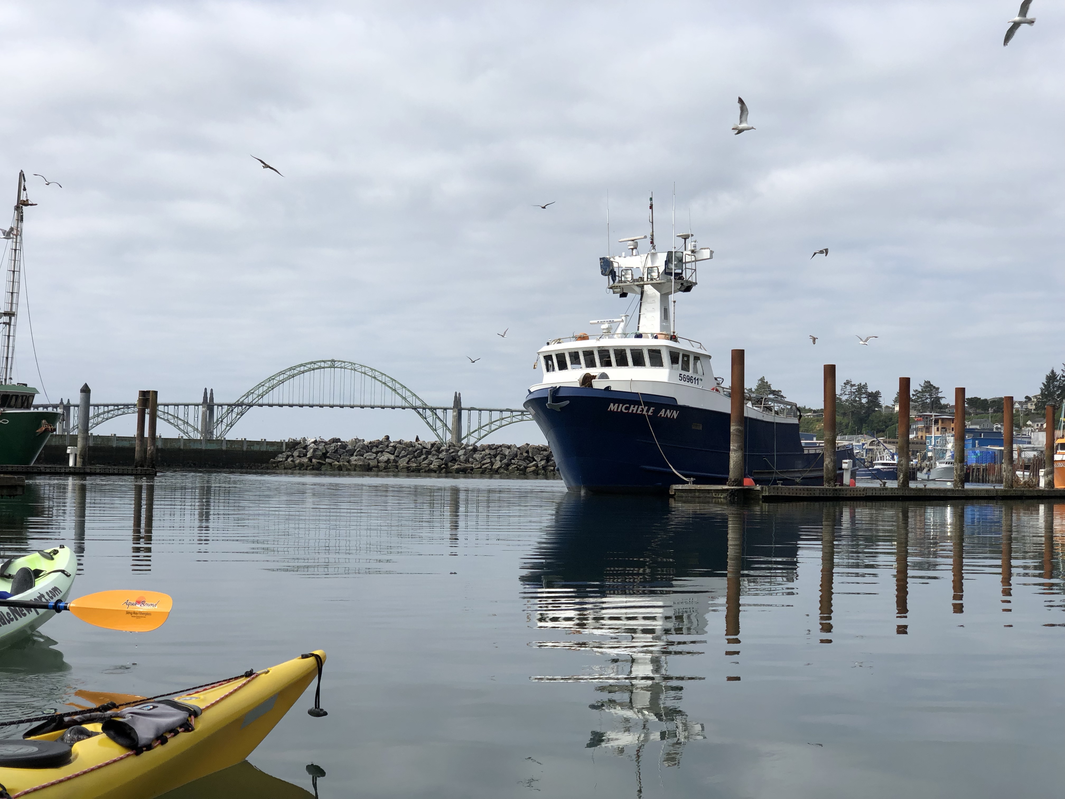 The Oregon Boating Foundation runs the kayak tour and sailing program on Yaquina Bay. Their boat house is located and accessed from Newport’s Port Doc 7. Interested parties schedule a tour via their website, oregonboatingfoundation.org. I can’t say enough good things about the program. They provide the kayaking gear, loan you wind breaker jackets and water proof pants if you need them, and have a very nice boat launch that makes it easy to get in and off the boats. Our guide was very personable and had a wealth of knowledge about the commercial fishing fleet and local wildlife. The $50 per person fee was worth every dime.